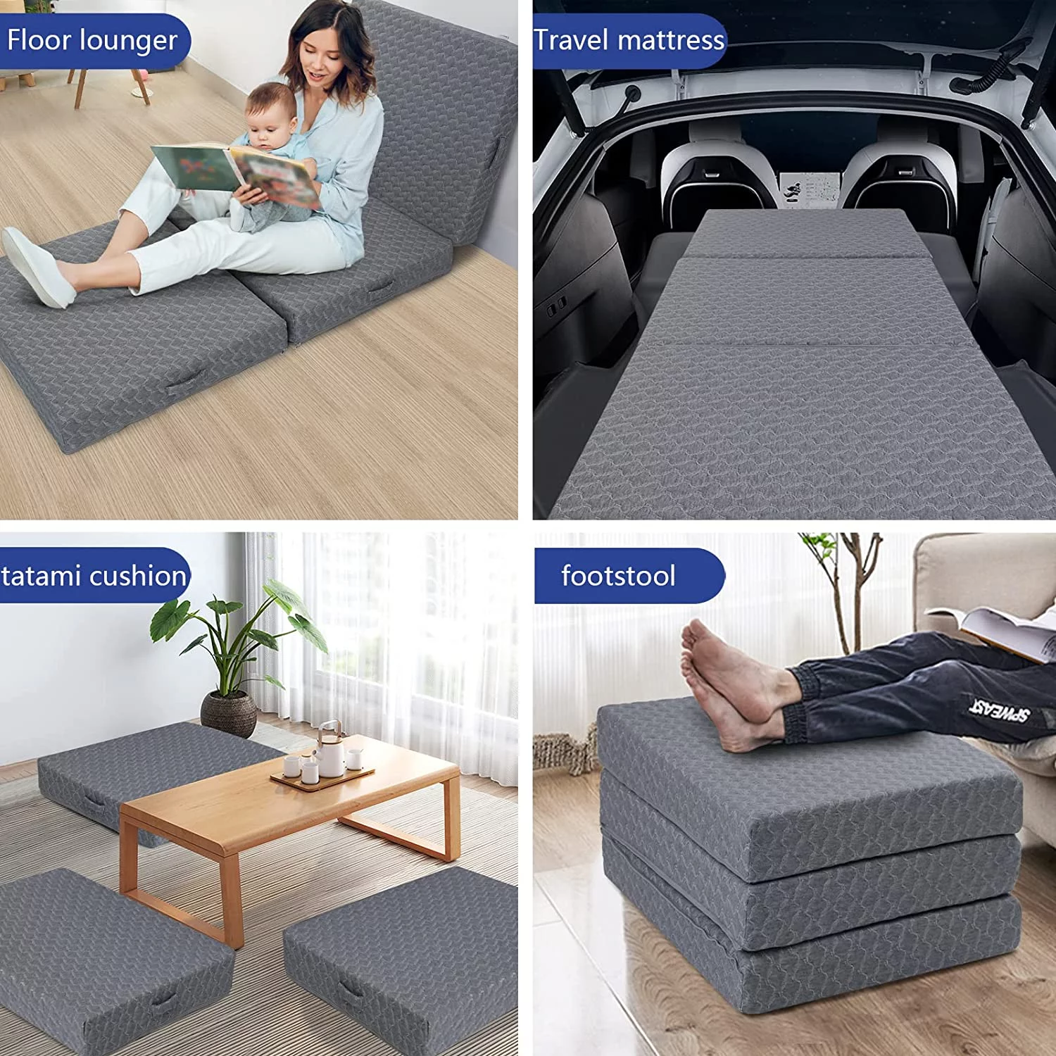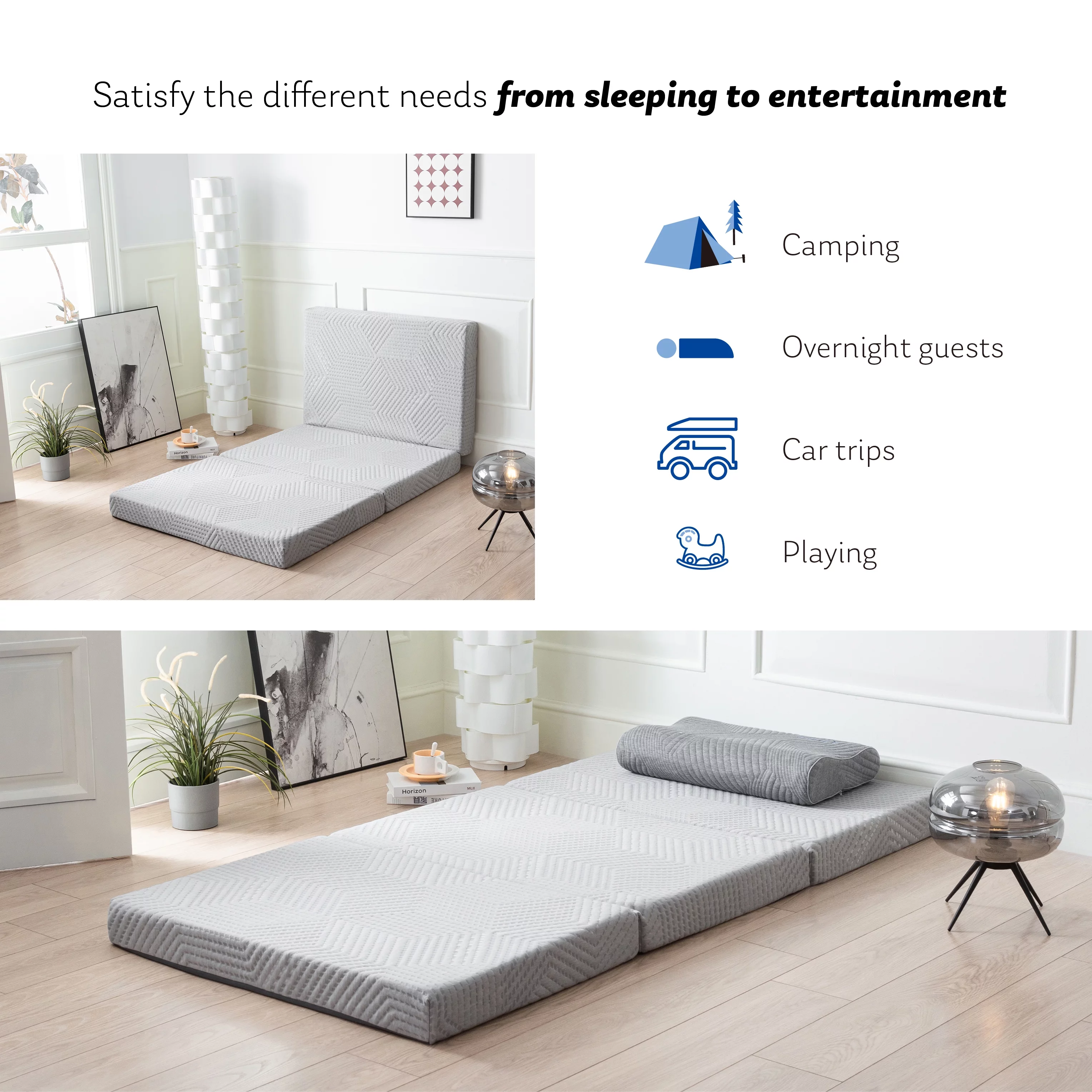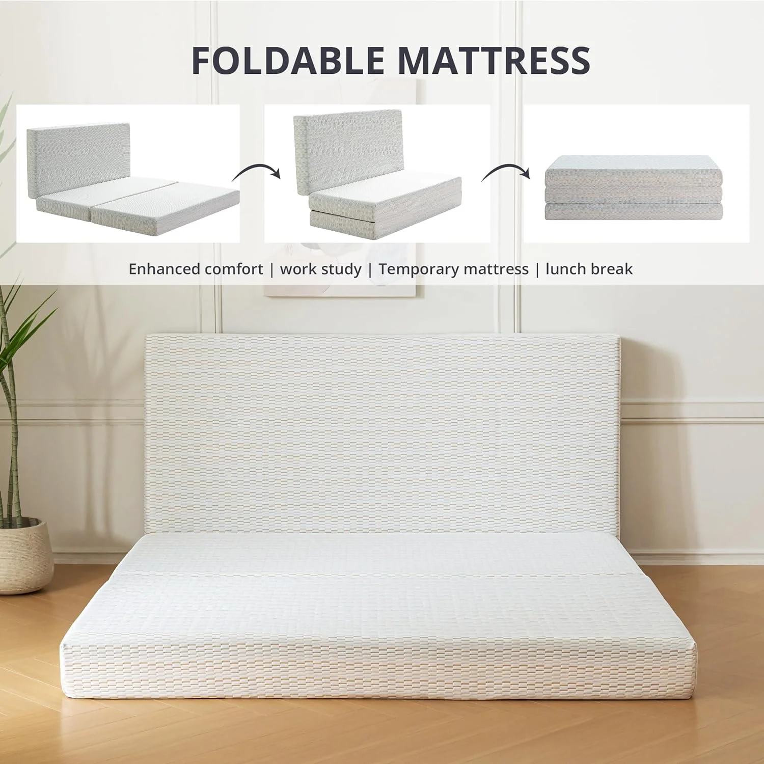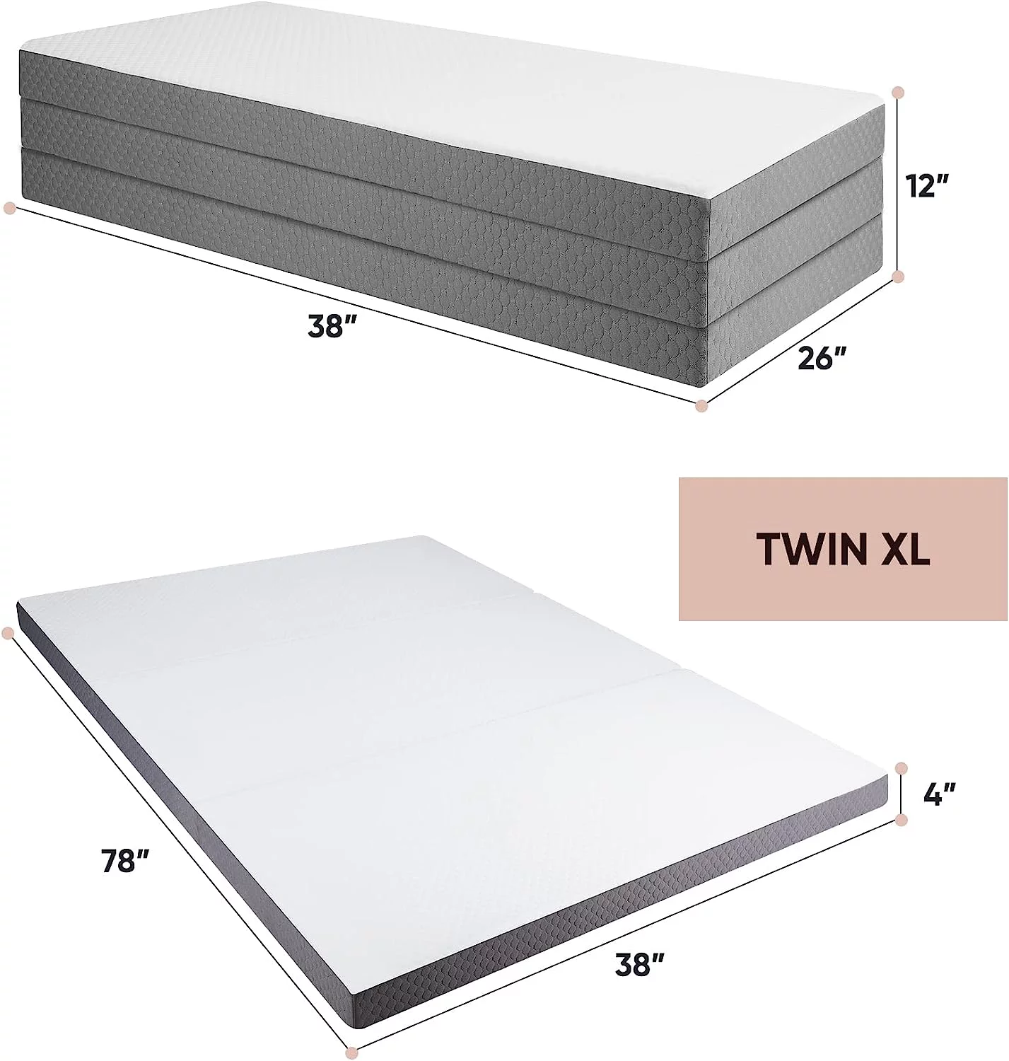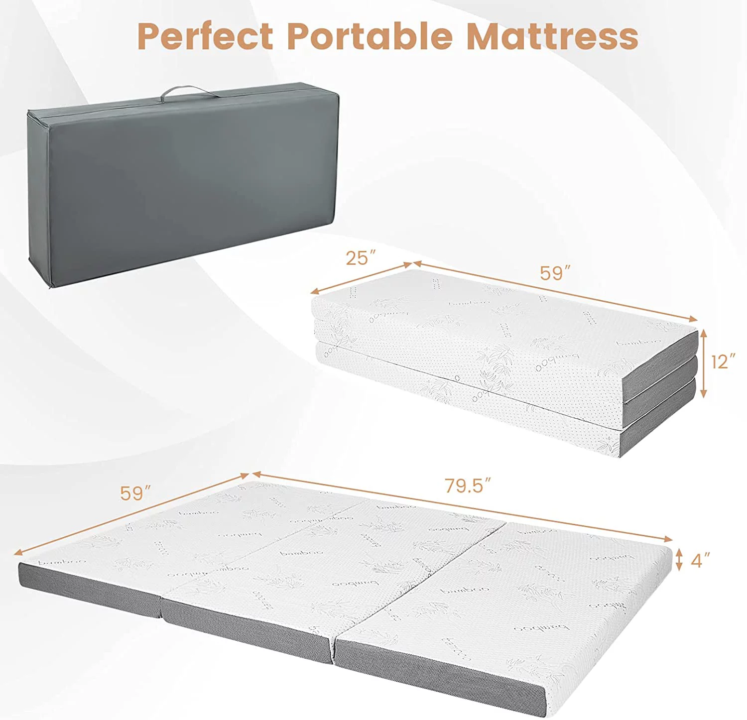 Onetan ,Folding Mattress, 3" & 4" Gel Memory Foam Portable Tri-fold Mattress 4-Inch 25-Inch