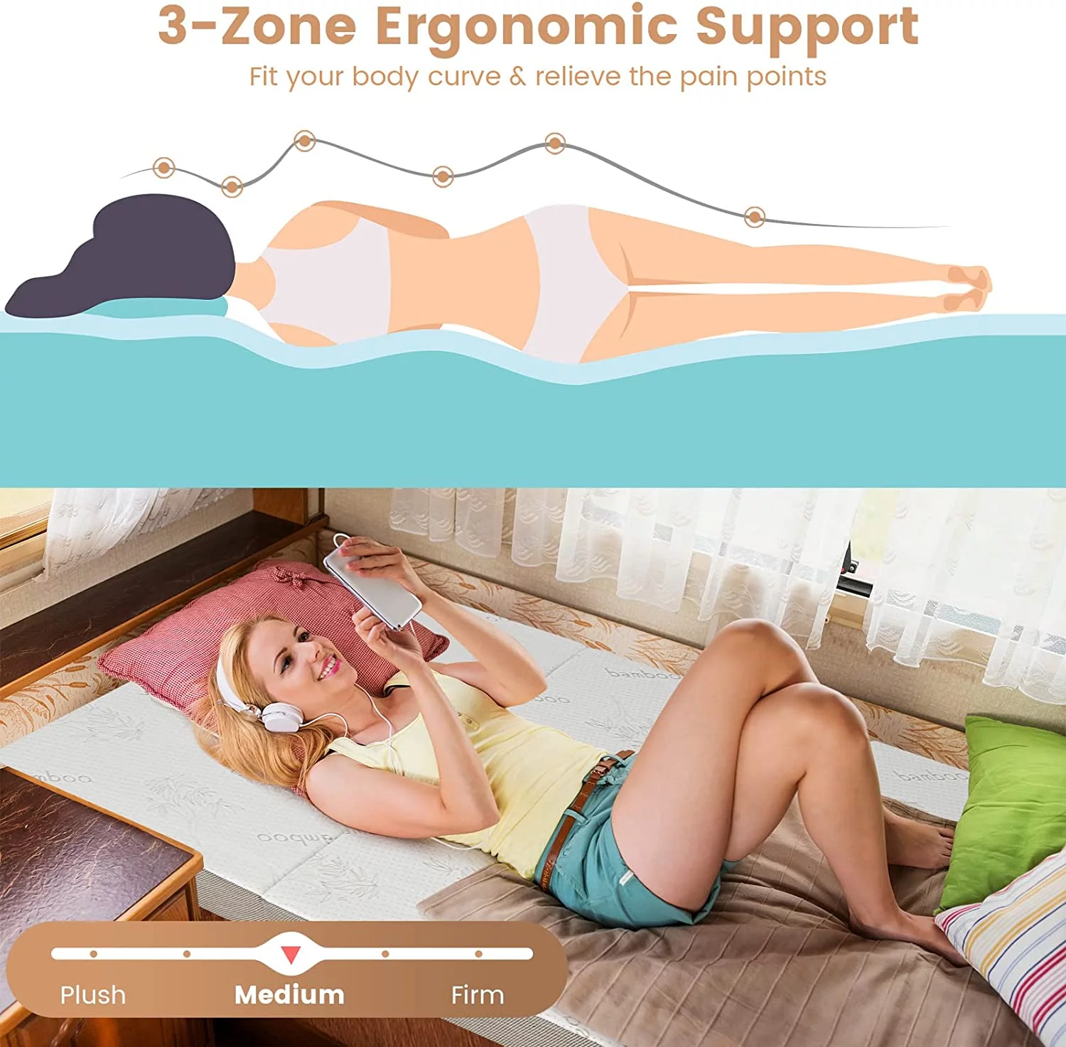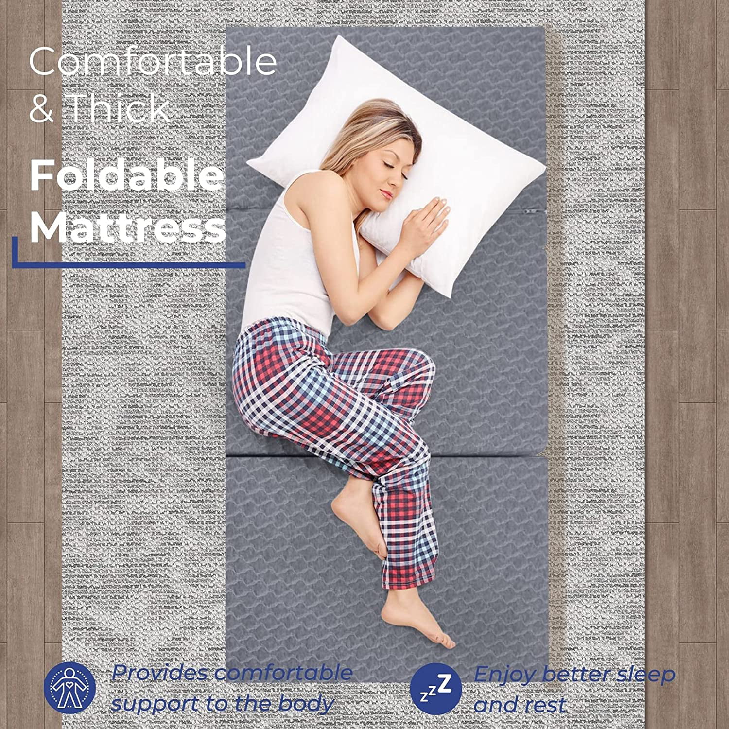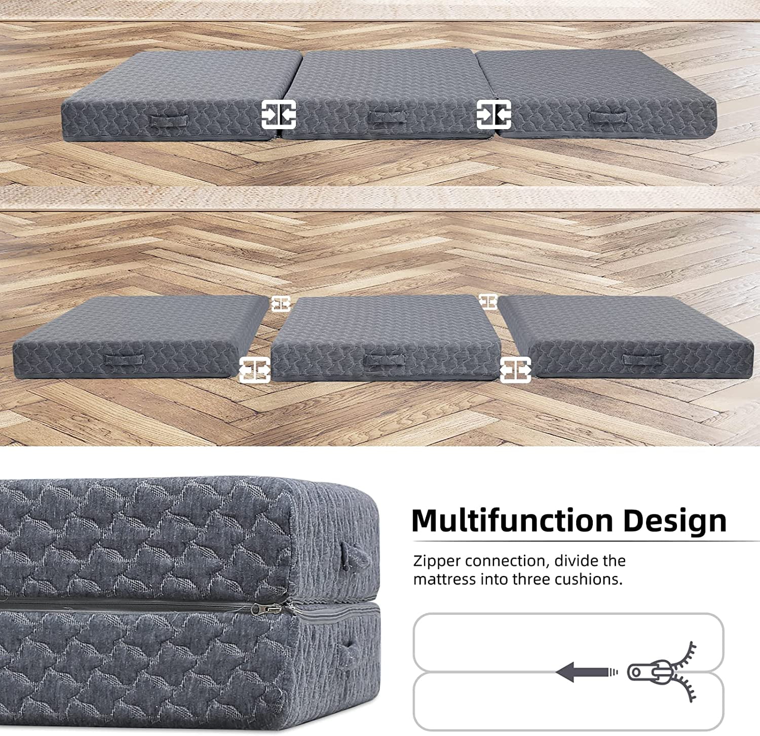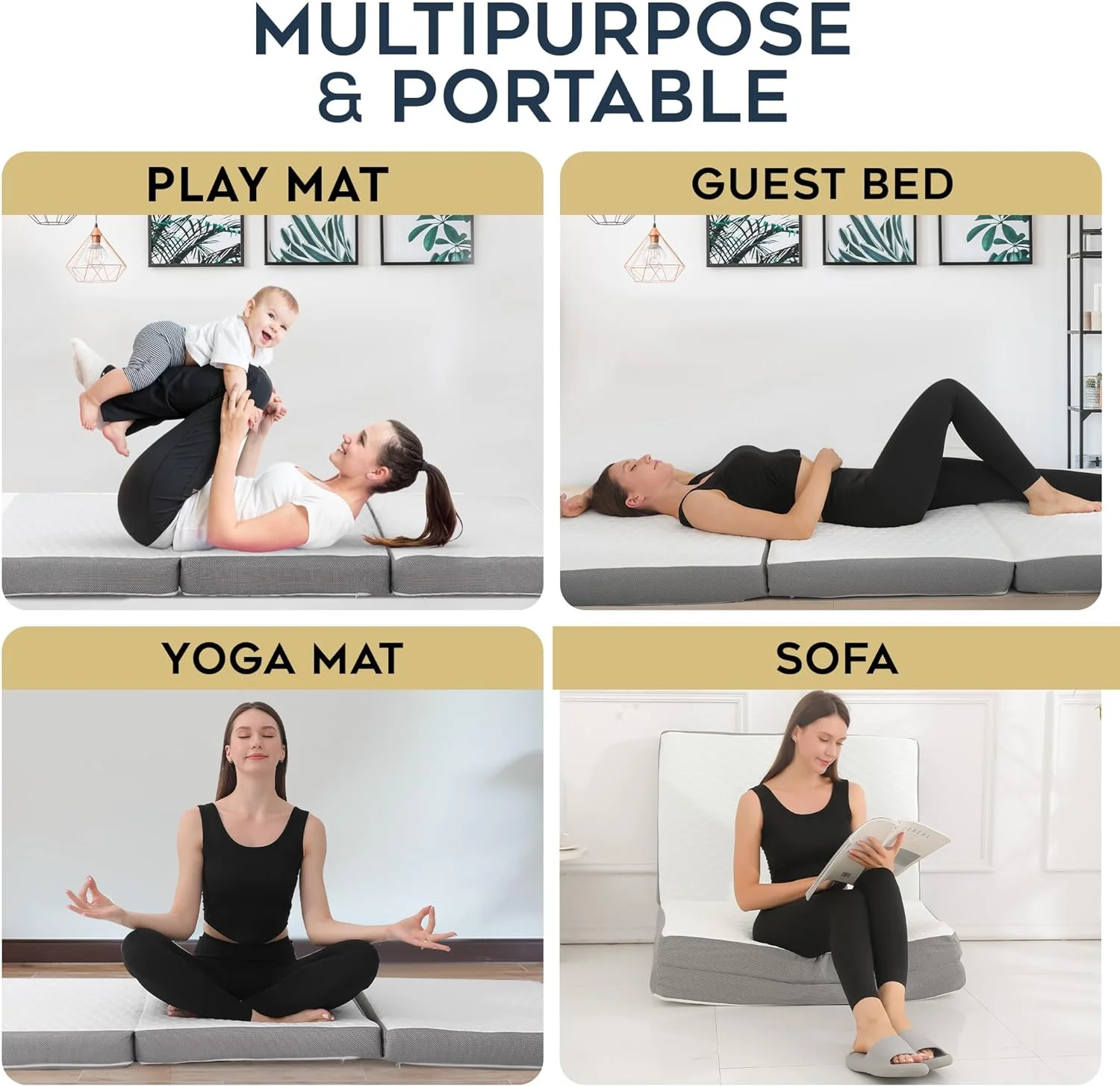 Onetan ,Folding Mattress, 3" & 4" Gel Memory Foam Portable Tri-fold Mattress 4-Inch 25-Inch