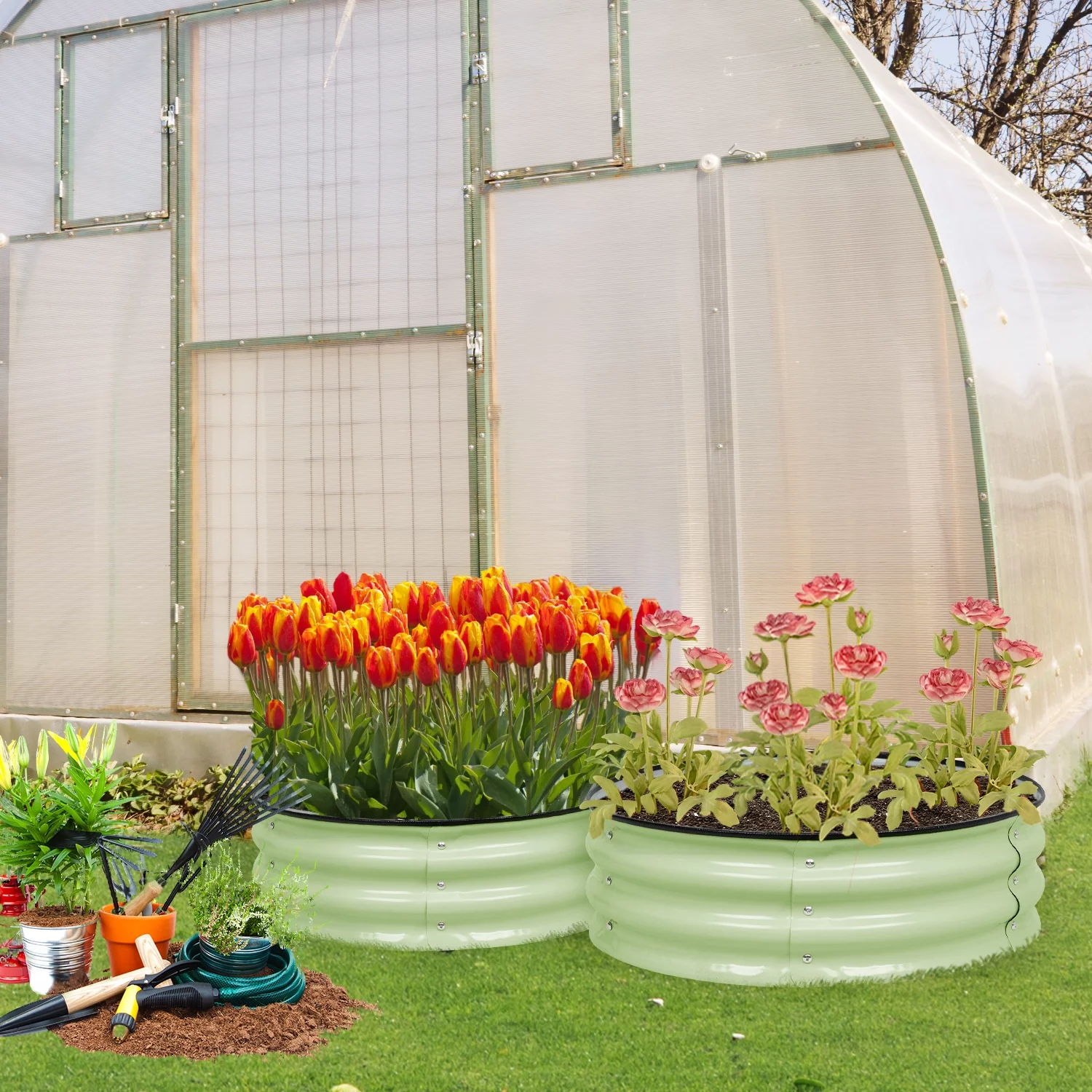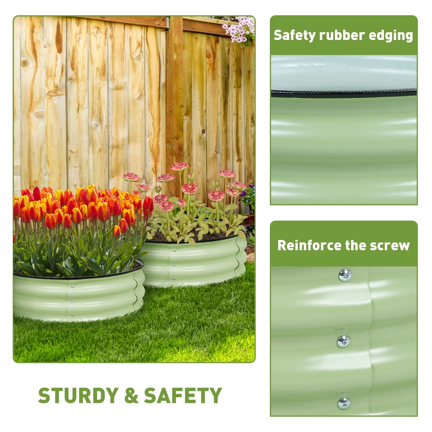 Vego Garden 17" Tall 4 in 1 Modular Metal Raised Gardening Beds Kit Metal Planter Box Olive Green