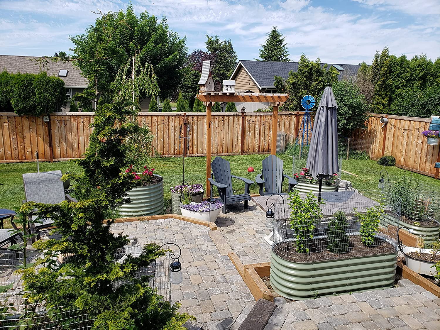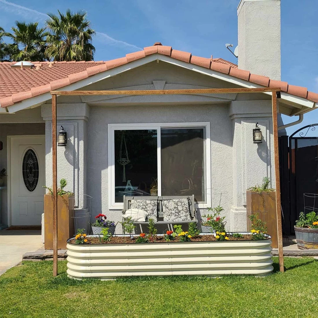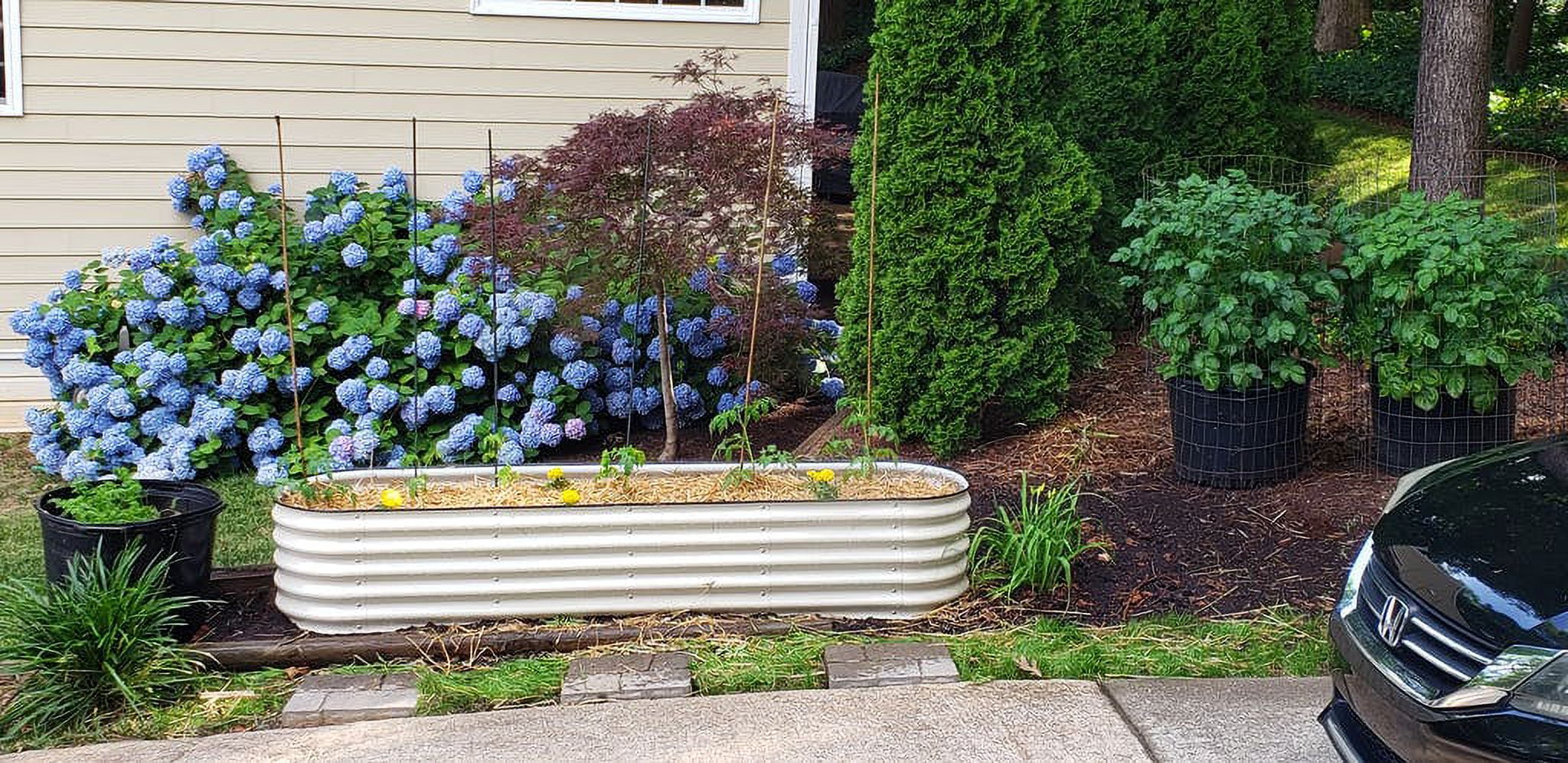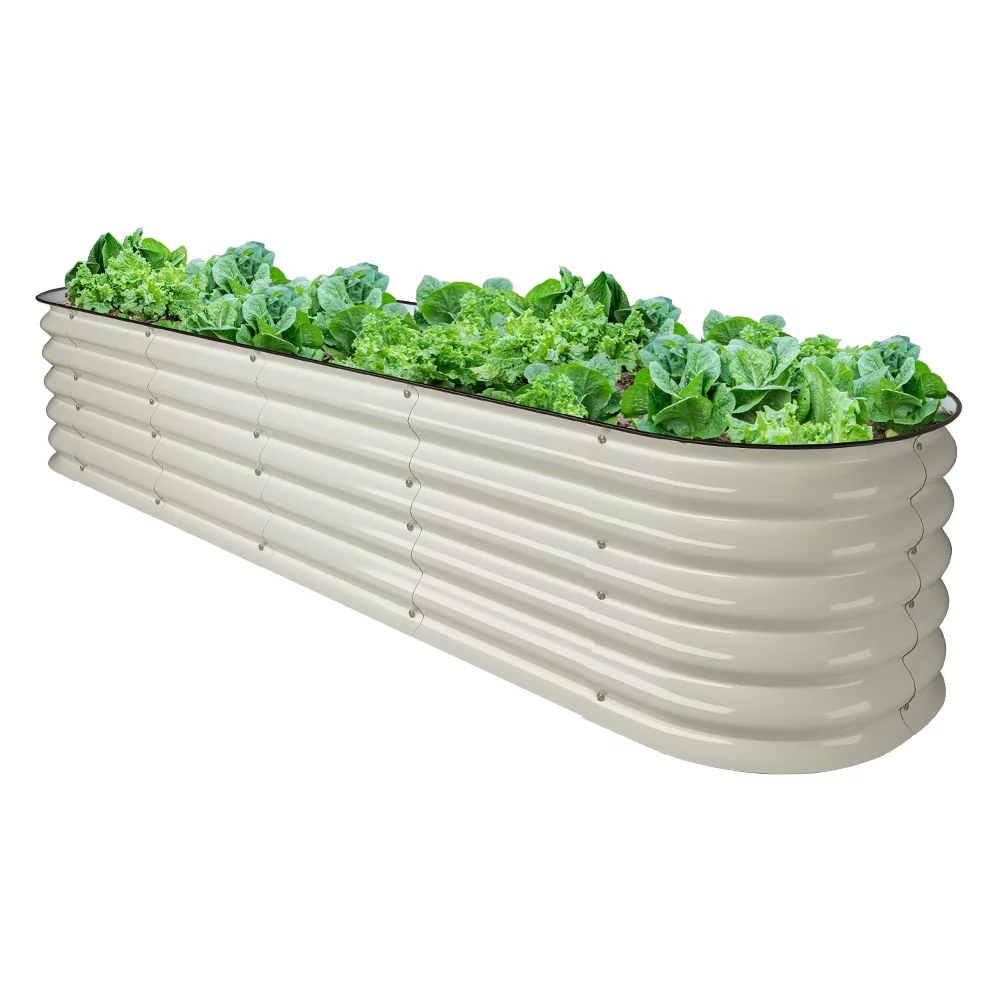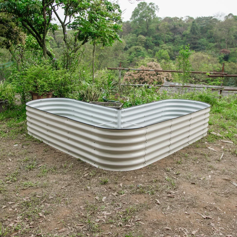 VEGEGA 17" Tall L-Shaped Modular Corrugated Metal Raised Garden Beds Large Size - White