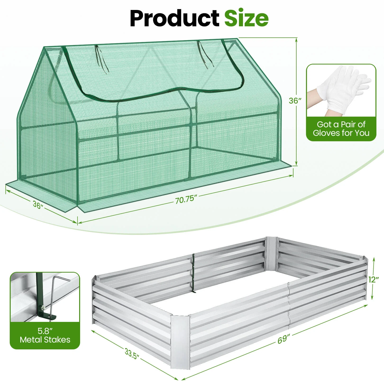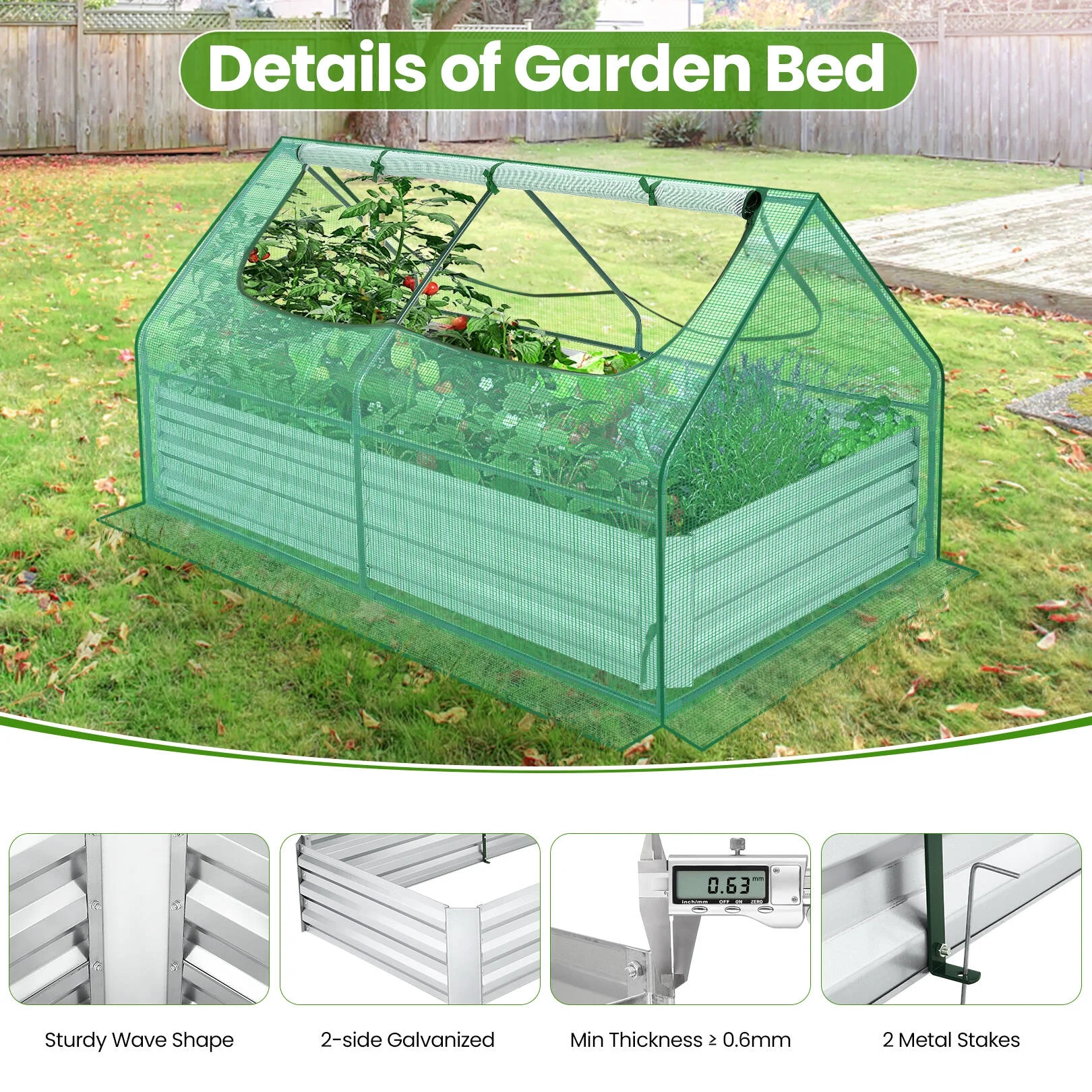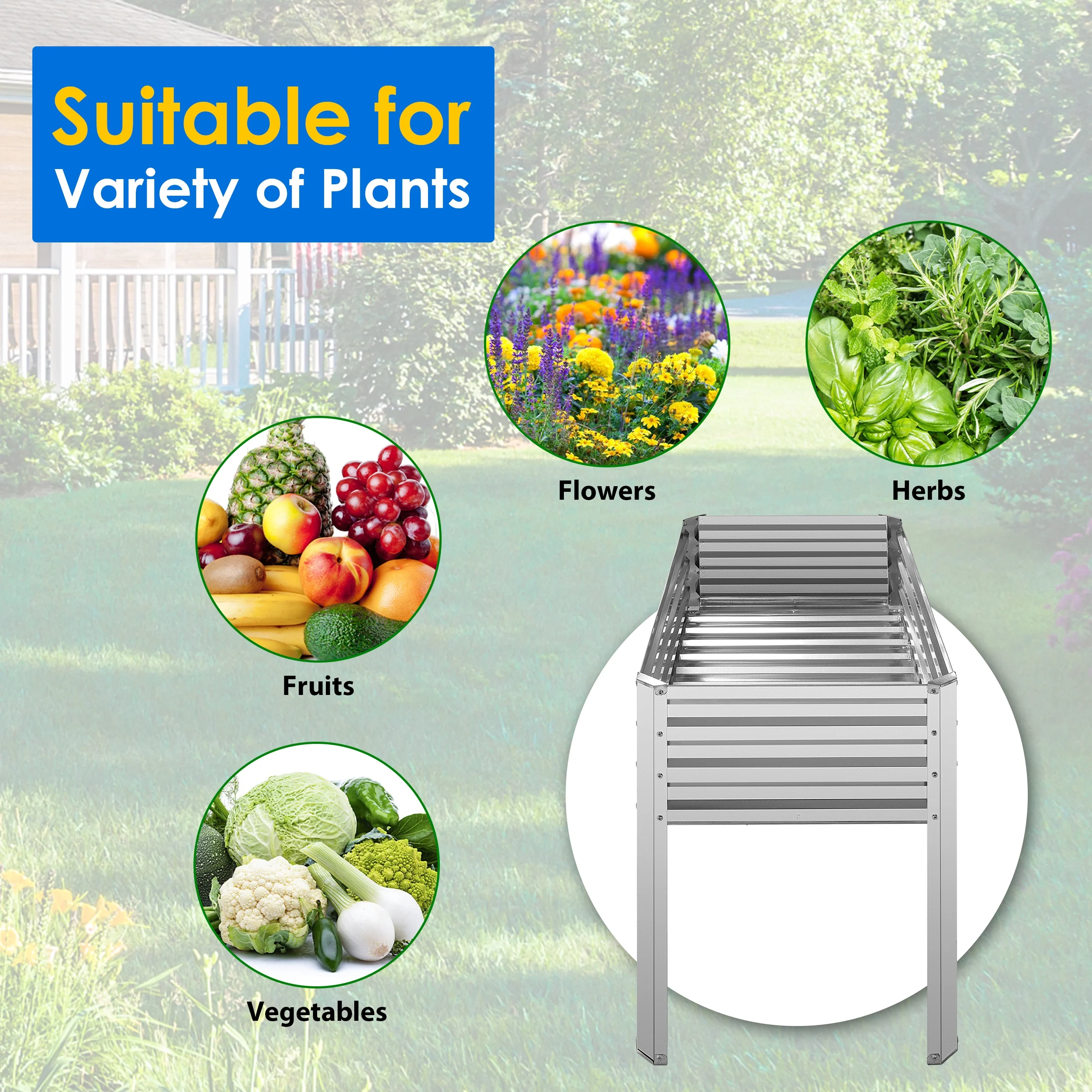 VEGEGA 17" Tall 9 in 1 Metal Raised Garden Bed for Vegetables Flowers Ground Planter Box (White)