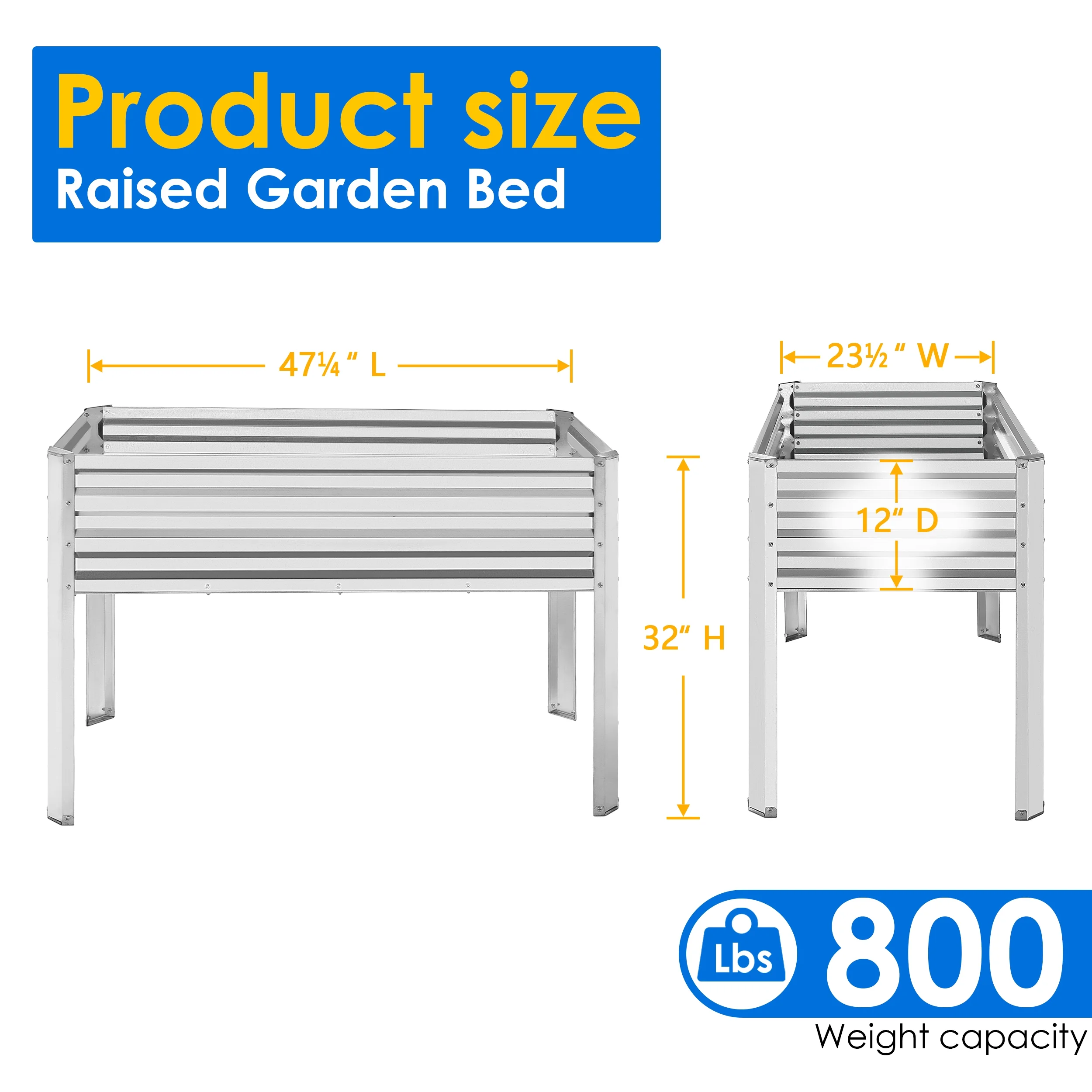 TrumanPick Galvanized Raised Garden Bed with Legs 4x2x3ft for Backyard Patio Balcony, 800lb Capacity