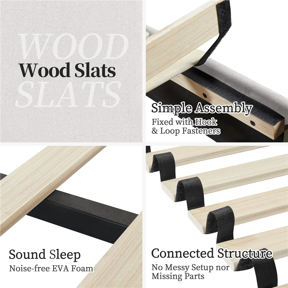 Gray Linen Upholstered Platform Bed With Headboard and Built-in Underside Sliding Trundle, Ergonomically Designed, Full, Gray
