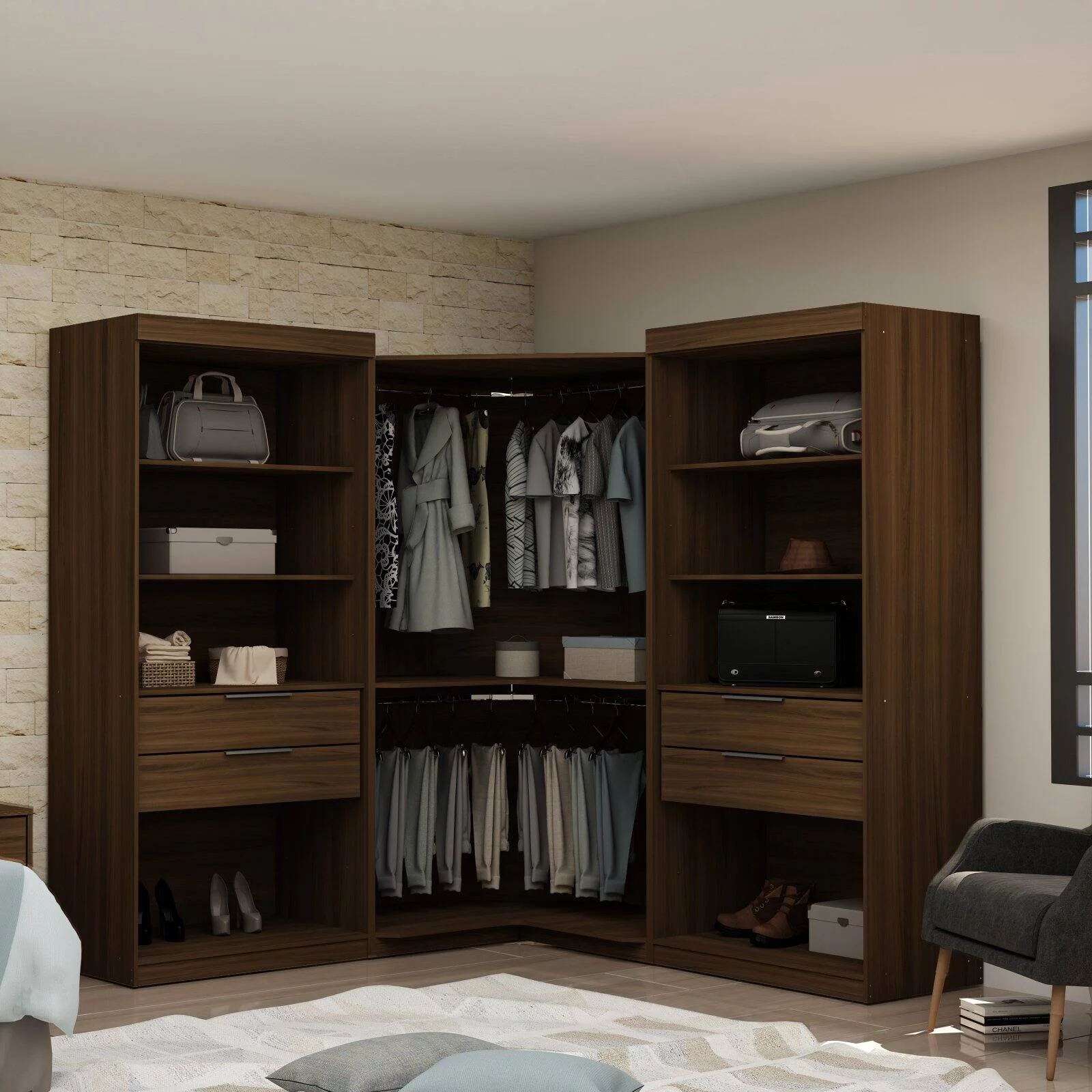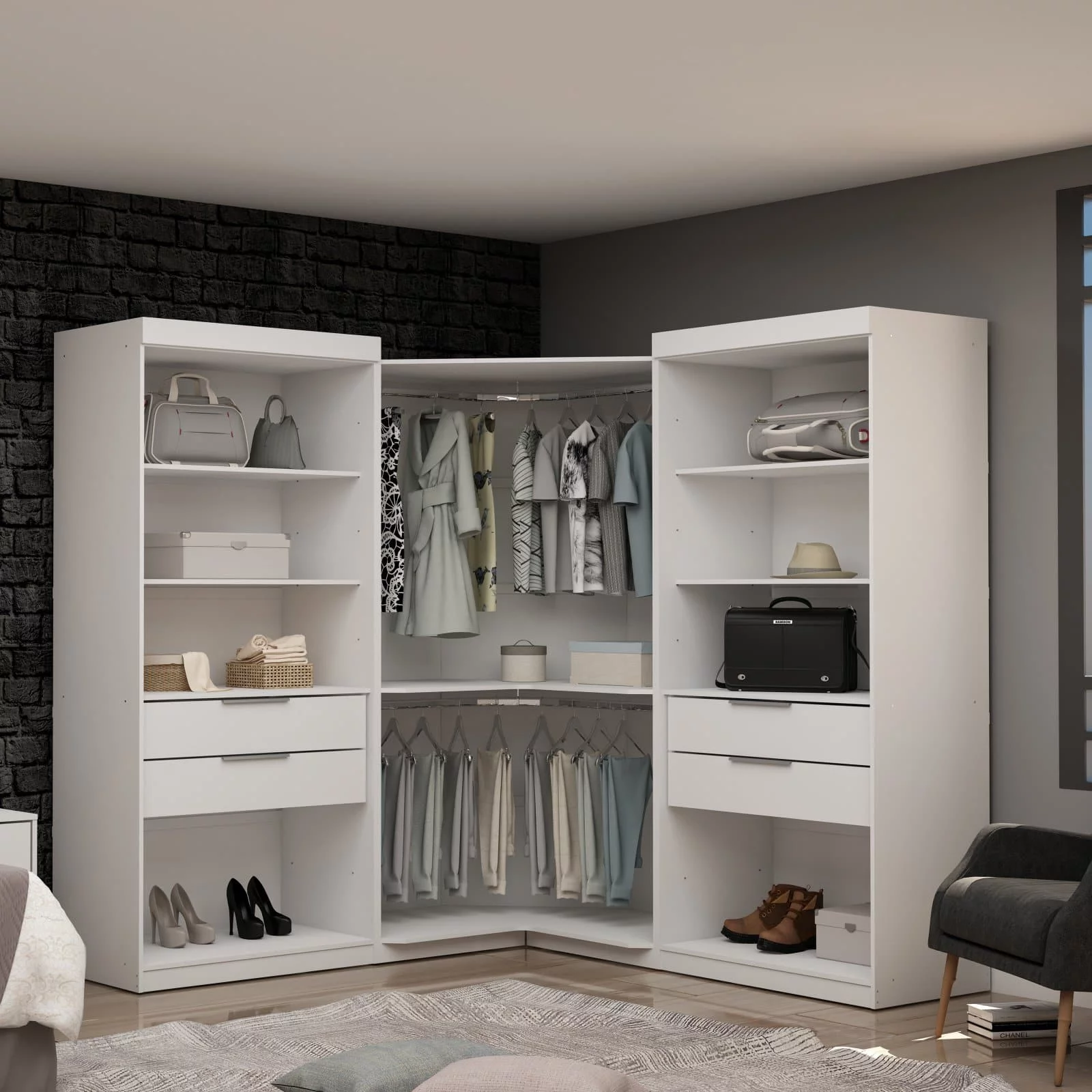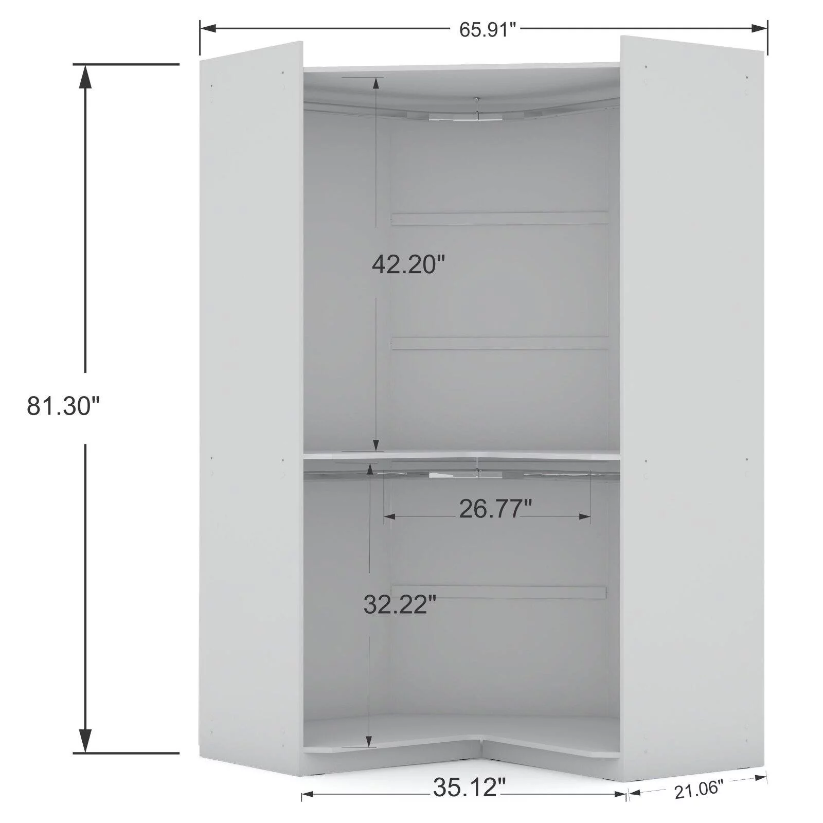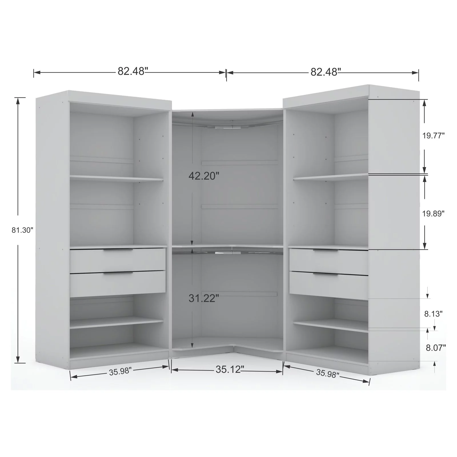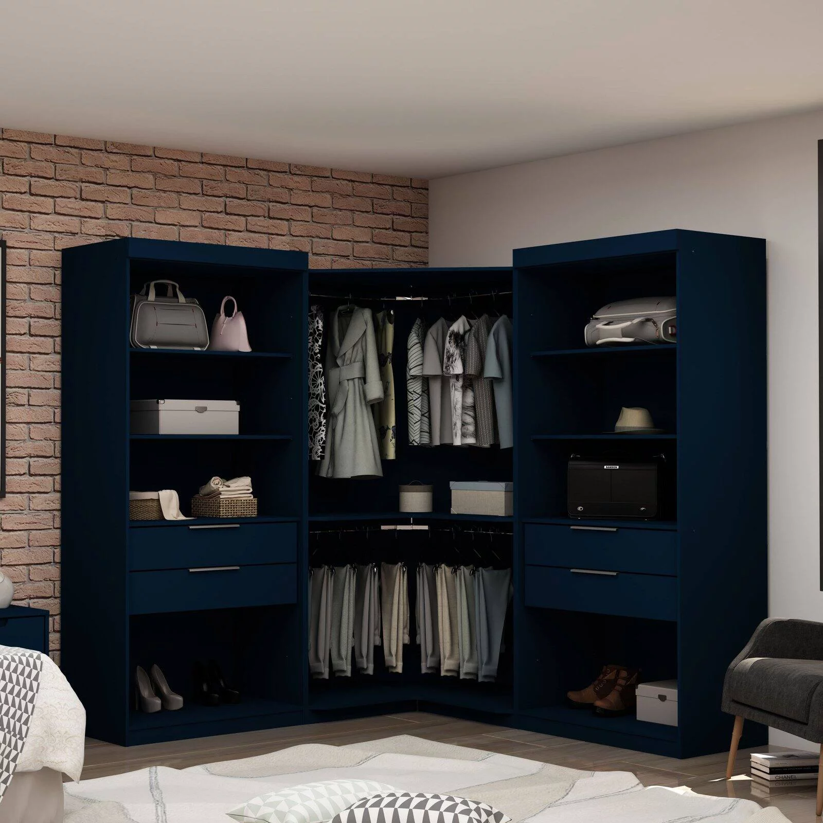 Manhattan Comfort Mulberry 3-Pc Wood Open Sectional Corner Closet Set in Blue
