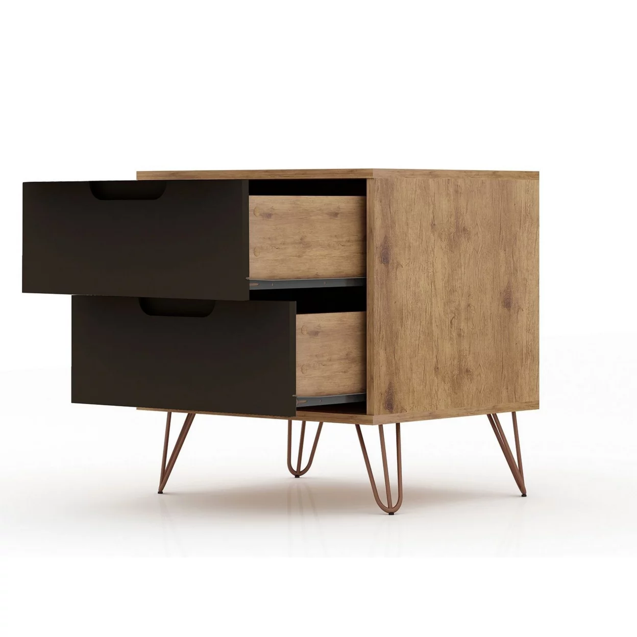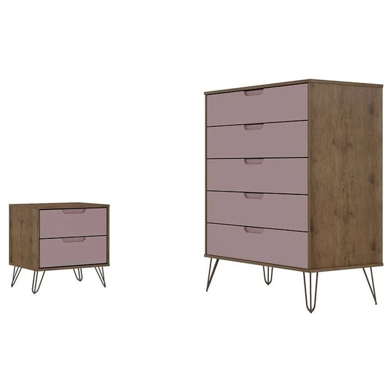 Manhattan Comfort Rockefeller Nature and Rose Pink 5-Drawer Dresser and 2-Drawer Nightstand Set
