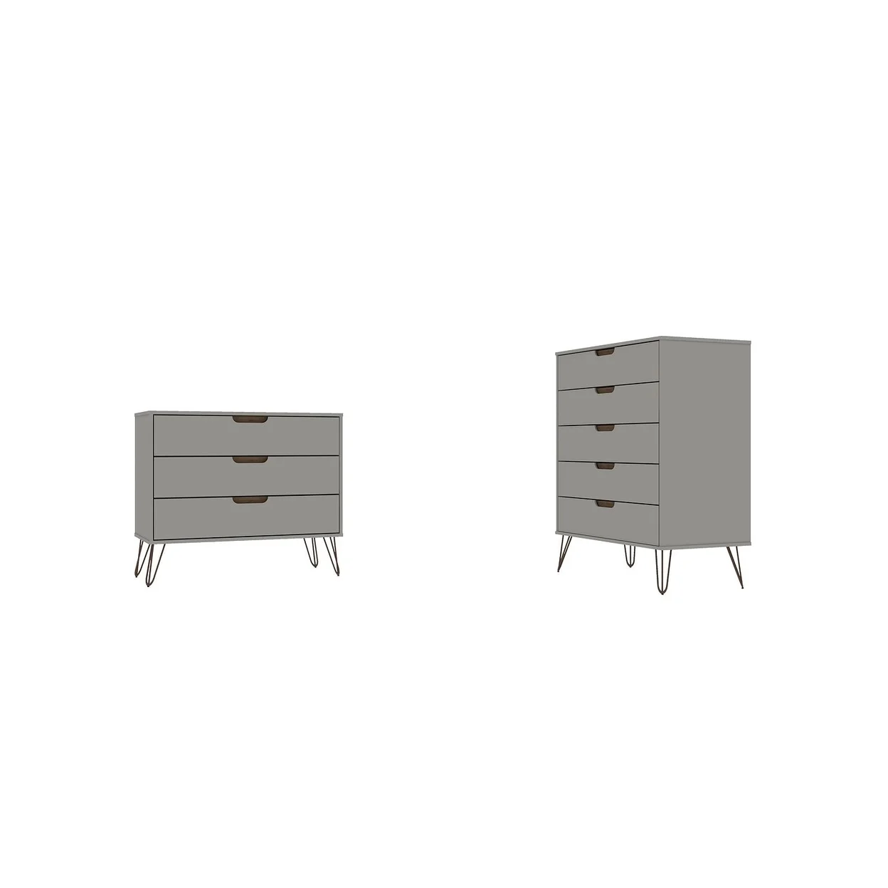 Manhattan Comfort Rockefeller 5-Drawer and 3-Drawer Nature and Textured Grey Dresser Set
