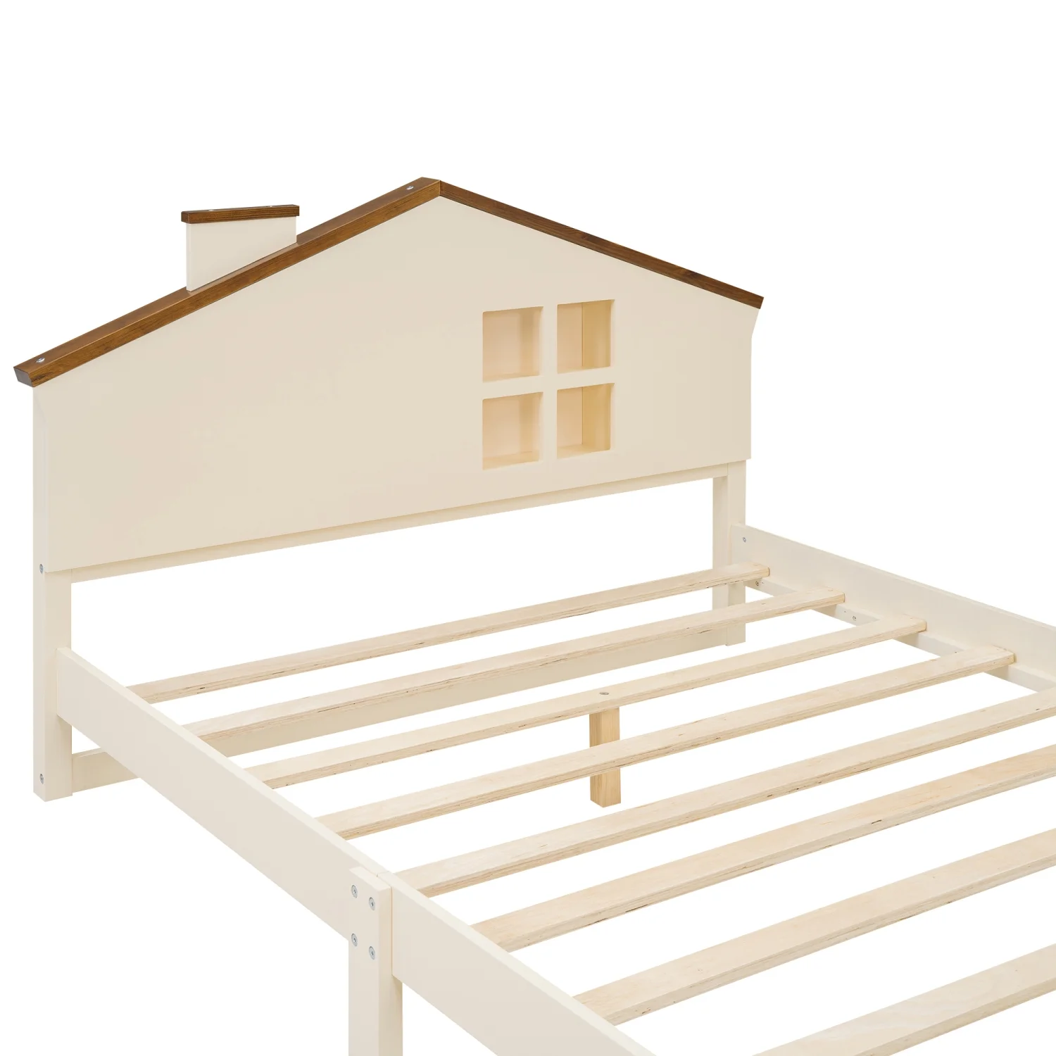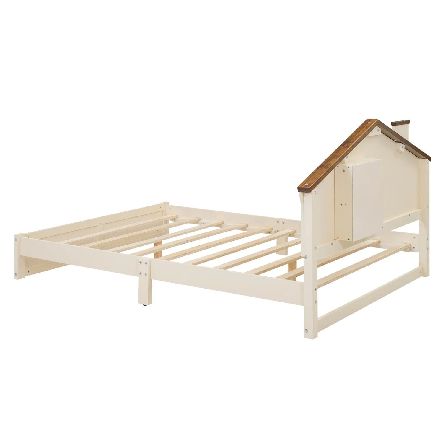 Wood Twin Size Platform Bed with House-shaped Storage Headboard and Built-in LED, White
