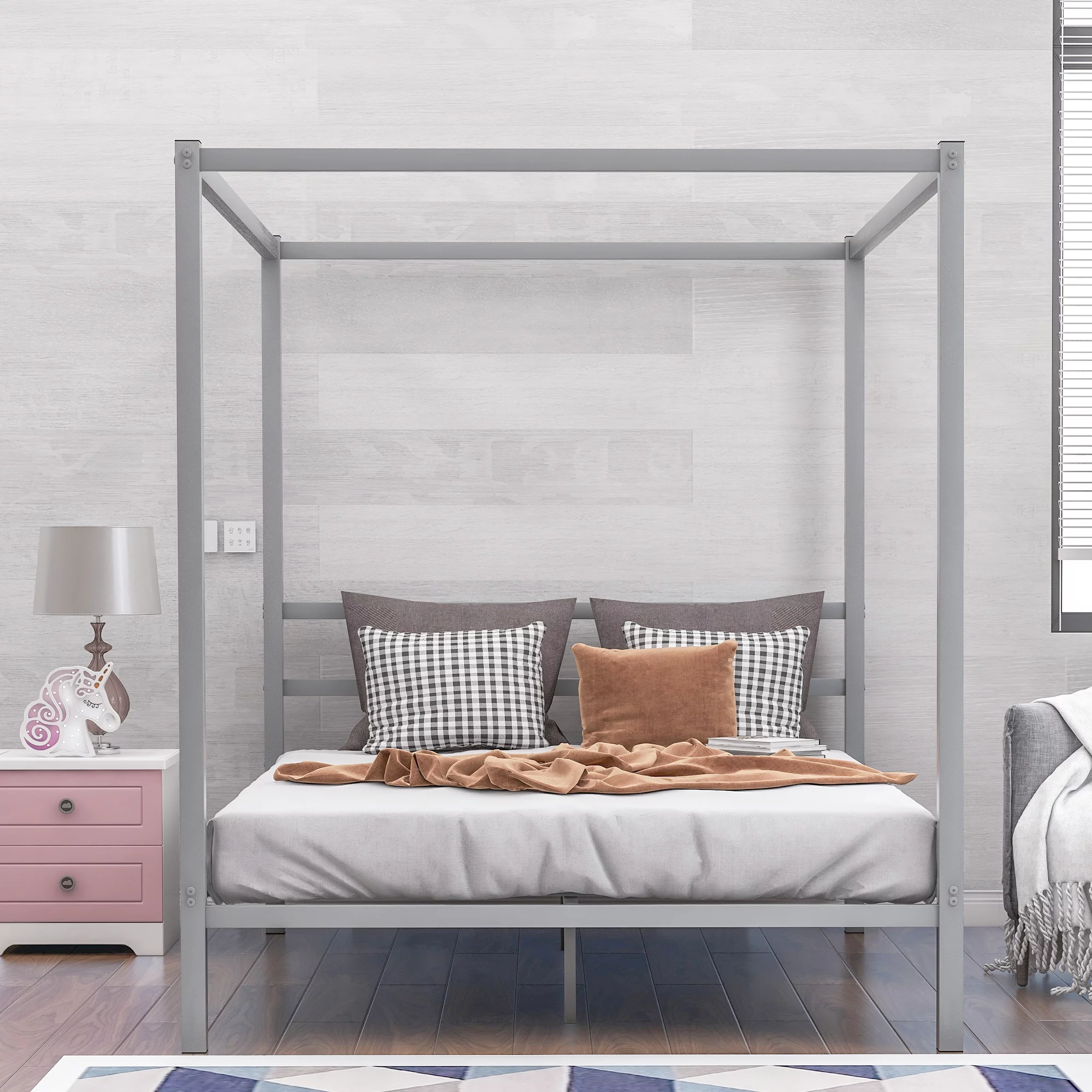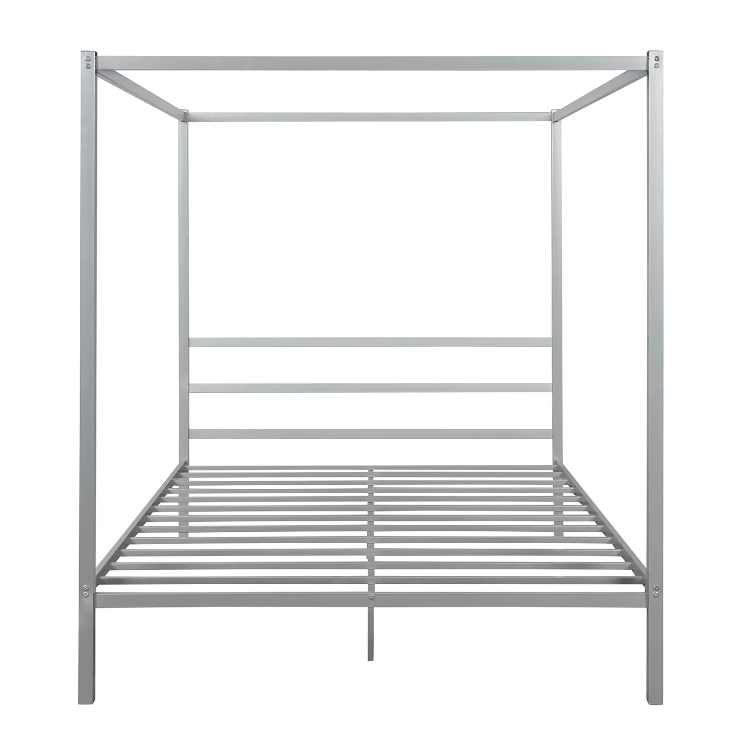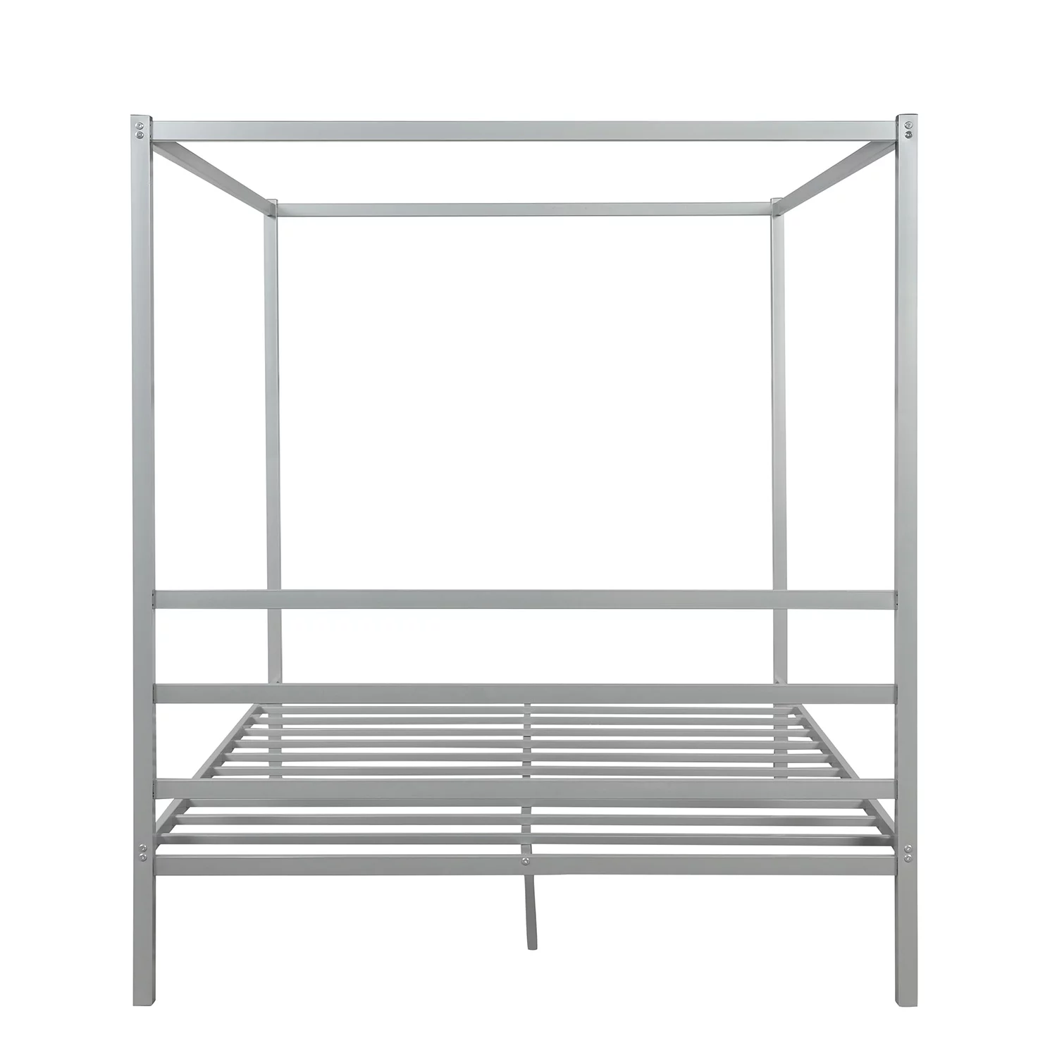 Metal Framed Canopy Platform Bed with Built-in Headboard,No Box Spring Needed, Classic Design, Queen , Sliver