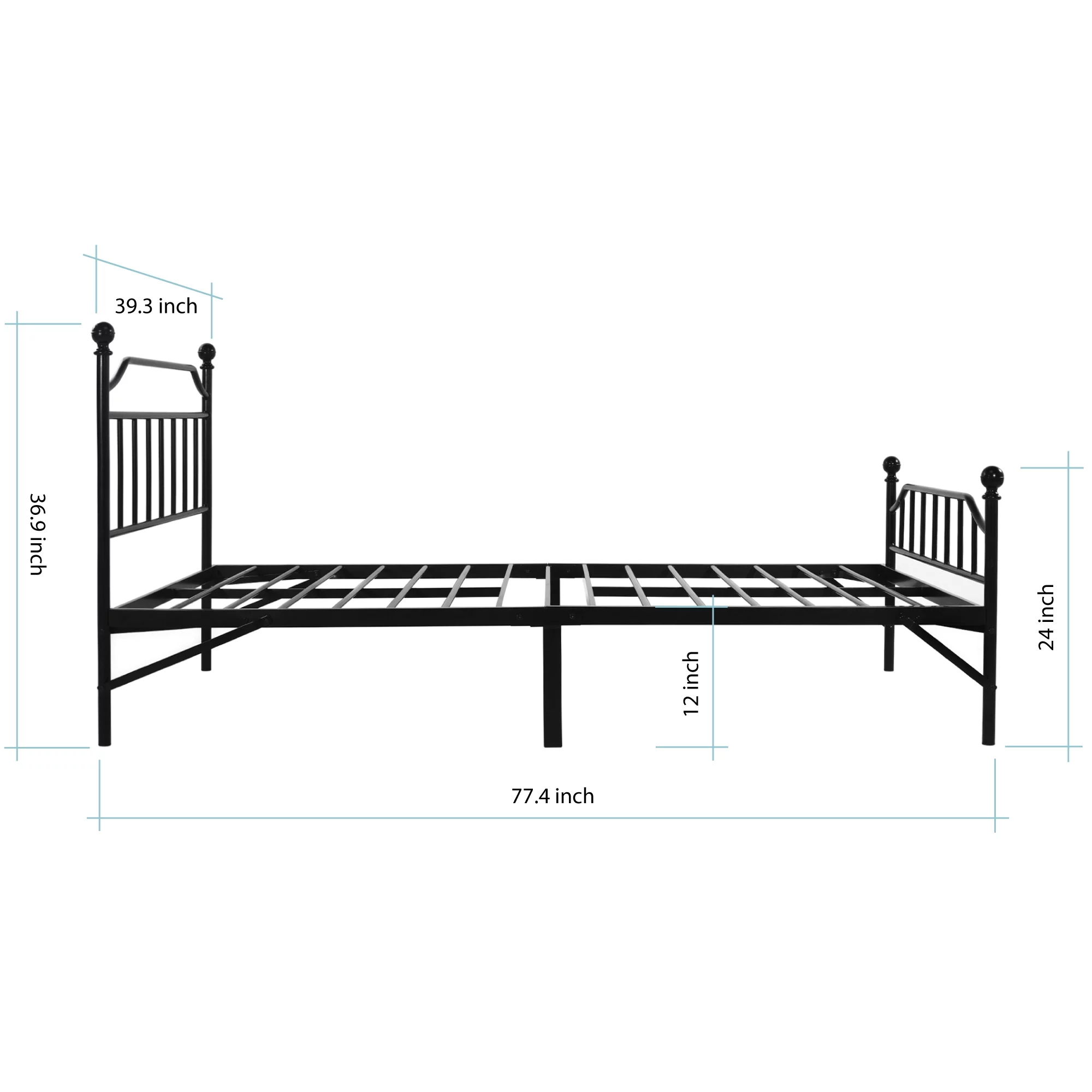 Best Price Mattress 12 Inch All-in-One Easy Setup Metal Platform Bed w/Steel slats and Headboard
