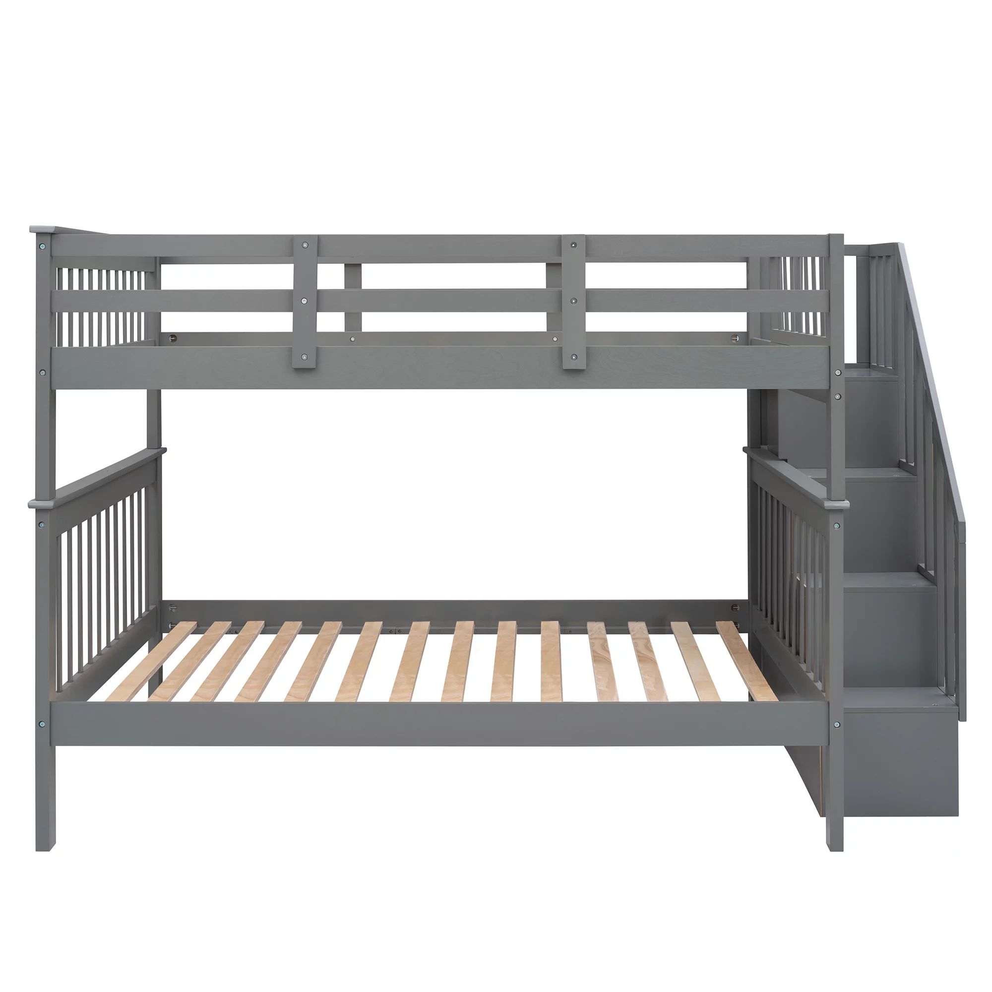 Abanopi Stairway Full-Over-Full Bunk Bed with Storage and Guard Rail for Bedroom, Dorm, Gray