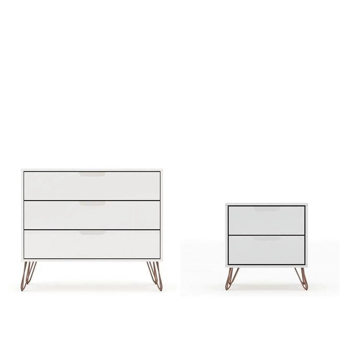 Manhattan Comfort Rockefeller 5-Drawer and 3-Drawer Off White and Nature Dresser Set