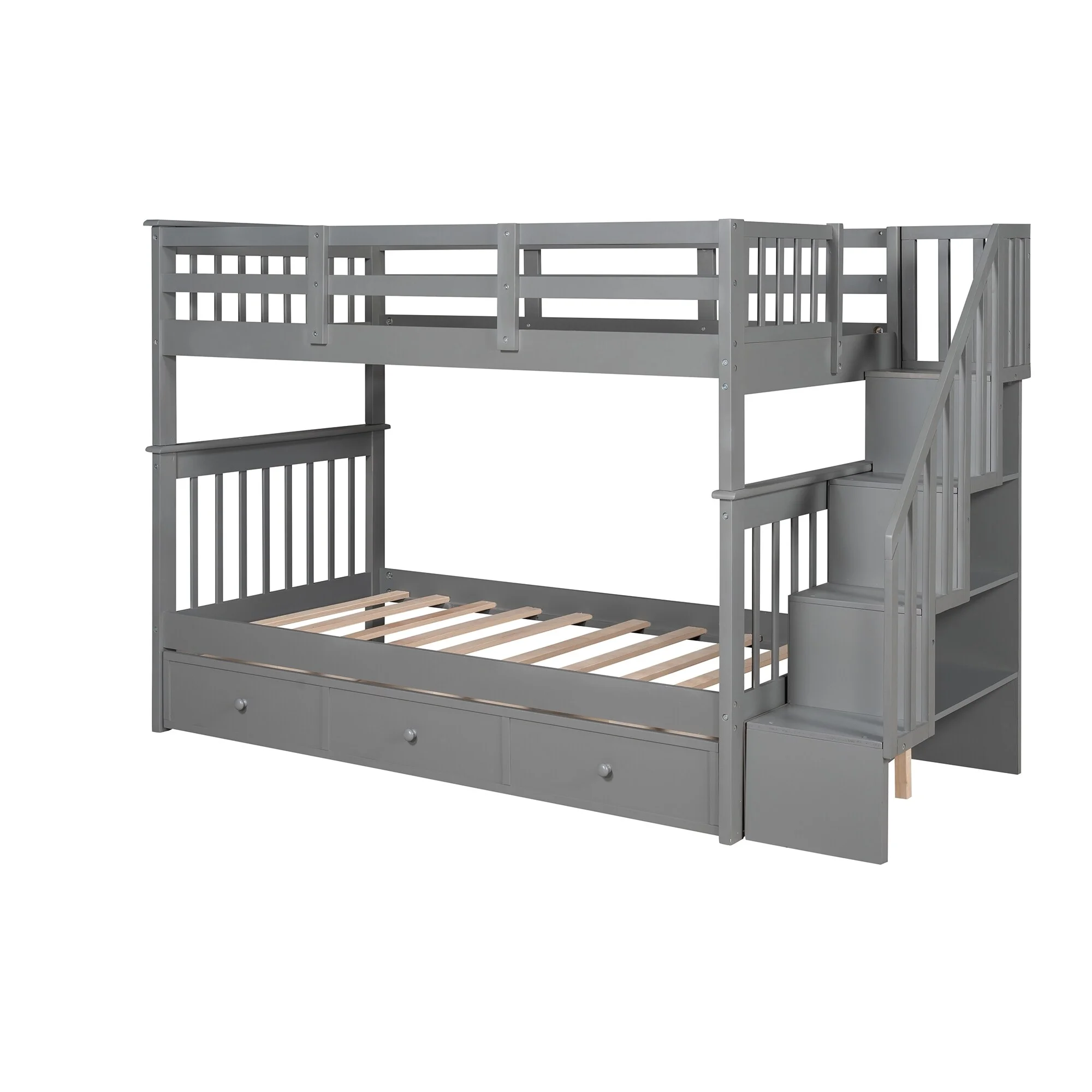 Dcenta Stairway Twin-Over-Twin Bunk Bed with Storage and Guard Rail for Bedroom, Dorm, Gray color