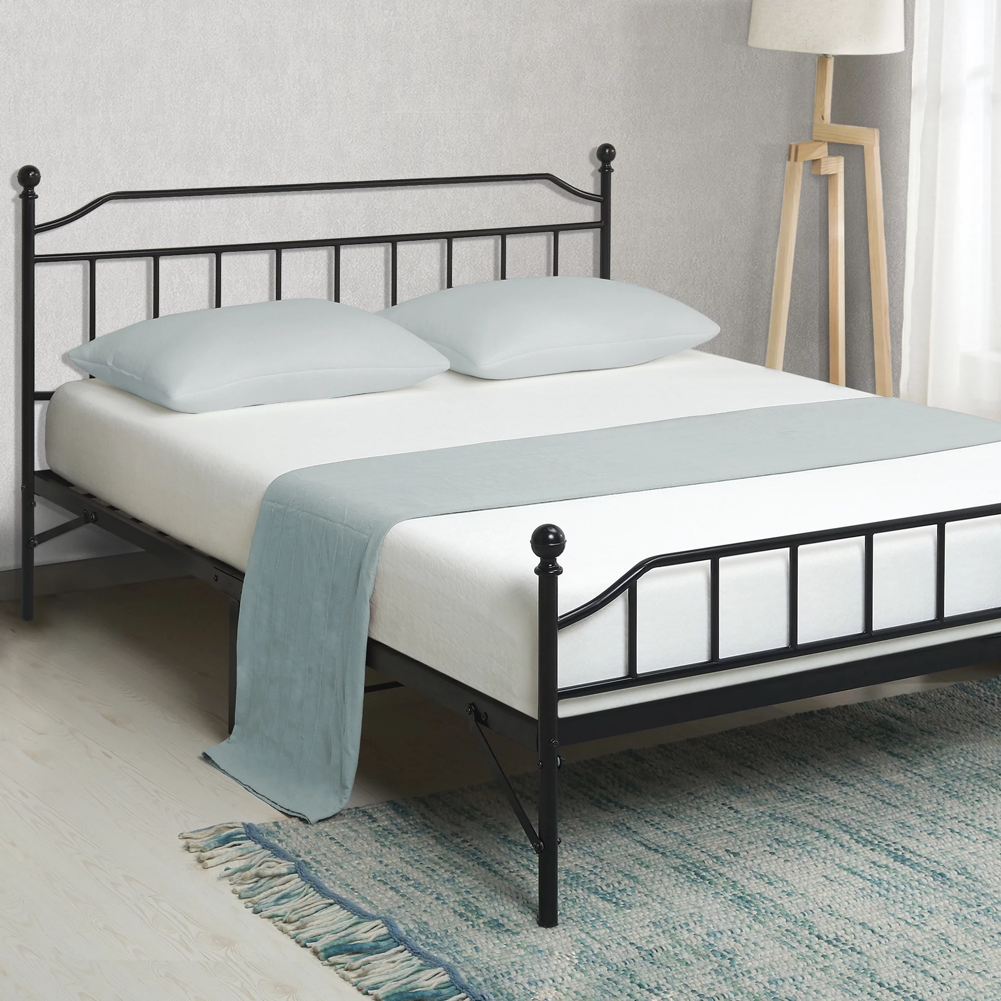 Bed Frame Queen Metal Canopy Platform Bed Frame with Built-in Headboard No Box Spring Needed Classic Design Black