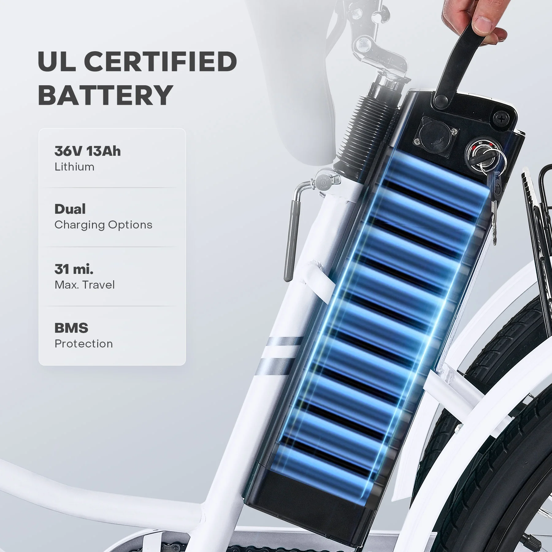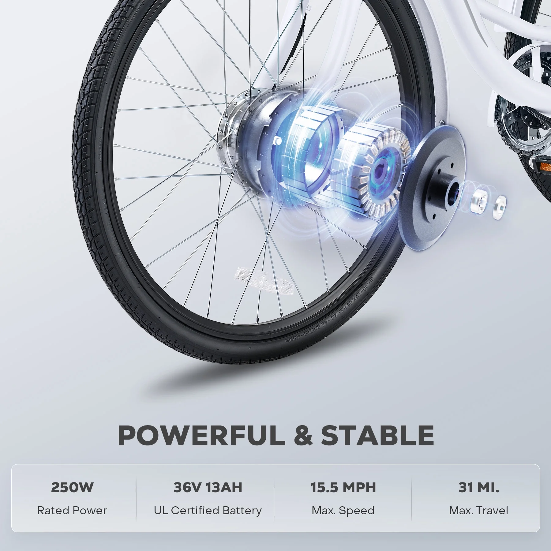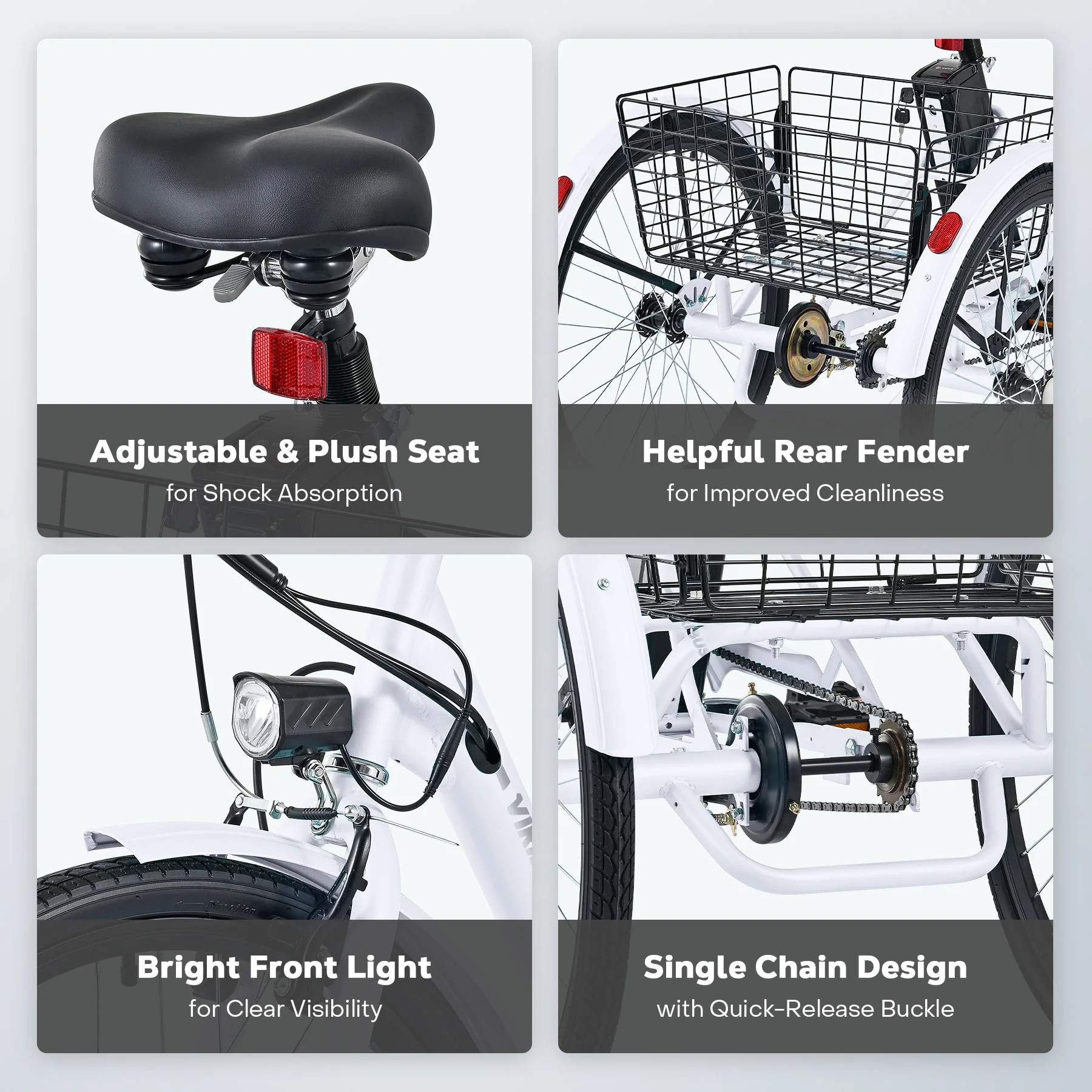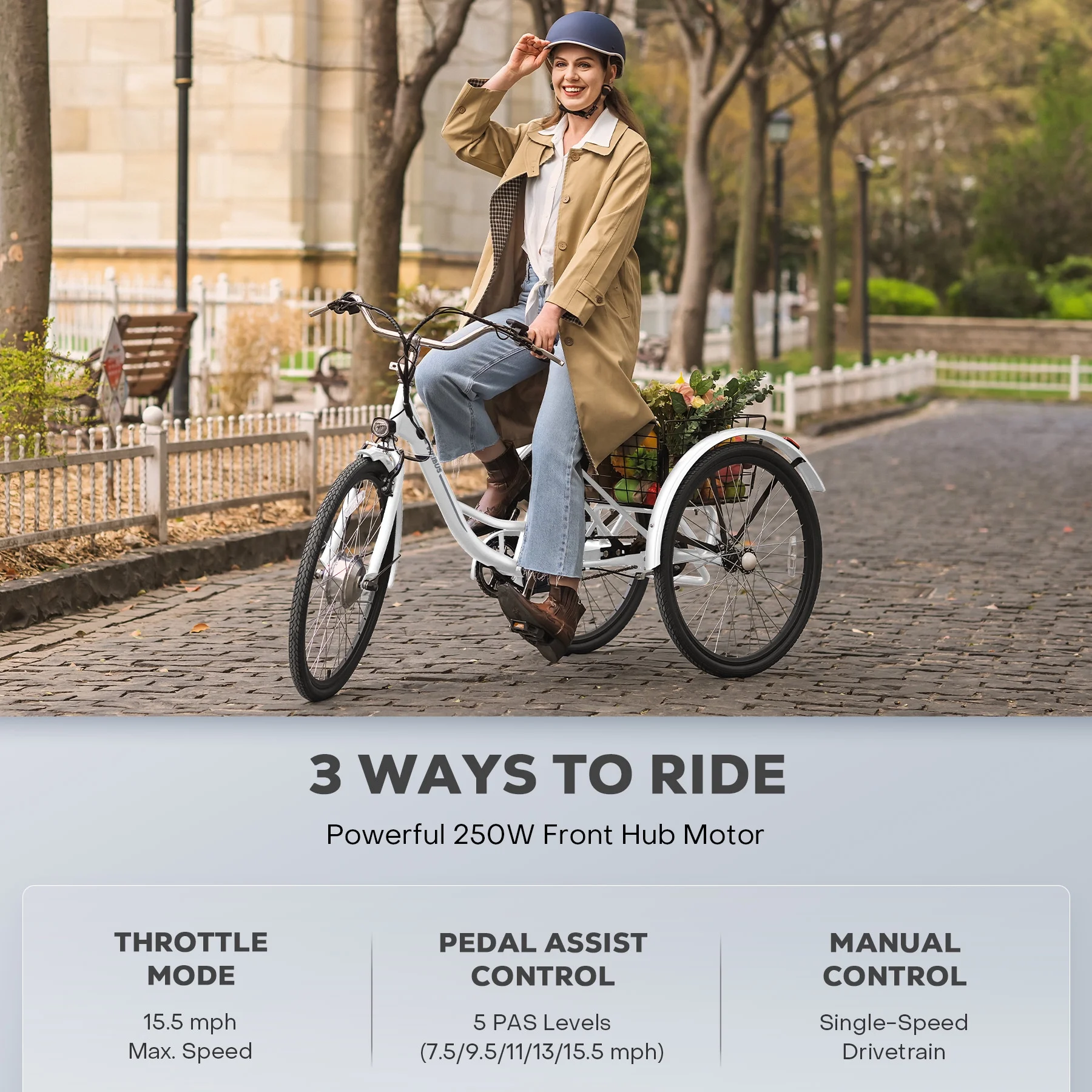 26" Adult Electric Tricycle 250W Electric Trike with 36V 13Ah Battery UL 2271 White