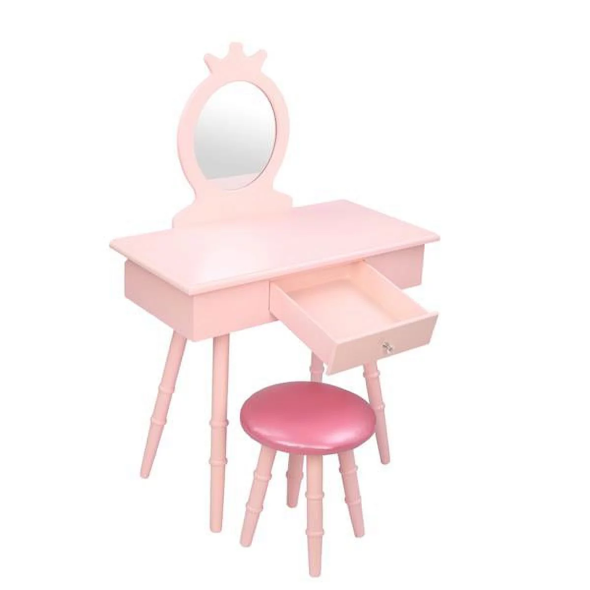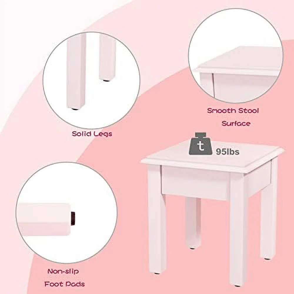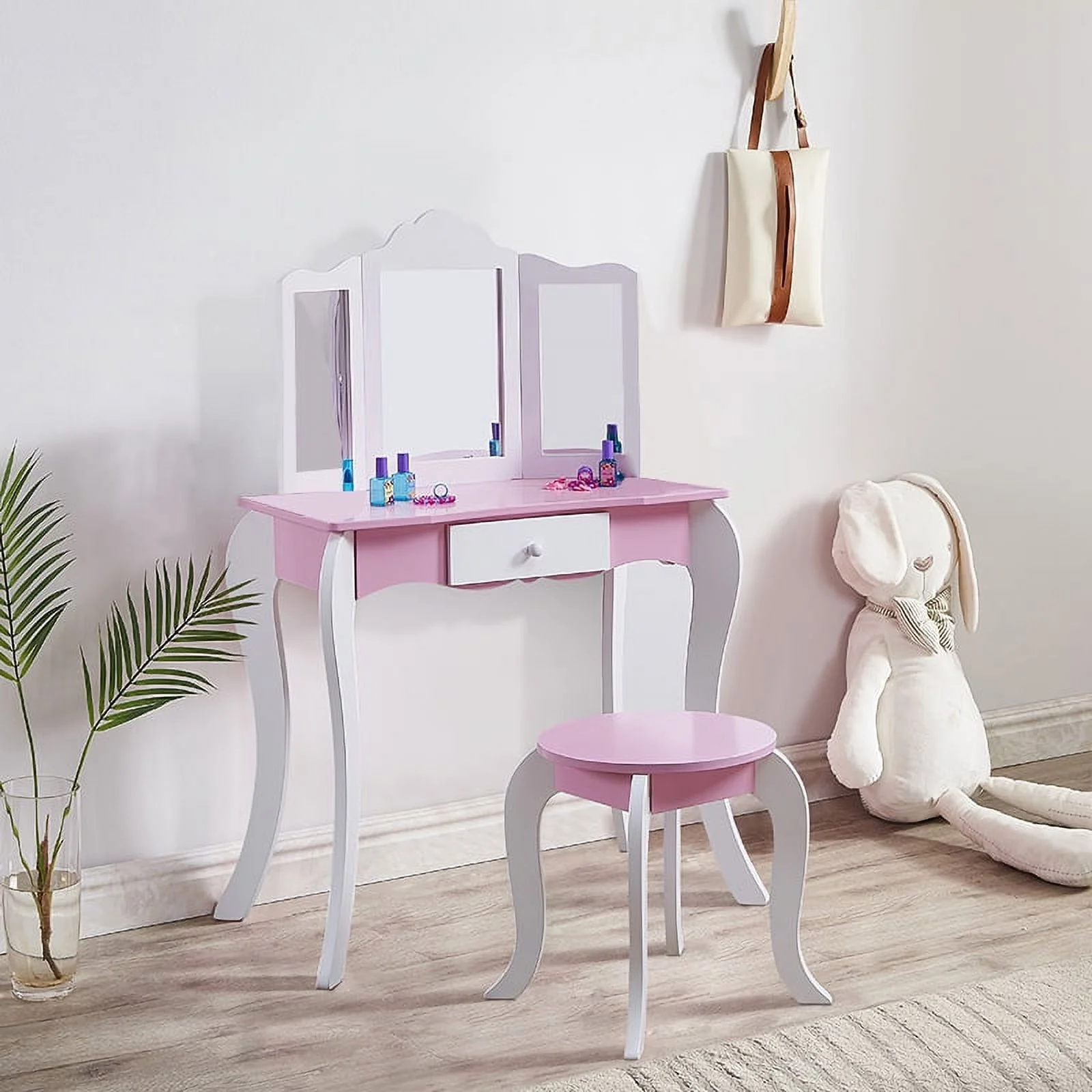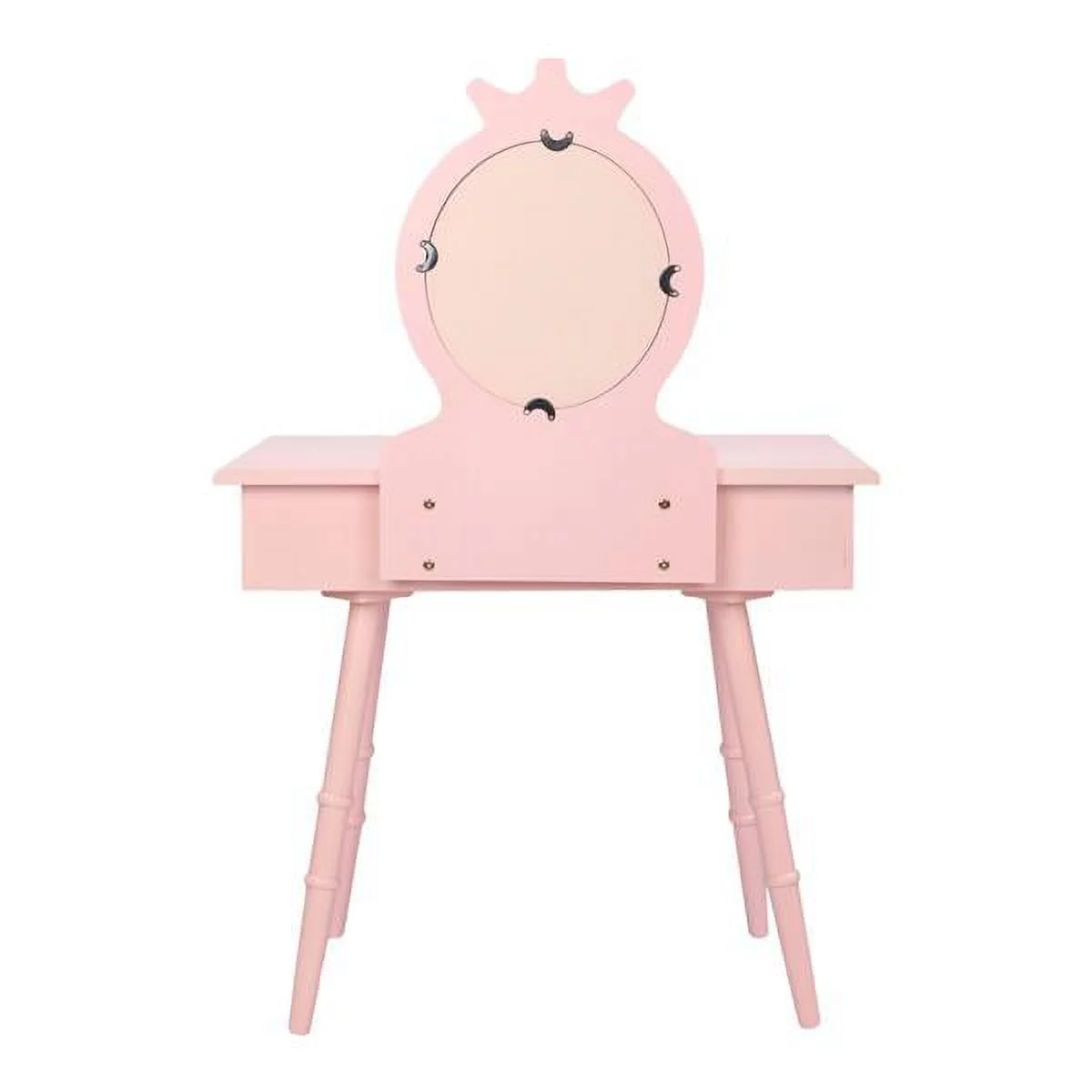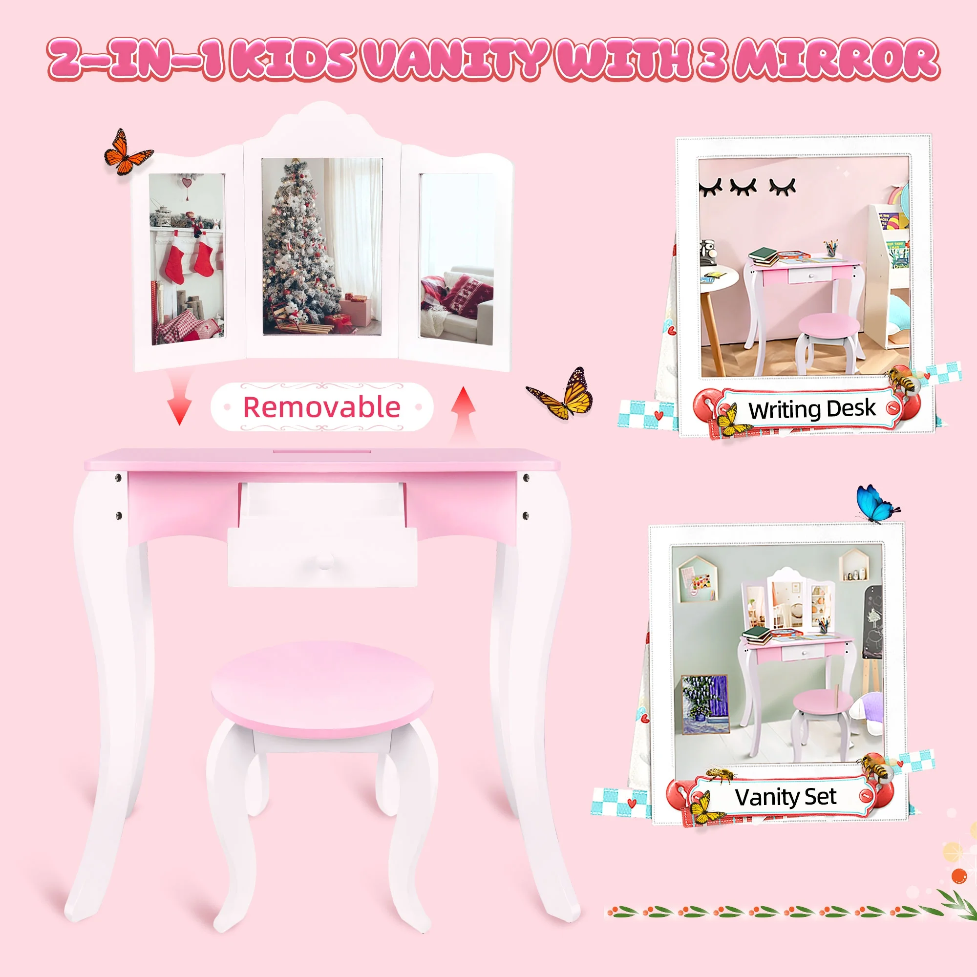 SPECSTAR Kids Vanity Set, Princess MDF Makeup Dressing Table with 360° Rotating Mirror and Drawers for Girls, Pink