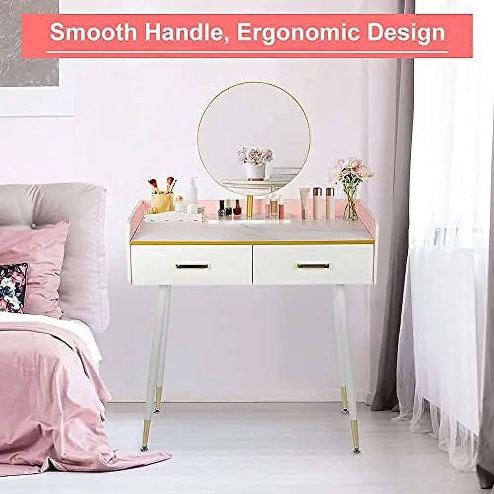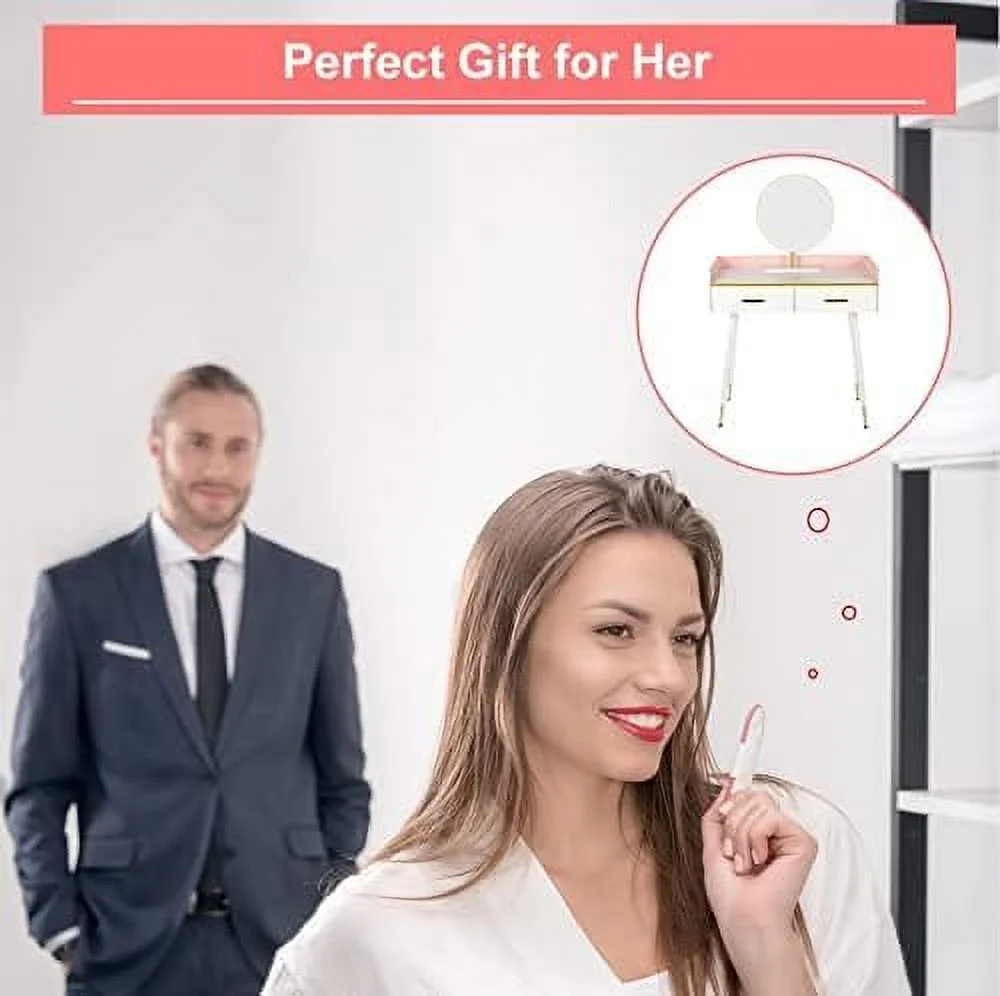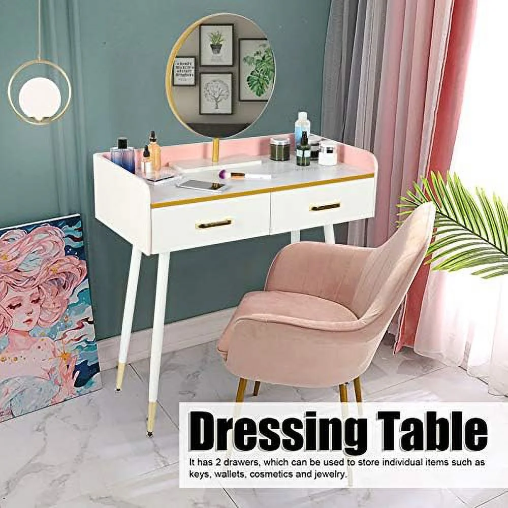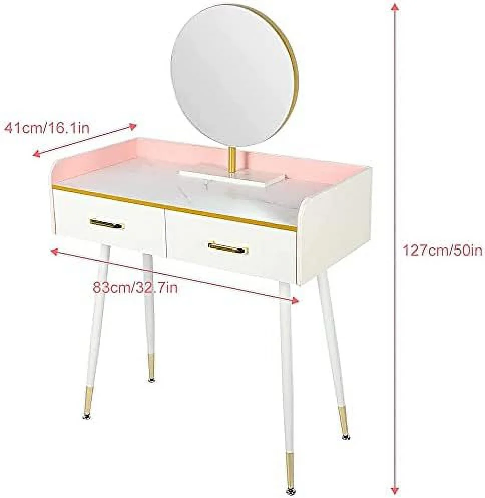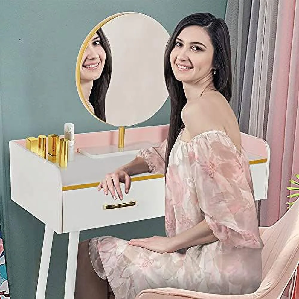 SPECSTAR Kids Vanity Set, Princess MDF Makeup Dressing Table with 360° Rotating Mirror and Drawers for Girls, Pink