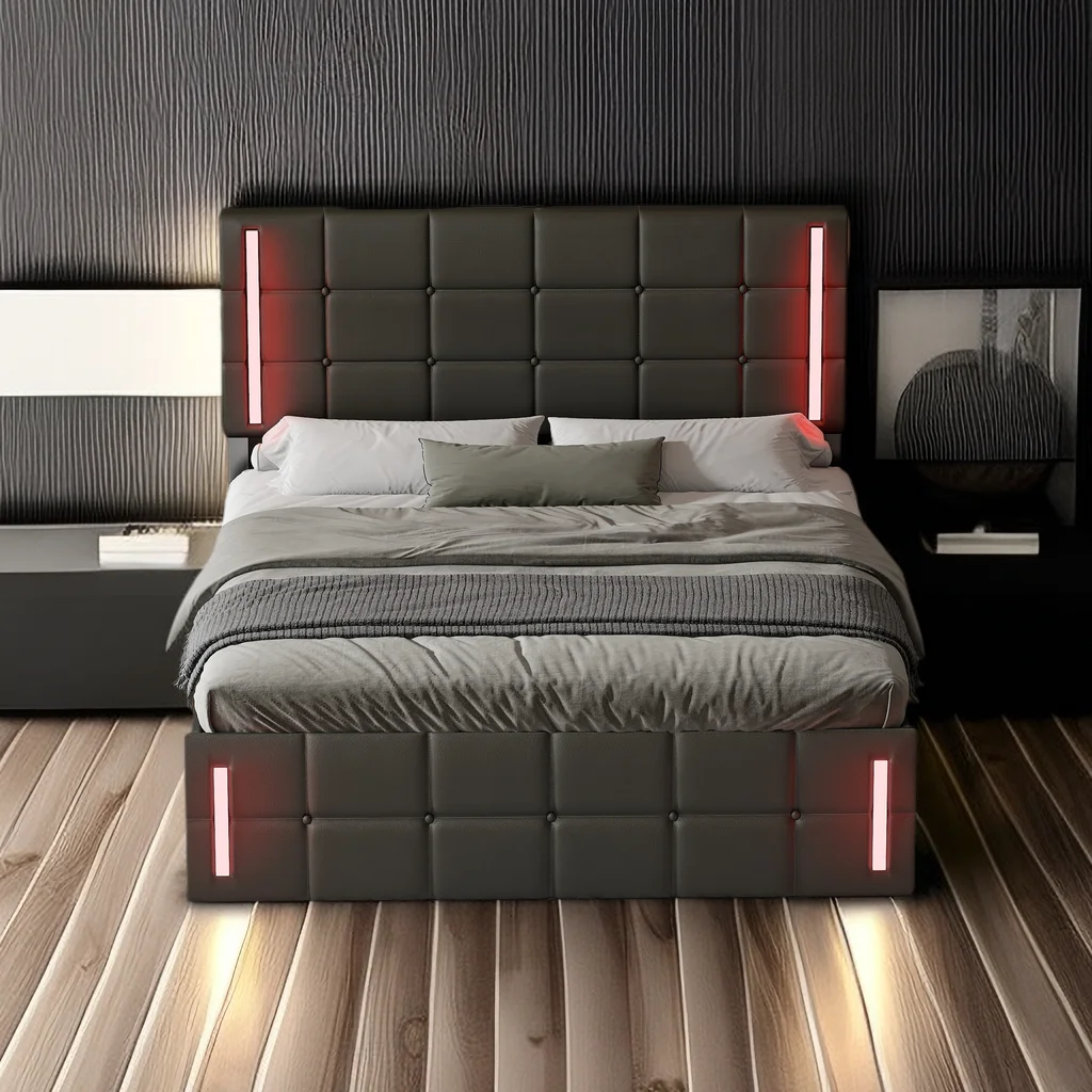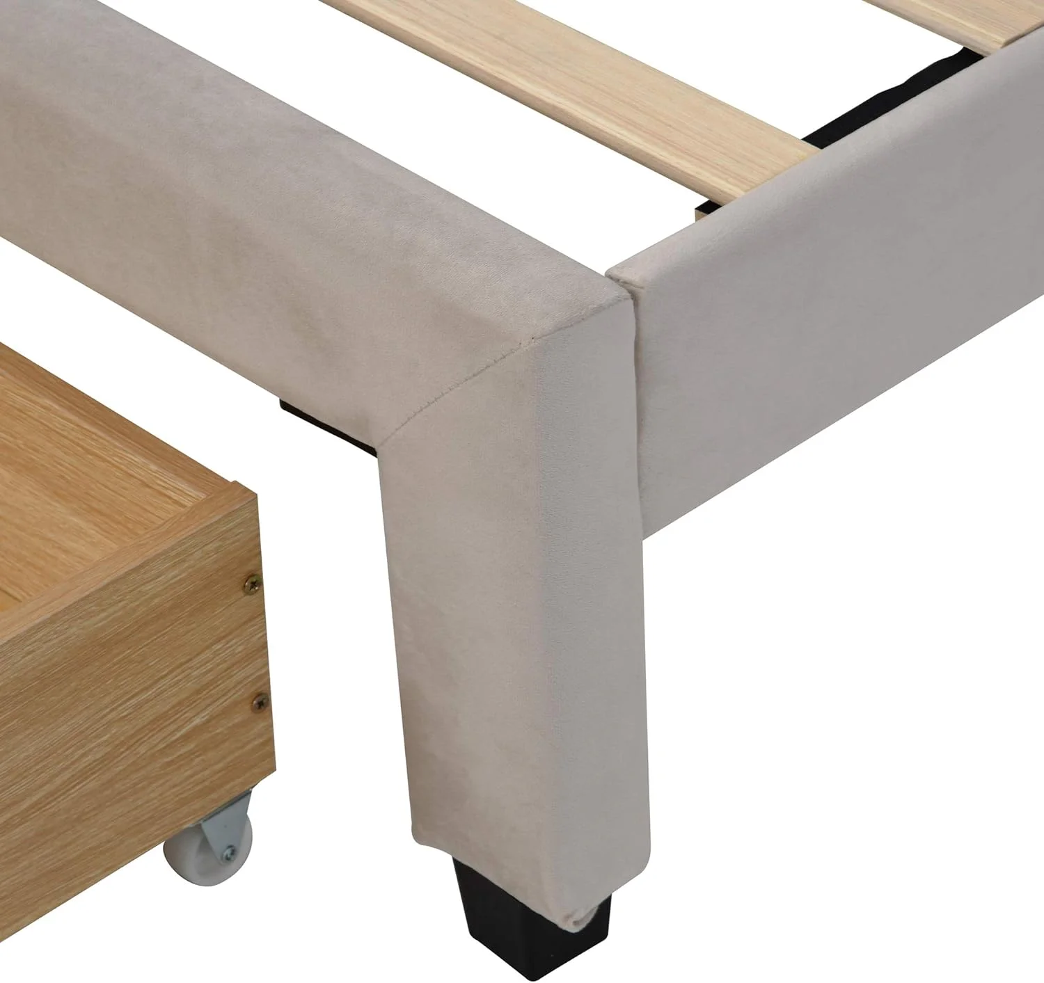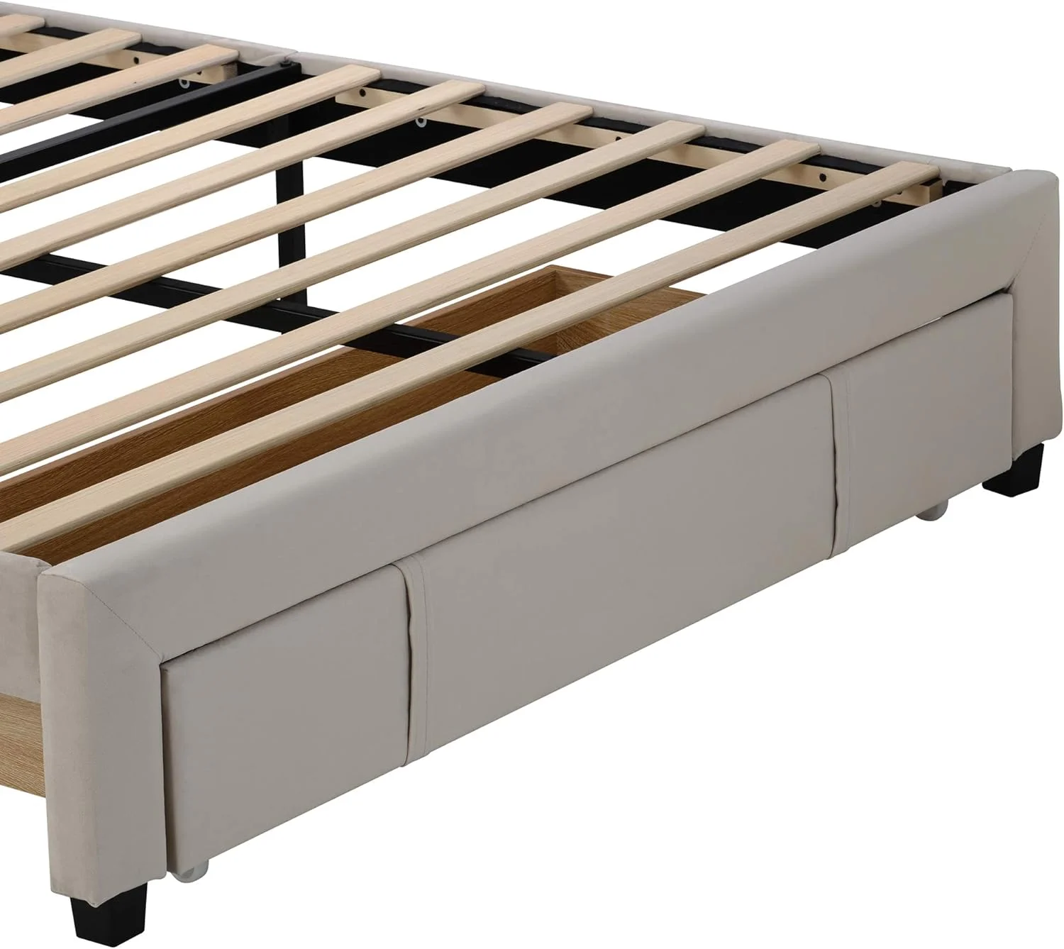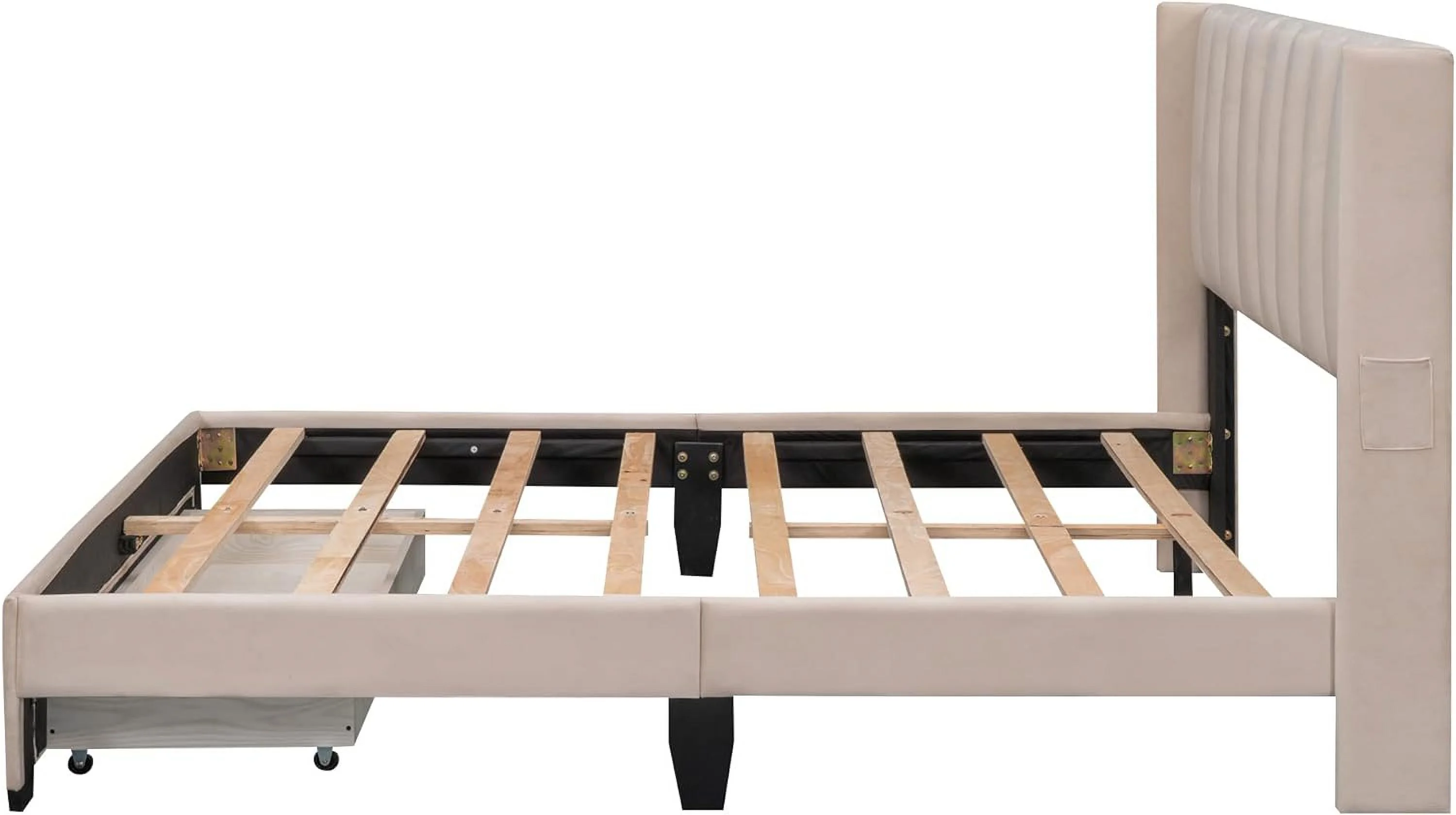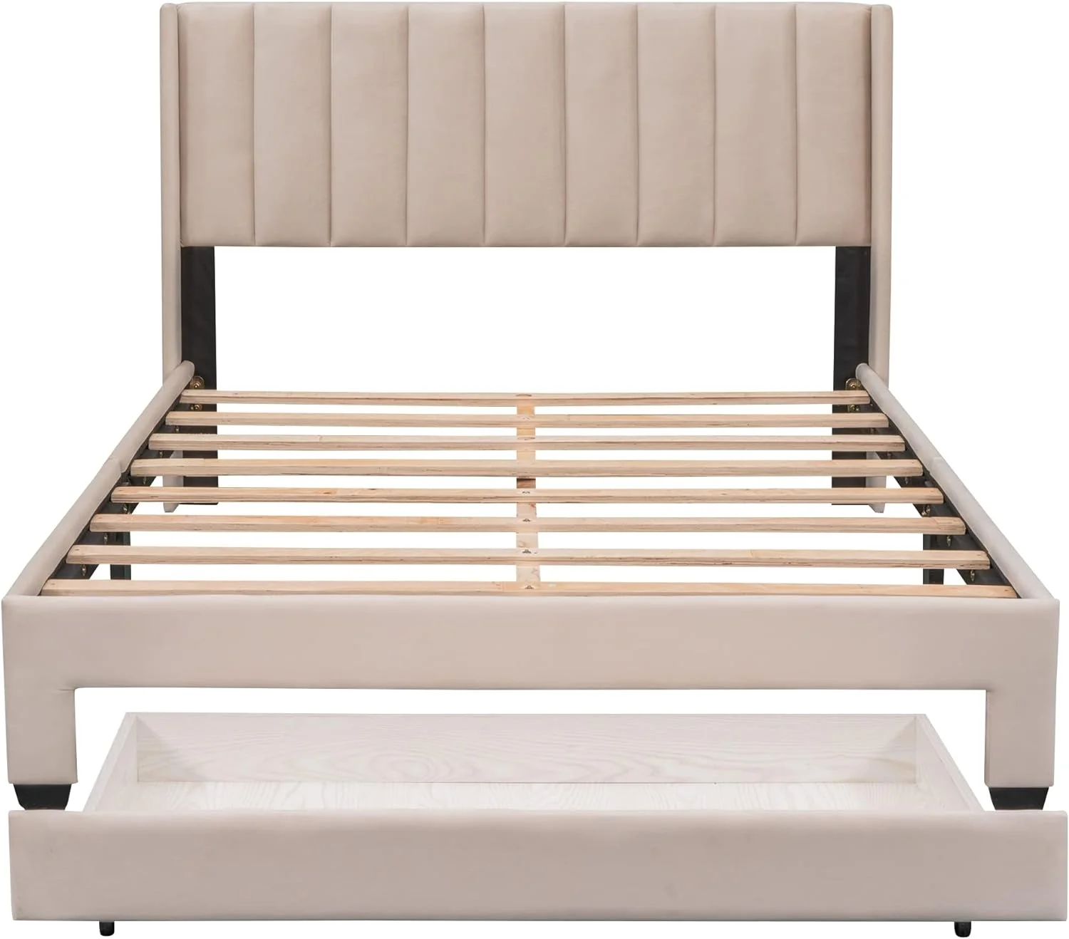 Sorage Bed Velve Upholsered Plaform Bed Frame Wih A Big Drawer,Queen Size Wooden Sla Suppor, No Box Spring Needed