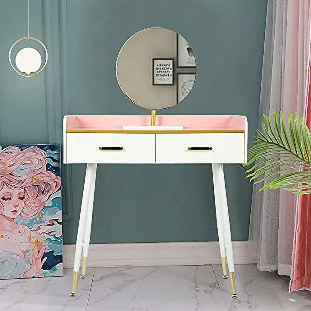 Bornmio Children's Single Mirror Single Drawer Round Foot Dresser Pink