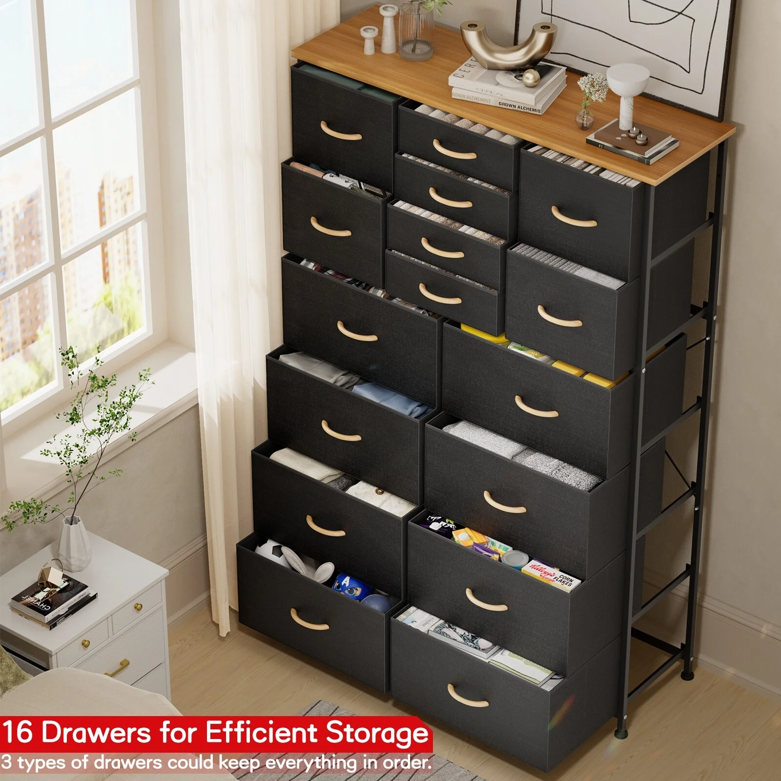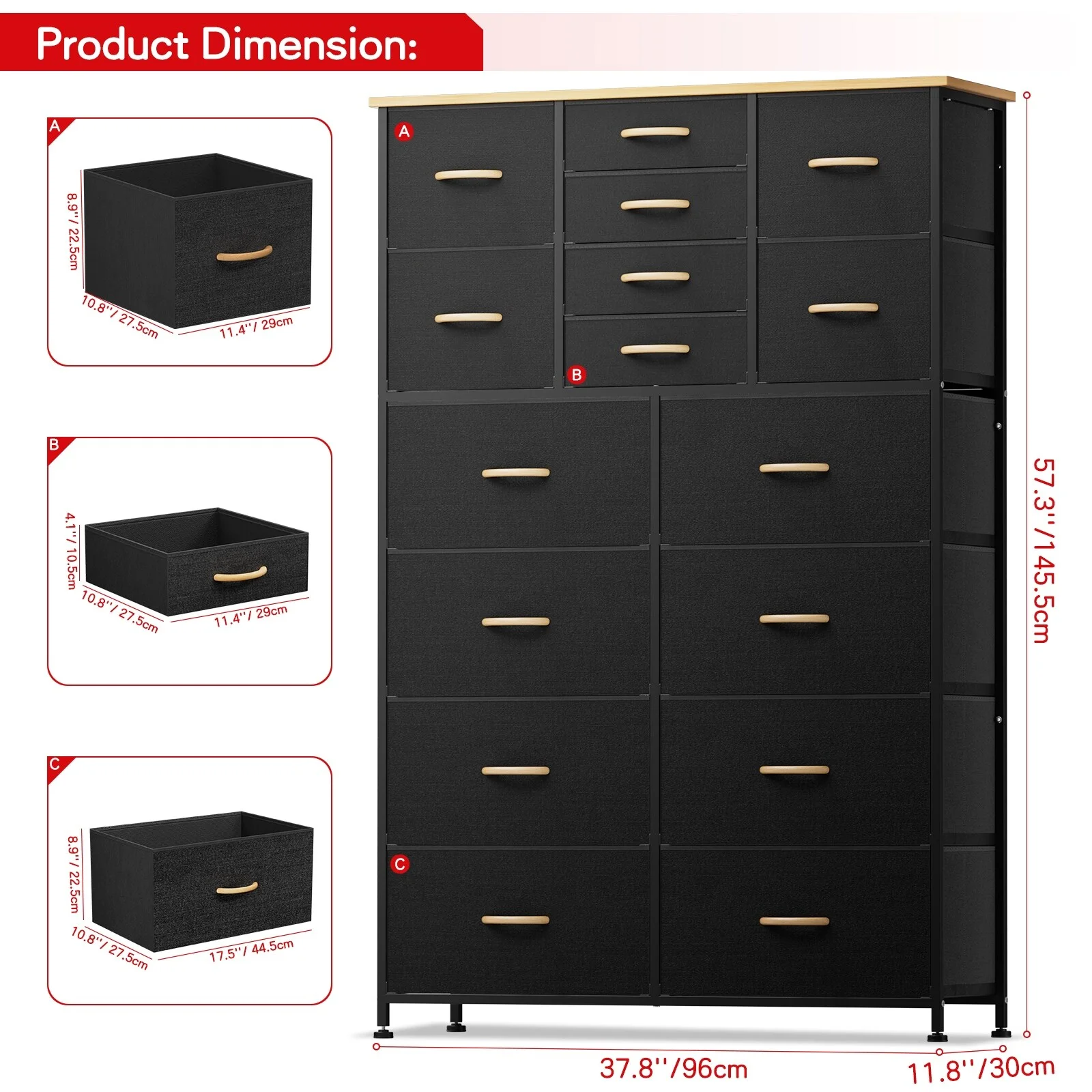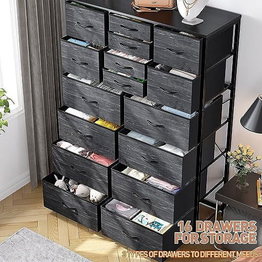 Storage Tower Unit with 16 Drawers, Leather storage, Bedroom, Livingroom, Black