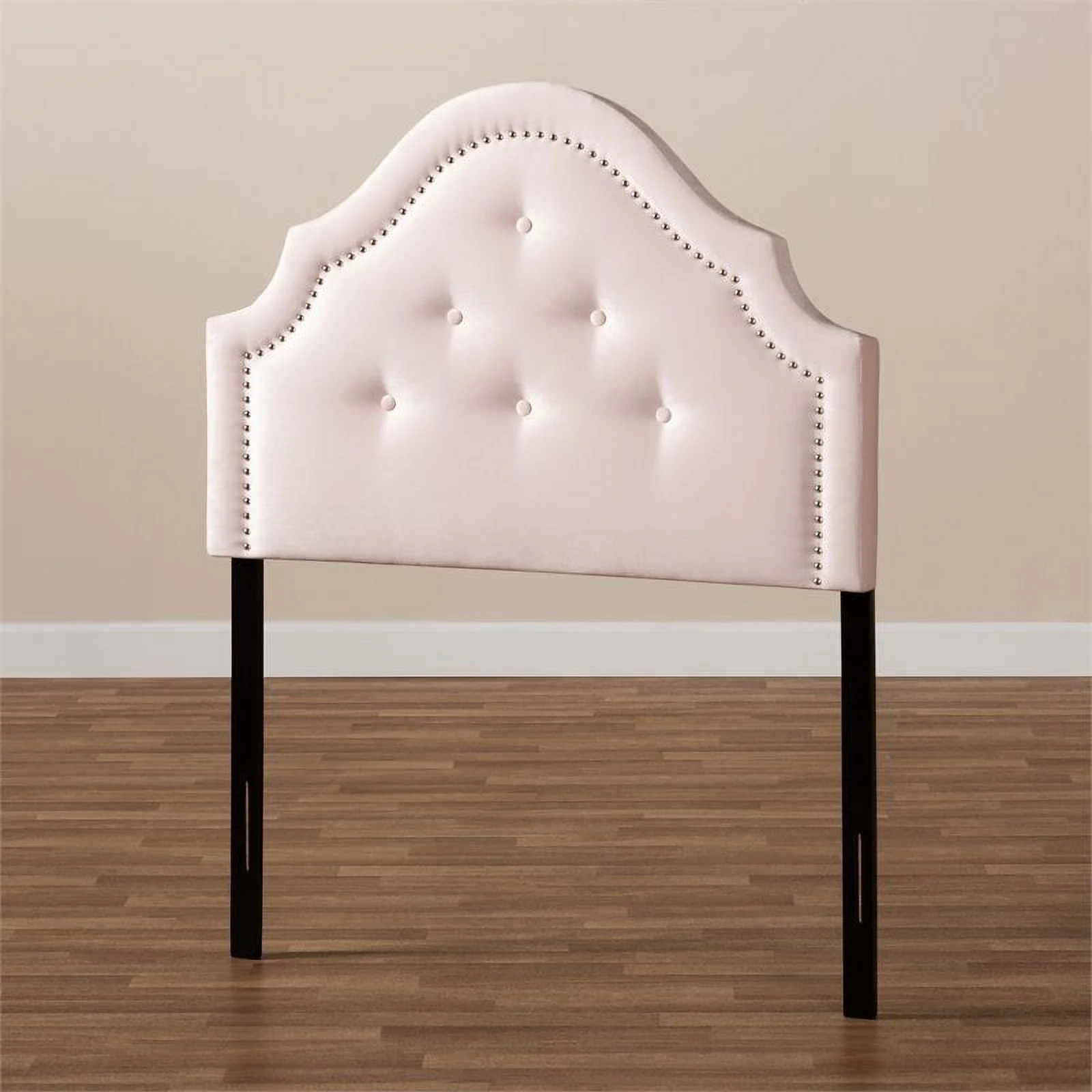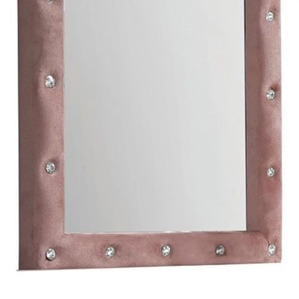 22 Inch Contemporary Upholstered Mirror, Crystal Tufting, Arched Top, Pink- Saltoro Sherpi