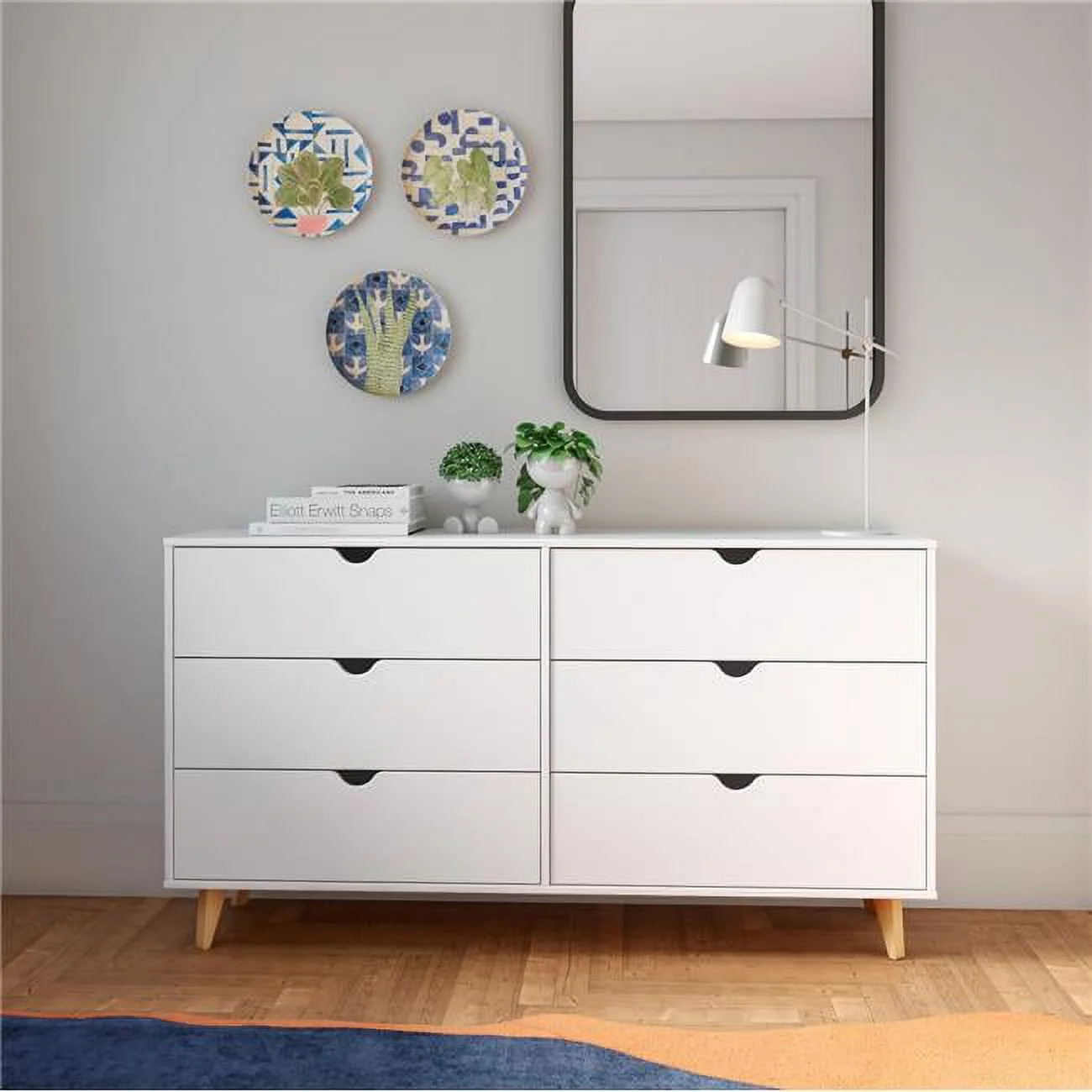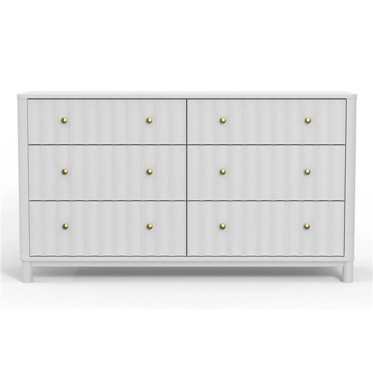 HomeRoots 490832 32 x 59 x 16 in. White Scoop Handle Six Drawers Double Dresser
