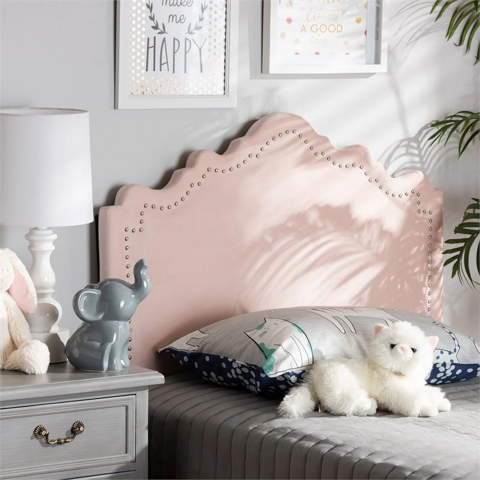 Sin 43 Inch Modern Mirror with Scalloped Wood Frame, Velvet, Pink- Saltoro Sherpi