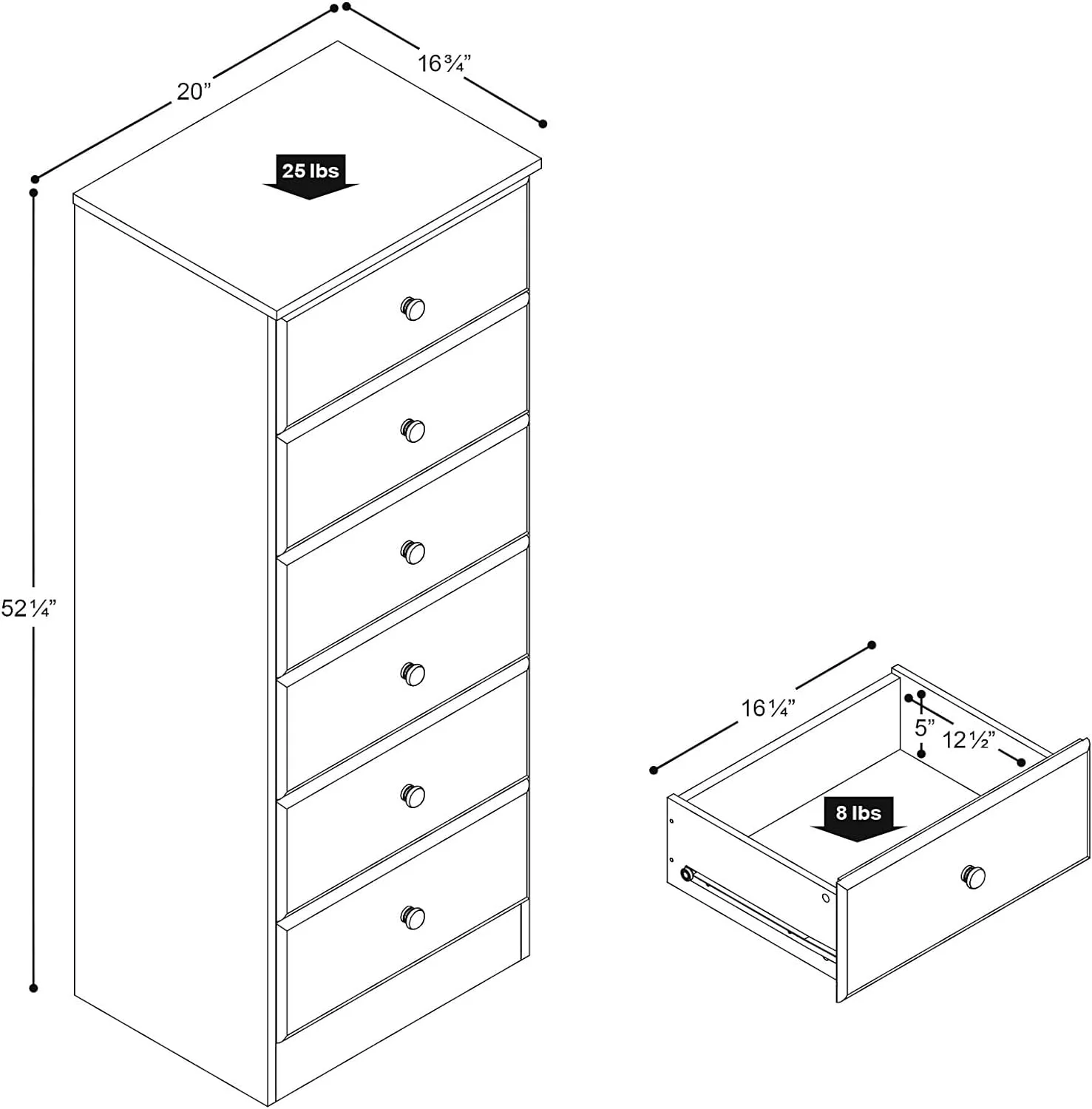 Tall White Dresser: 16"D x 20"W x 52"H, 6-Drawer Chest for Bedroom by - Perfect Chest of Drawers for Ample Storage