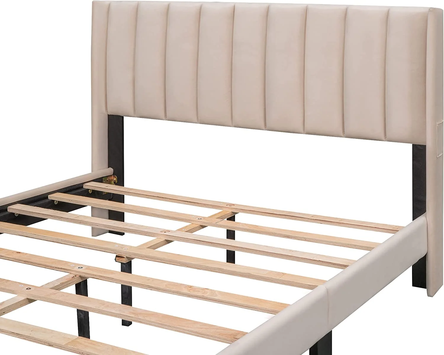 Baxton Studio Louvain Upholstered Full Platform Bed in Greyish Beige