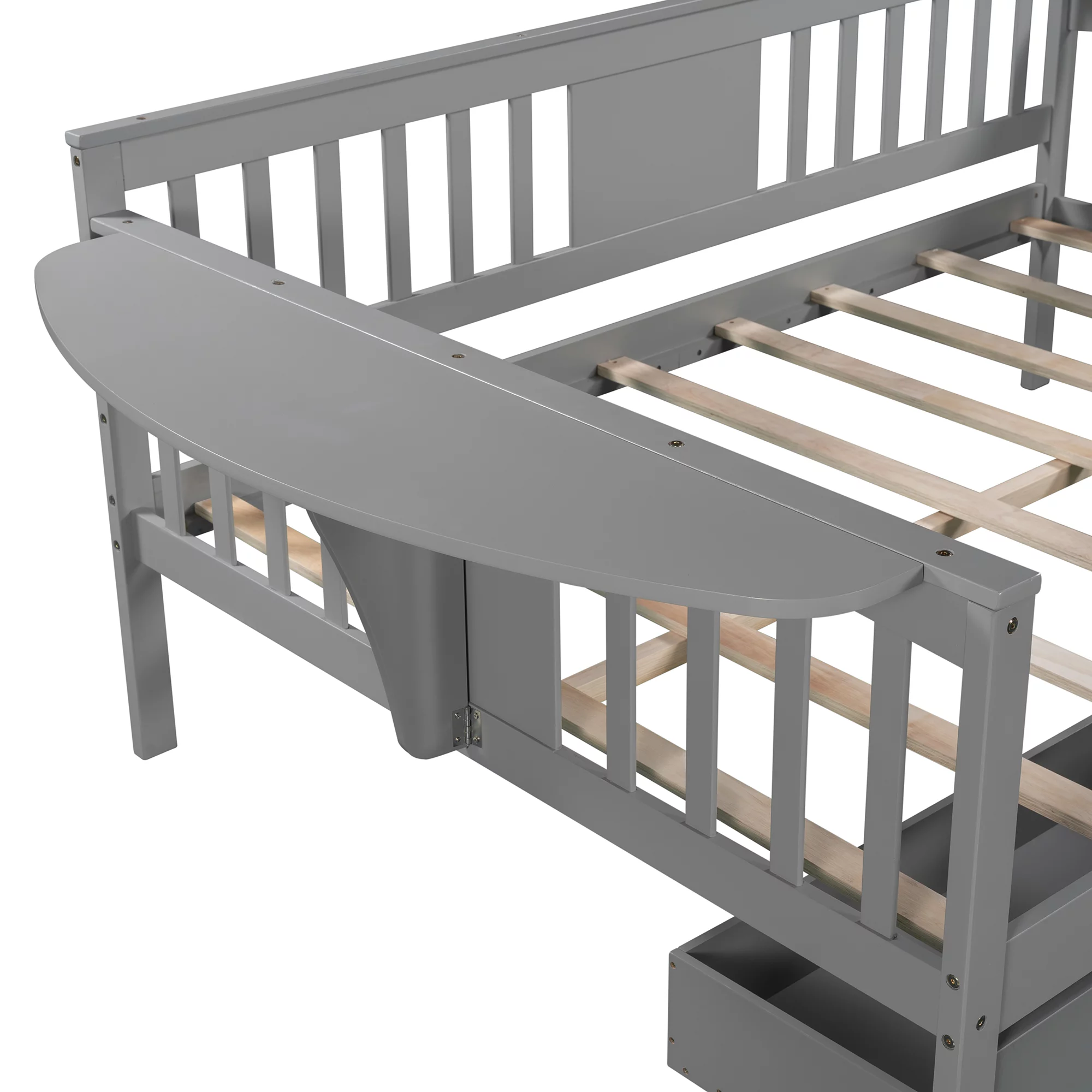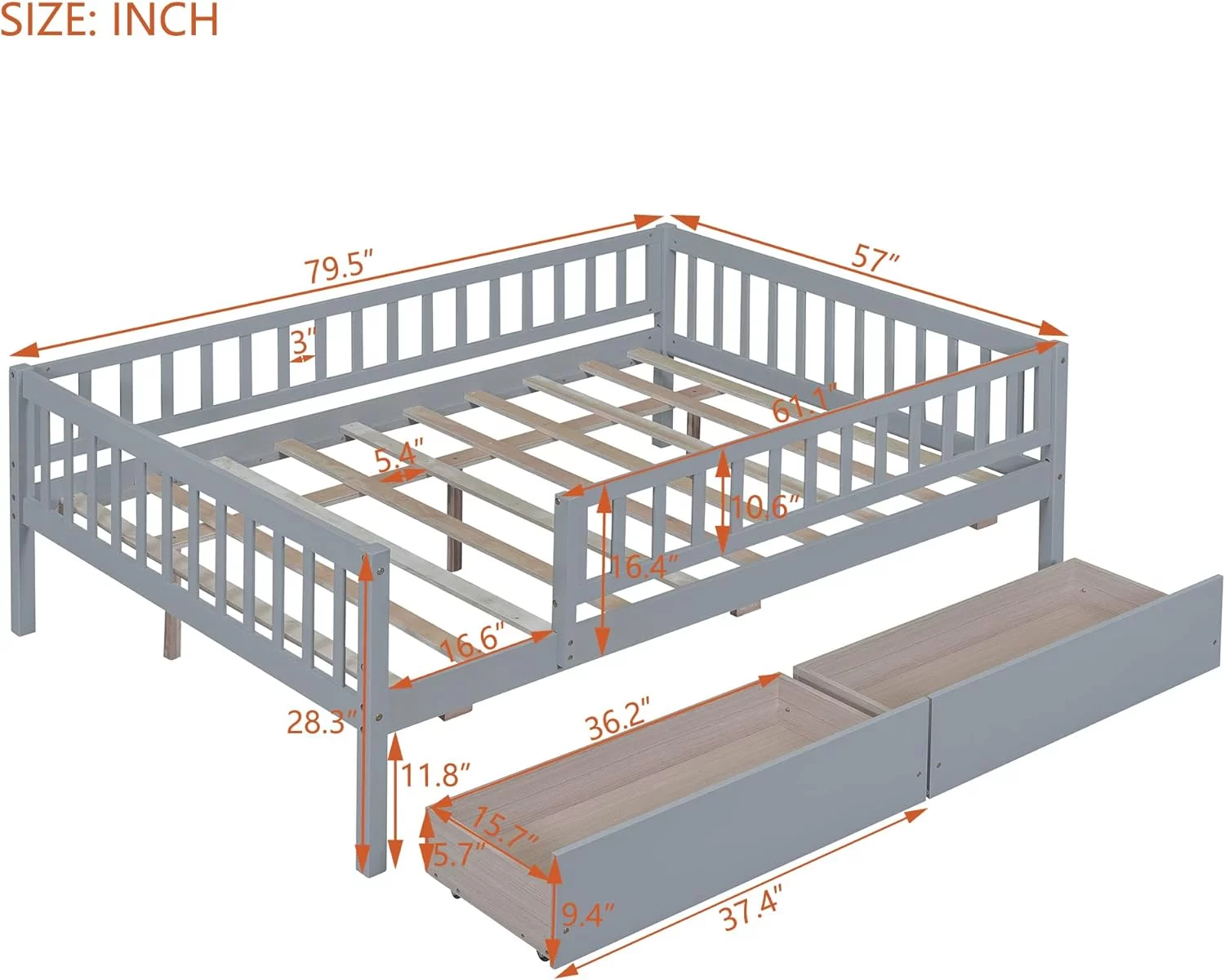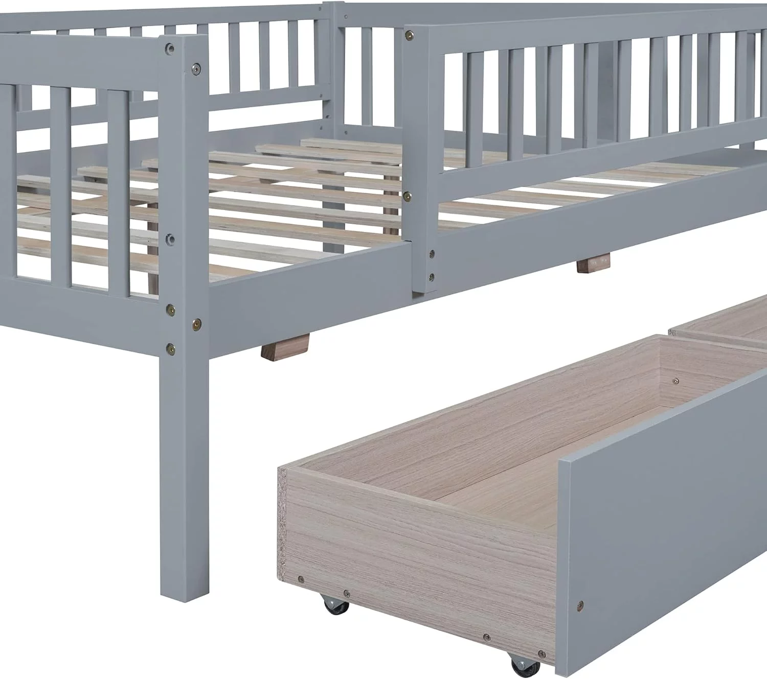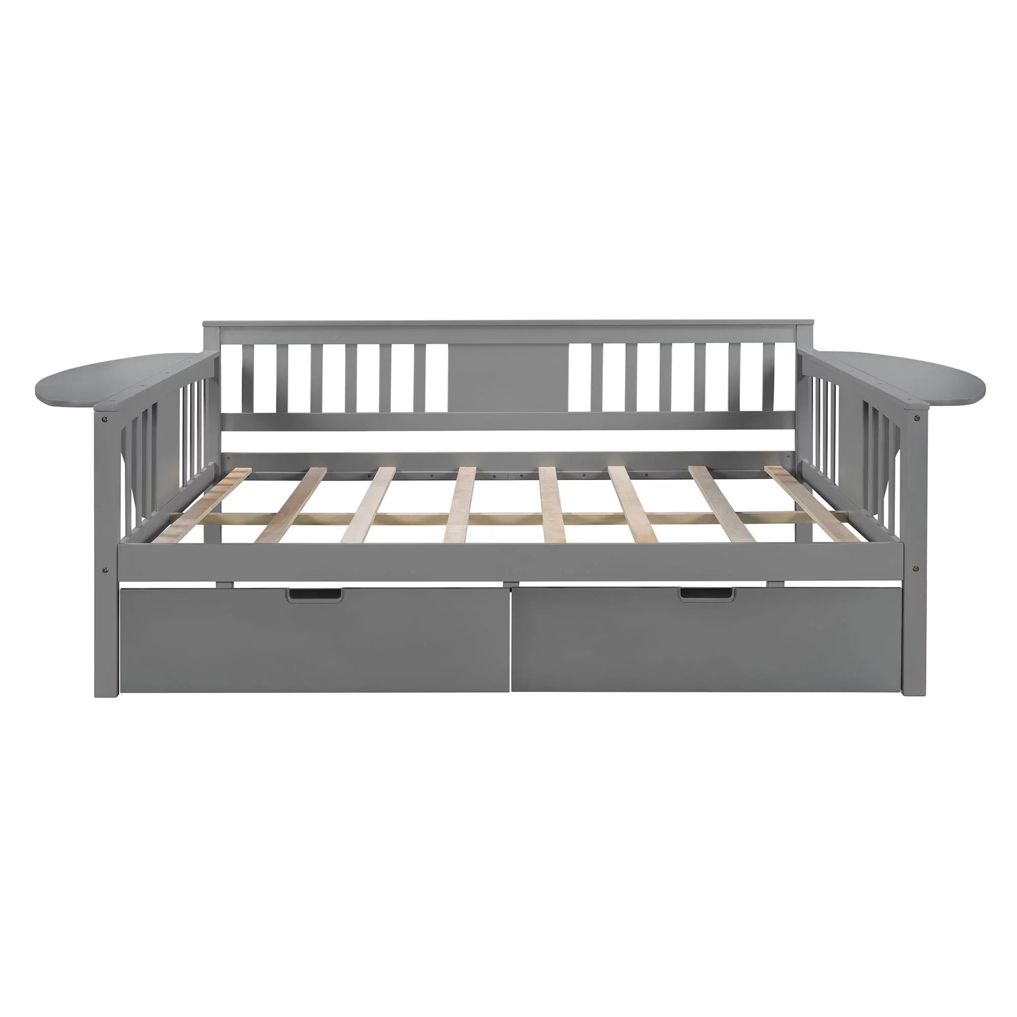 Full Size Daybed With Drawers, Wood Full Bed Frame, No Box Spring Needed, Gray