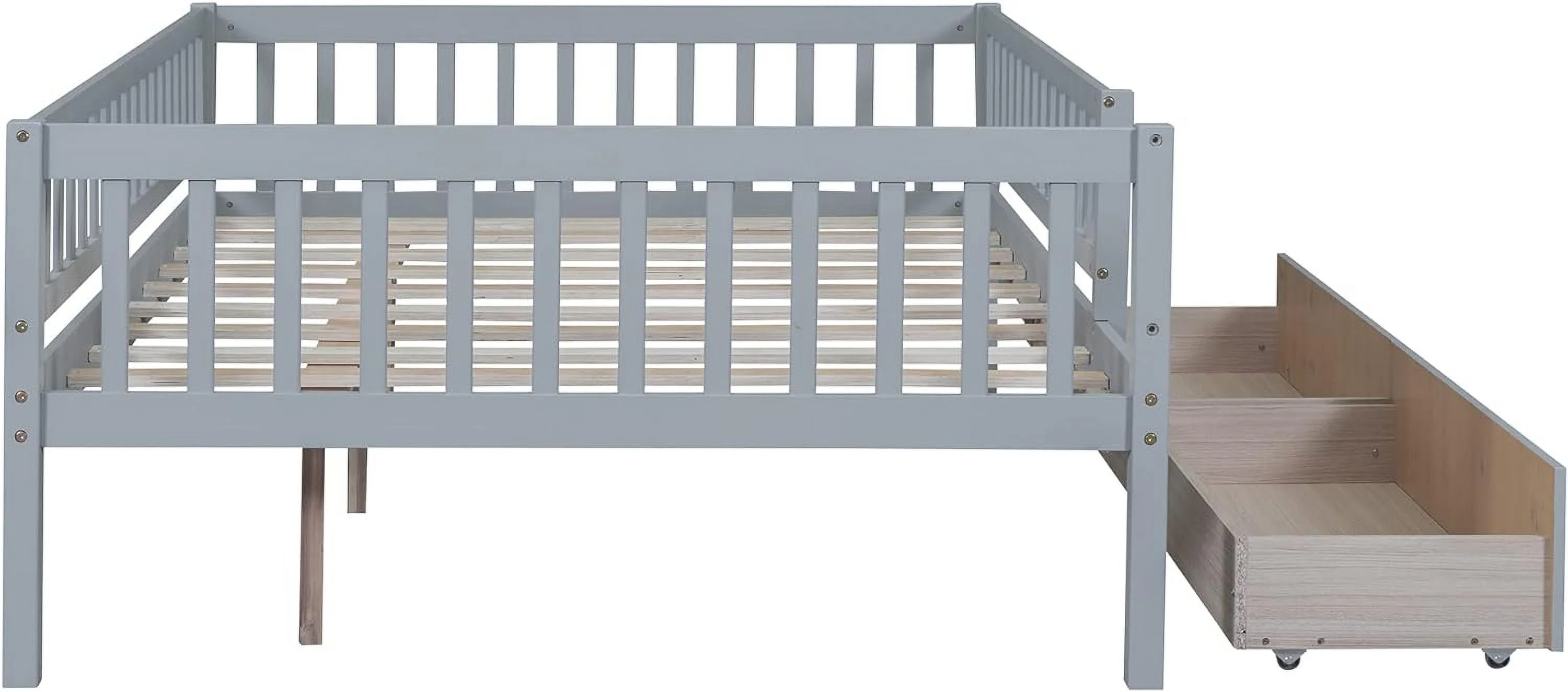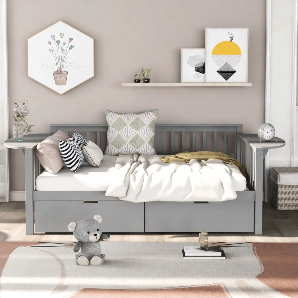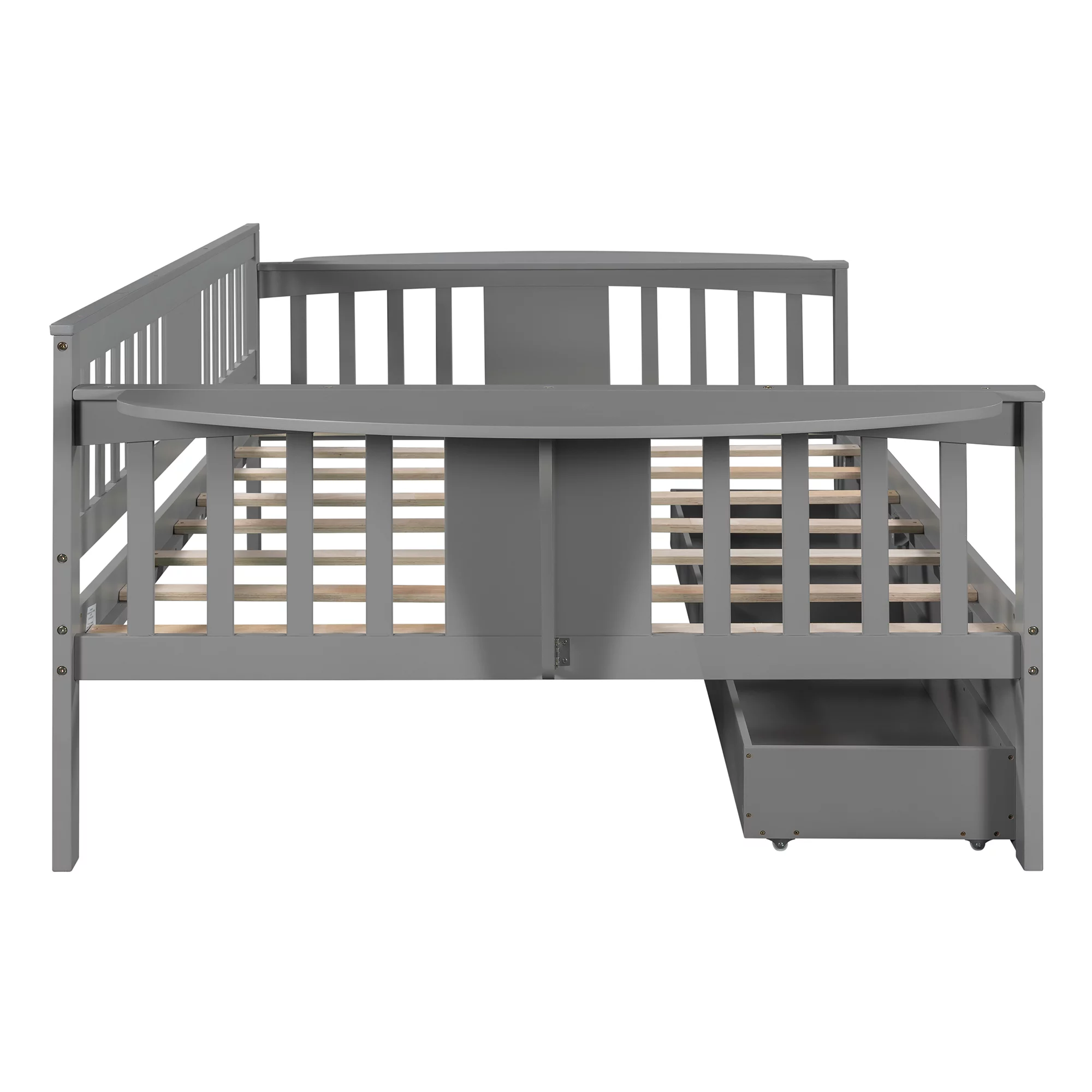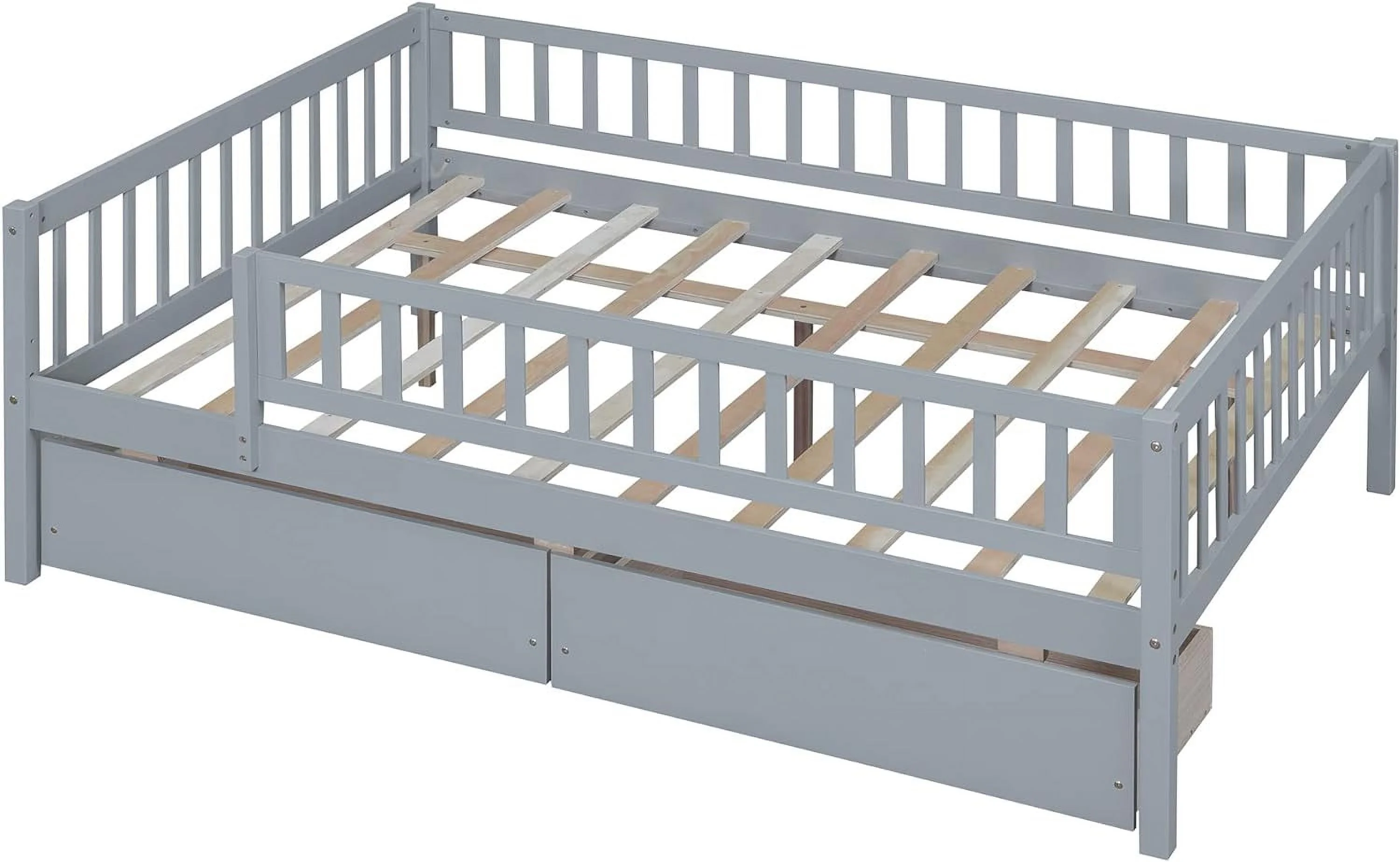 Full Size Daybed With Drawers, Wood Full Bed Frame, No Box Spring Needed, Gray