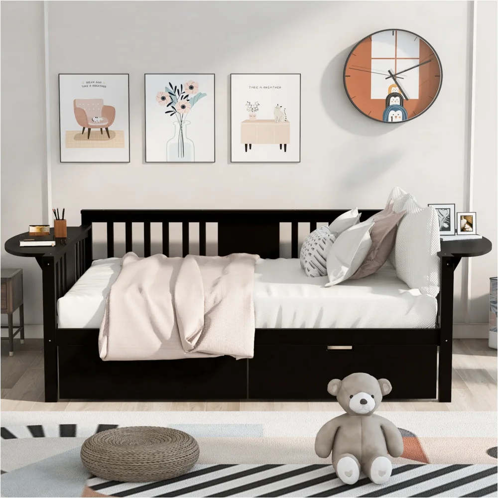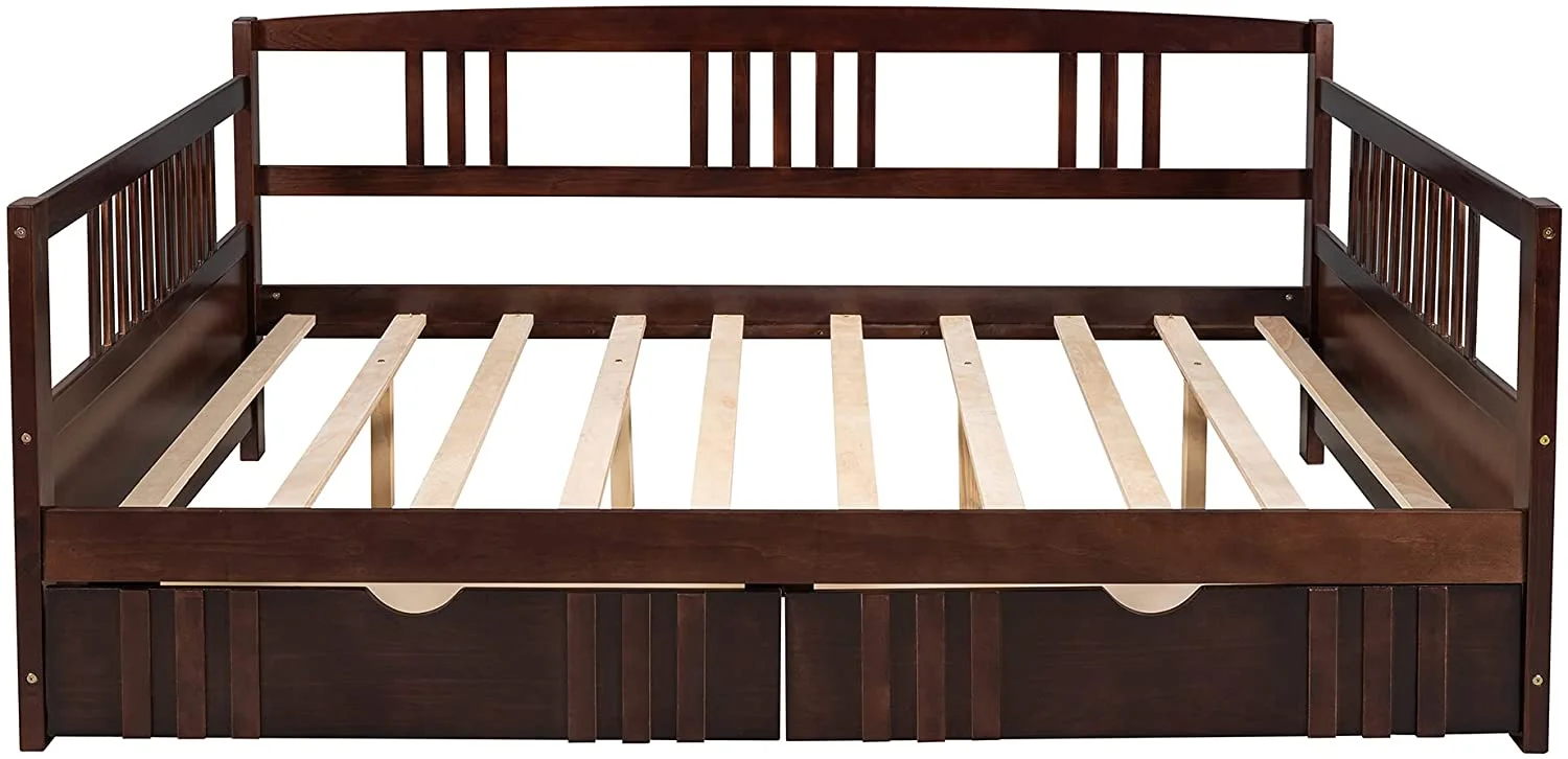 Dcenta Full size Daybed with Two Drawers, Wood Slat Support, Espresso