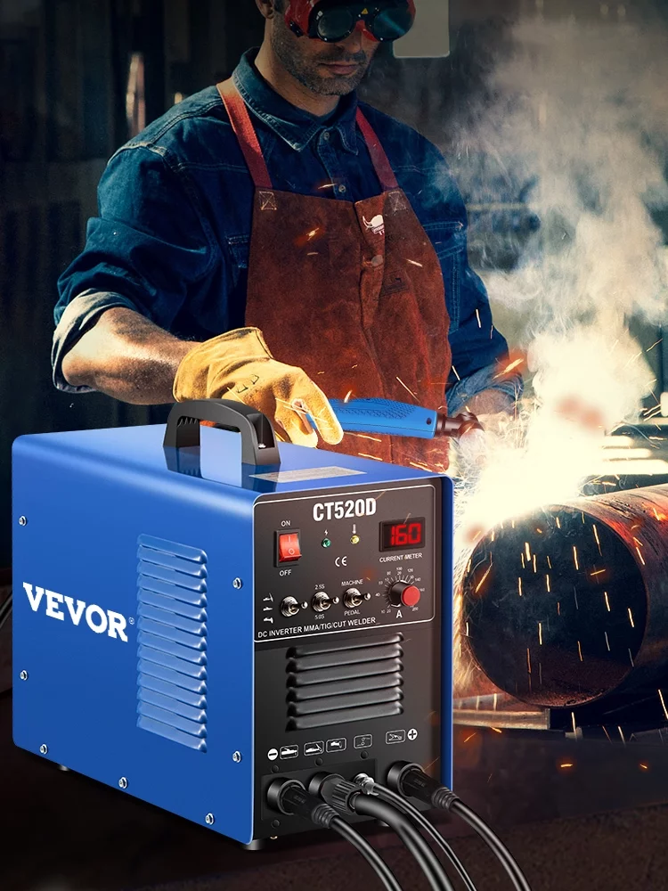 VEVOR 3in1 Combo Machine, Tig Welder, Arc Welder, & Plasma Cutter, Dual Voltage 110V & 220V, CT520D