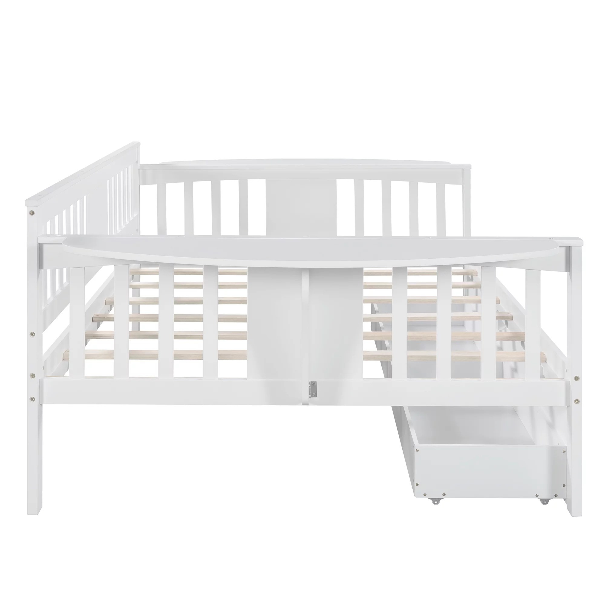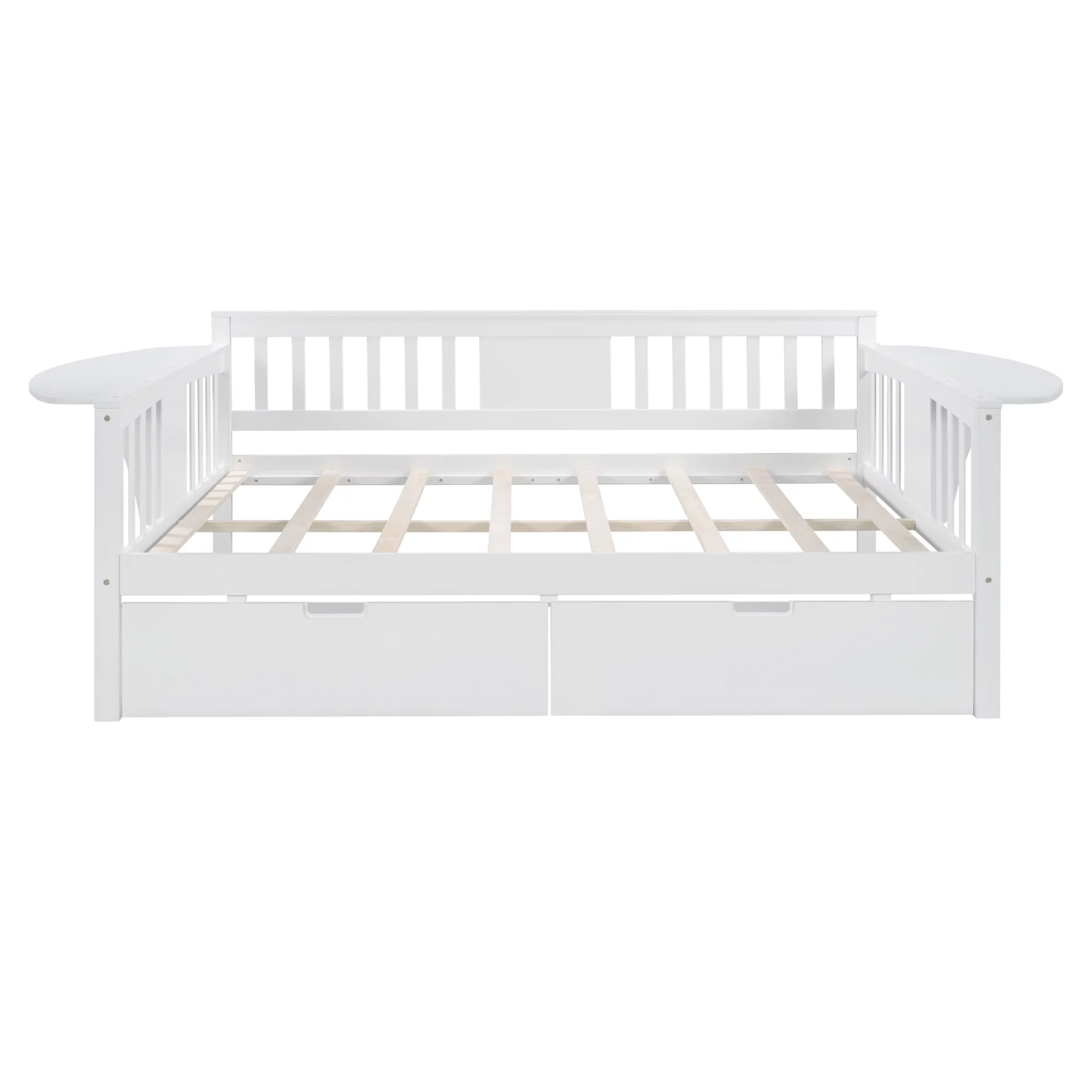 Full Size Daybed With Two Drawers Wood Slat Support White (Full+Drawers)