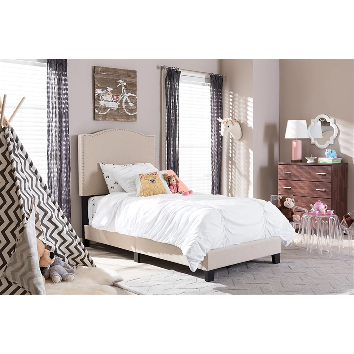 Baxton Studio Benjamin Modern And Contemporary Upholstered Arched Platform Bed With Nail Heads-Color:Grey
