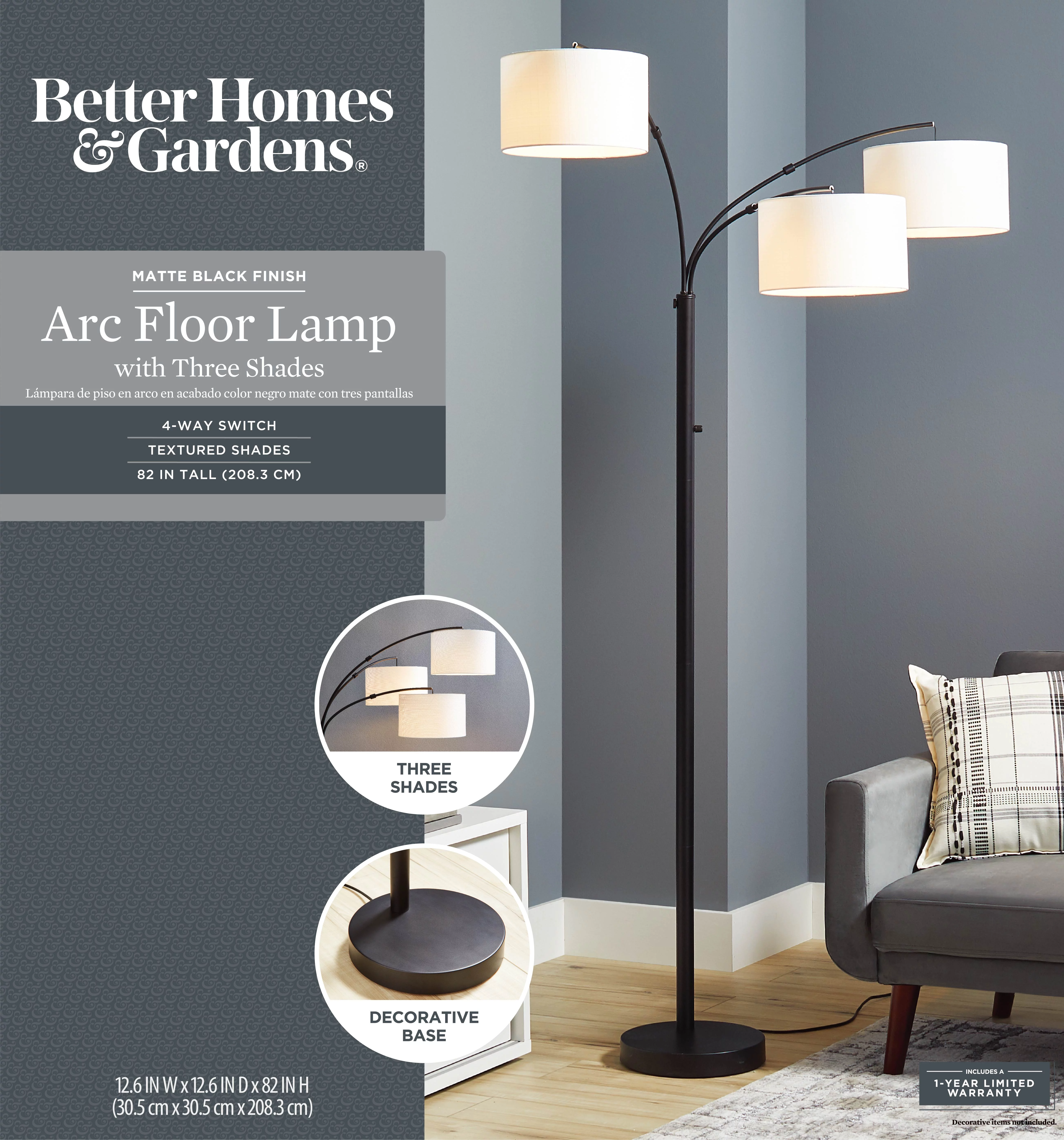Better Homes & Gardens Matte Black 3 Head Arc Floor Lamp, Modern, Adult Office, Young Adult Dorm