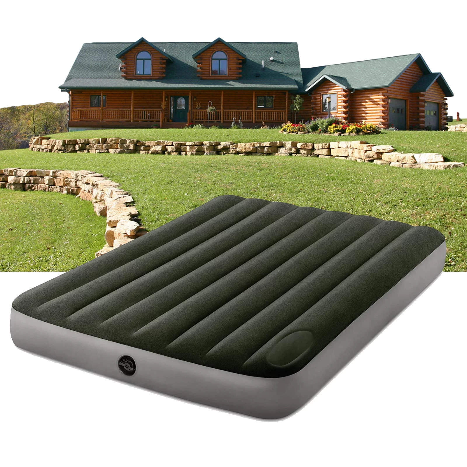 SereneLife Full Size Inflatable Airbed Flocked Mattress w/ Internal Pump(2 Pack)