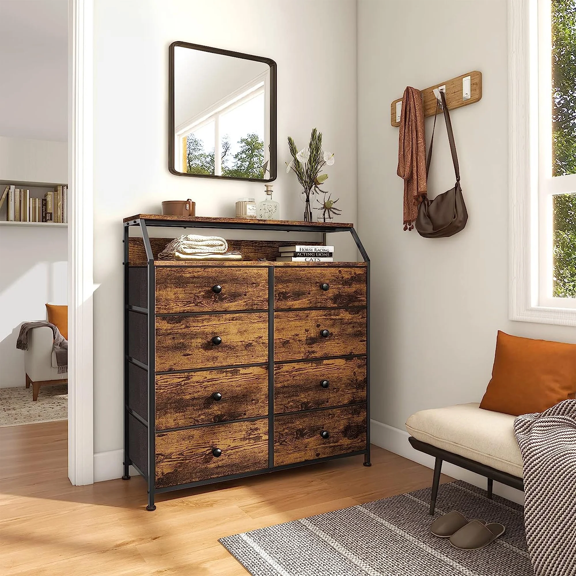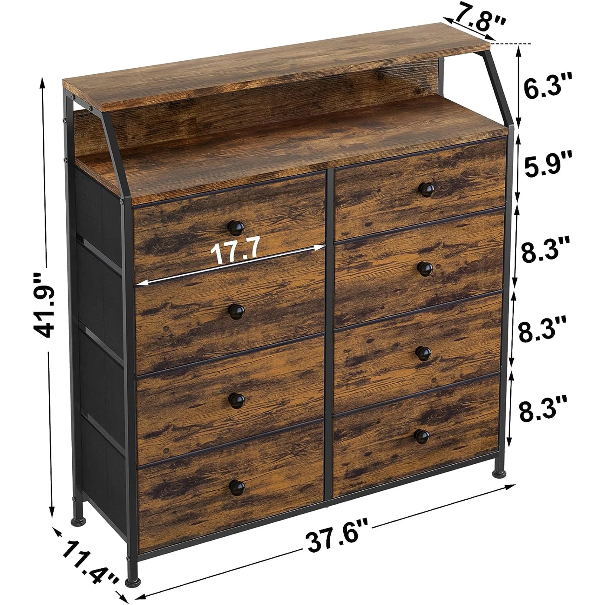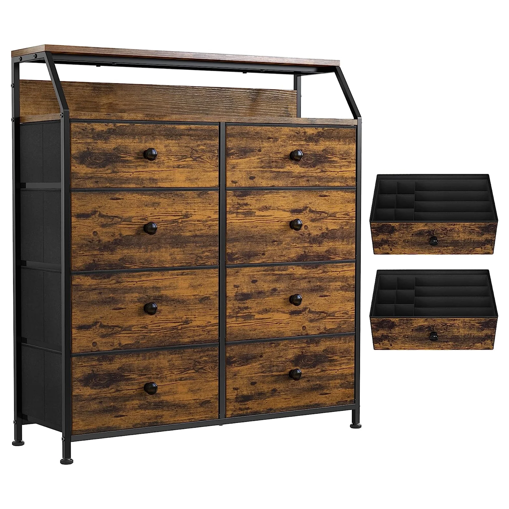 REAHOME 8 Drawer Wood Top Storage Dresser w/Drawer Organizers, Rustic Brown