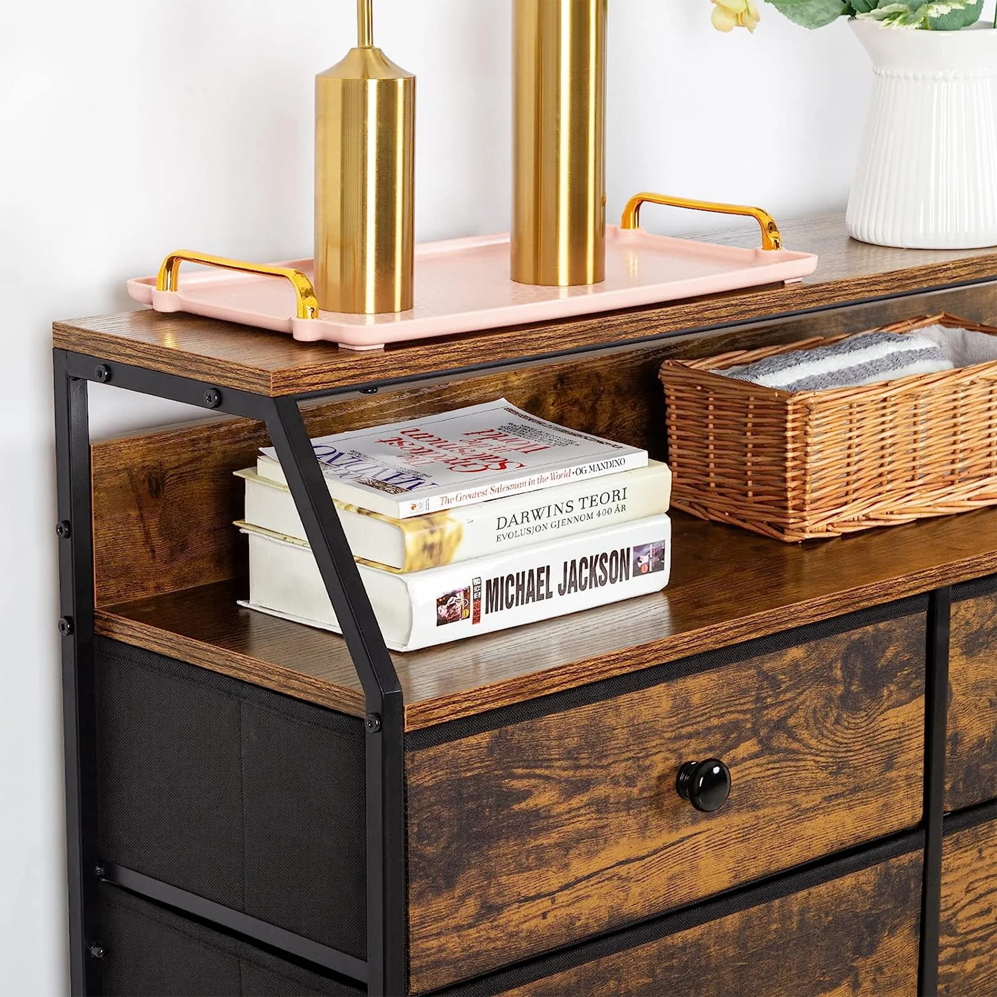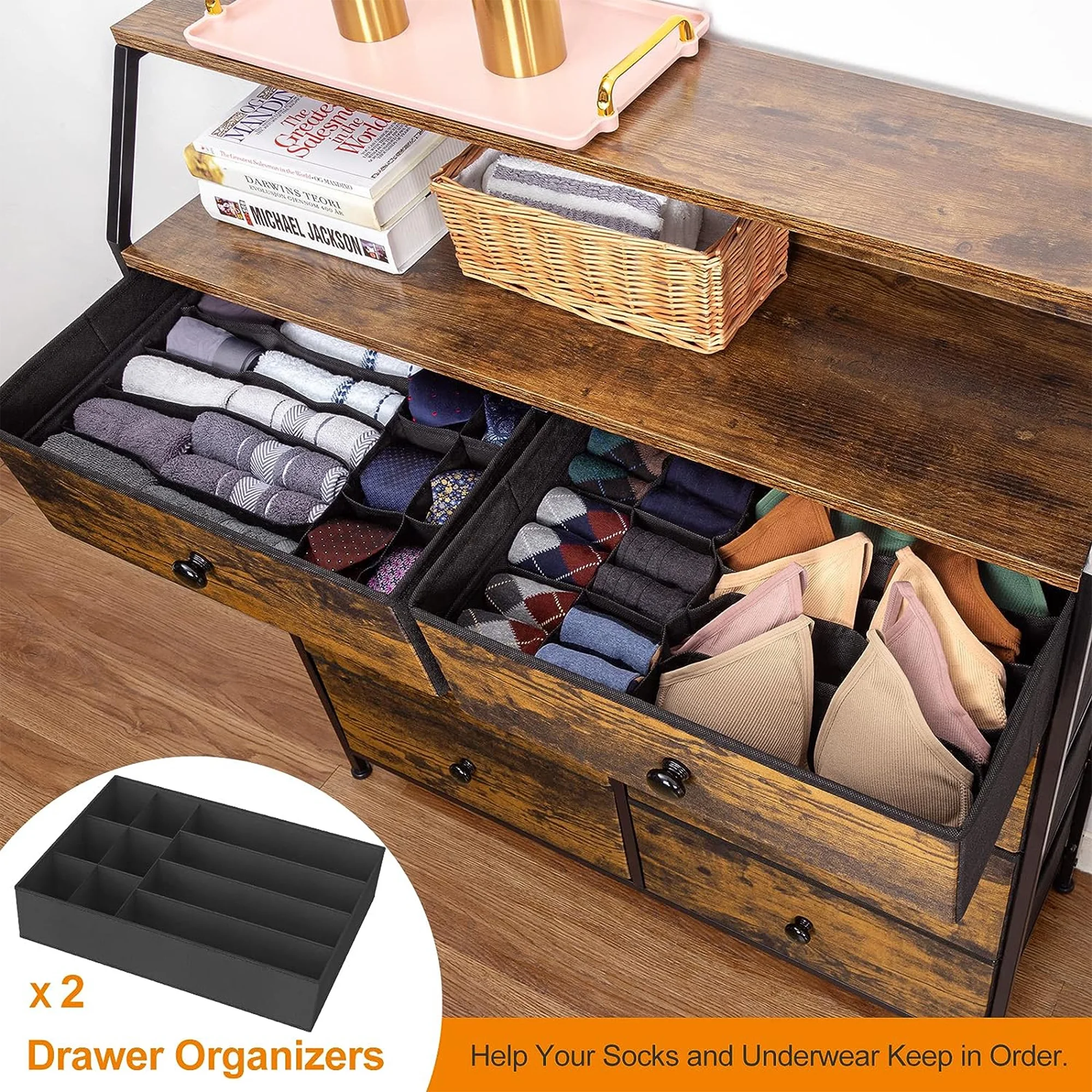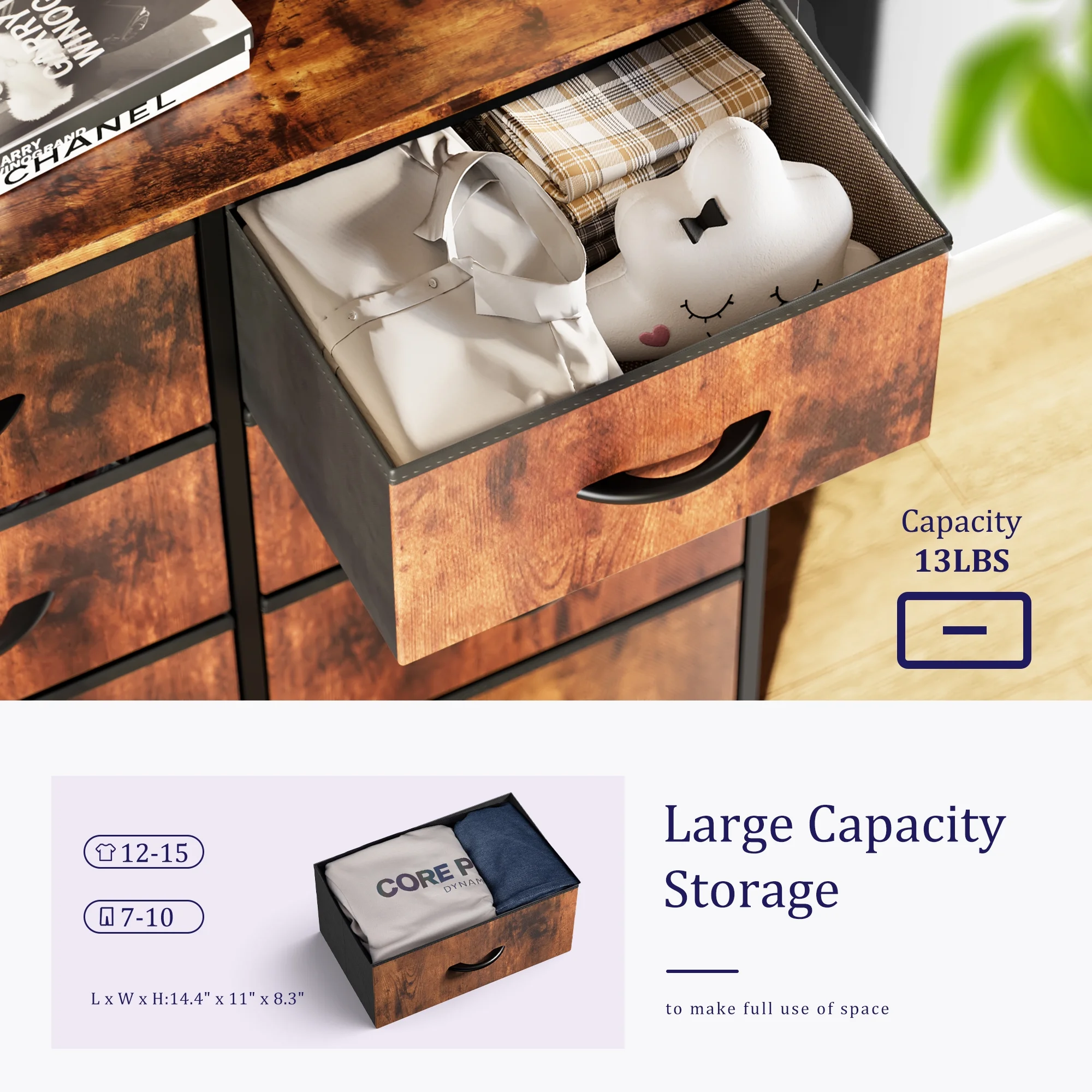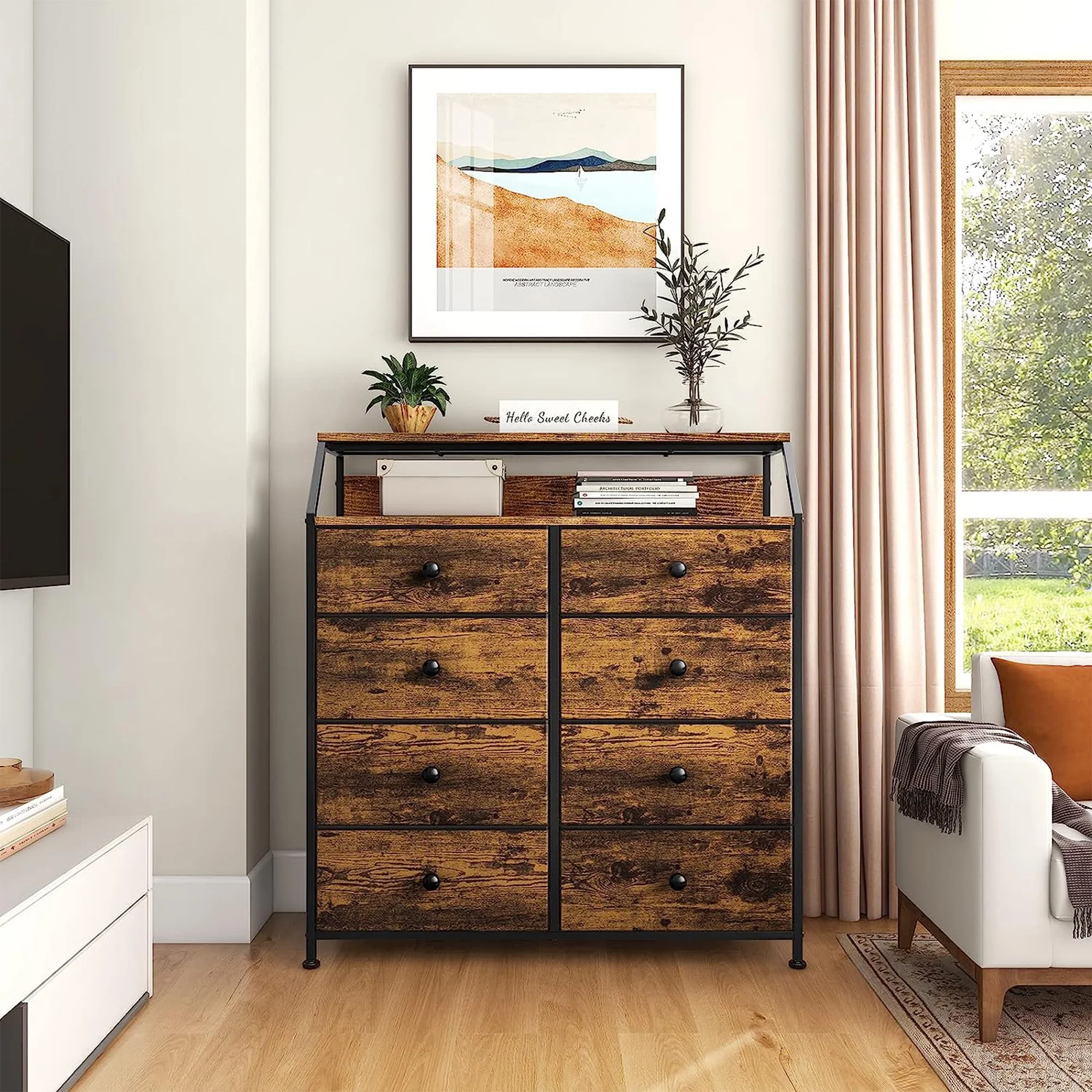 REAHOME 8 Drawer Wood Top Storage Dresser w/Drawer Organizers, Rustic Brown