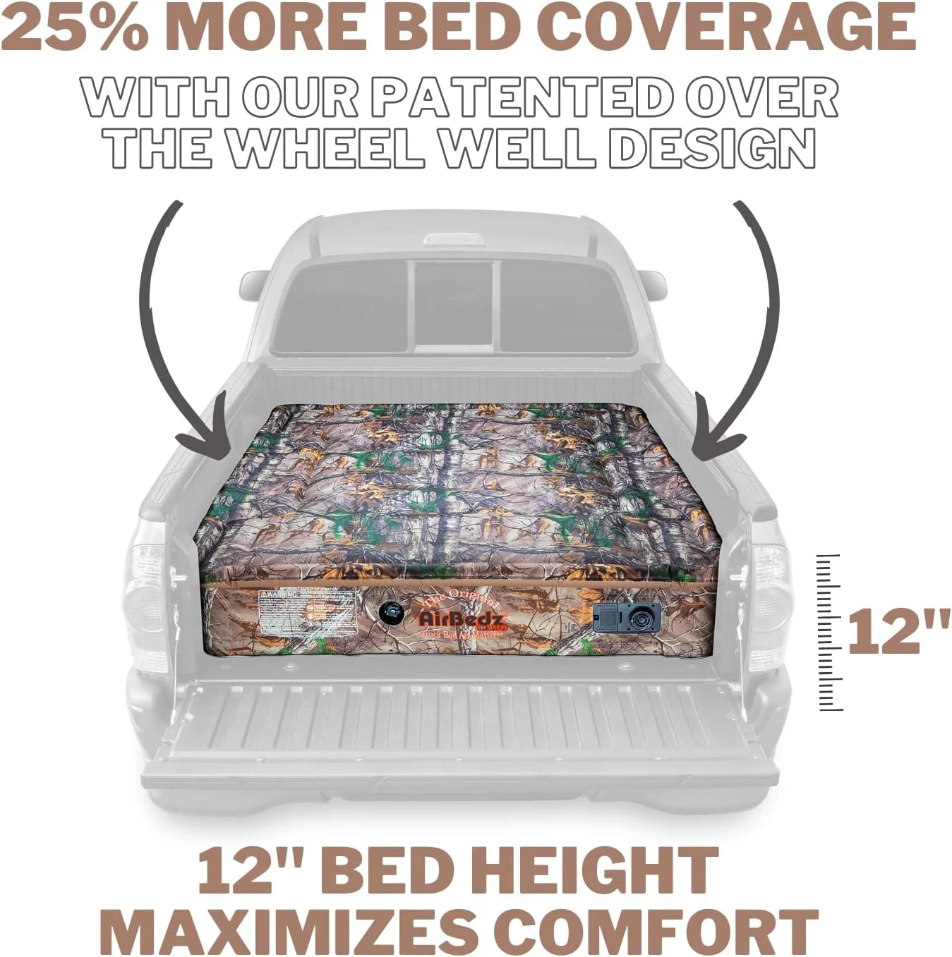 Airbedz Realtree Camo PPI 402 Full Size 6'-6.5' Short Bed With Built-In Rechargeable Battery Air Pump, 1 Pack