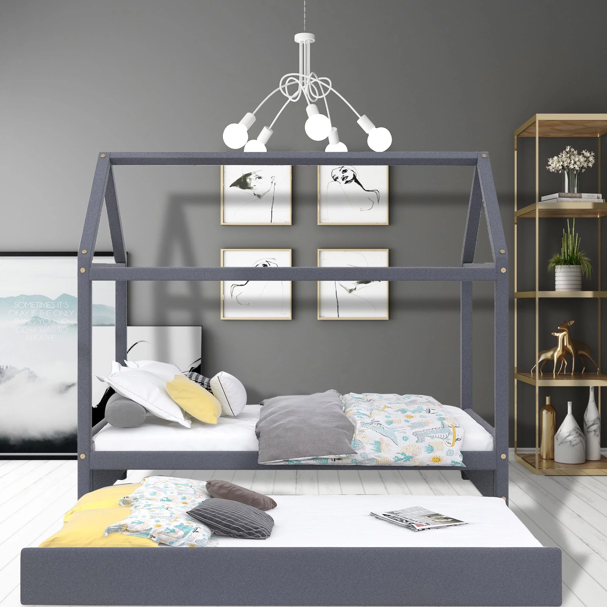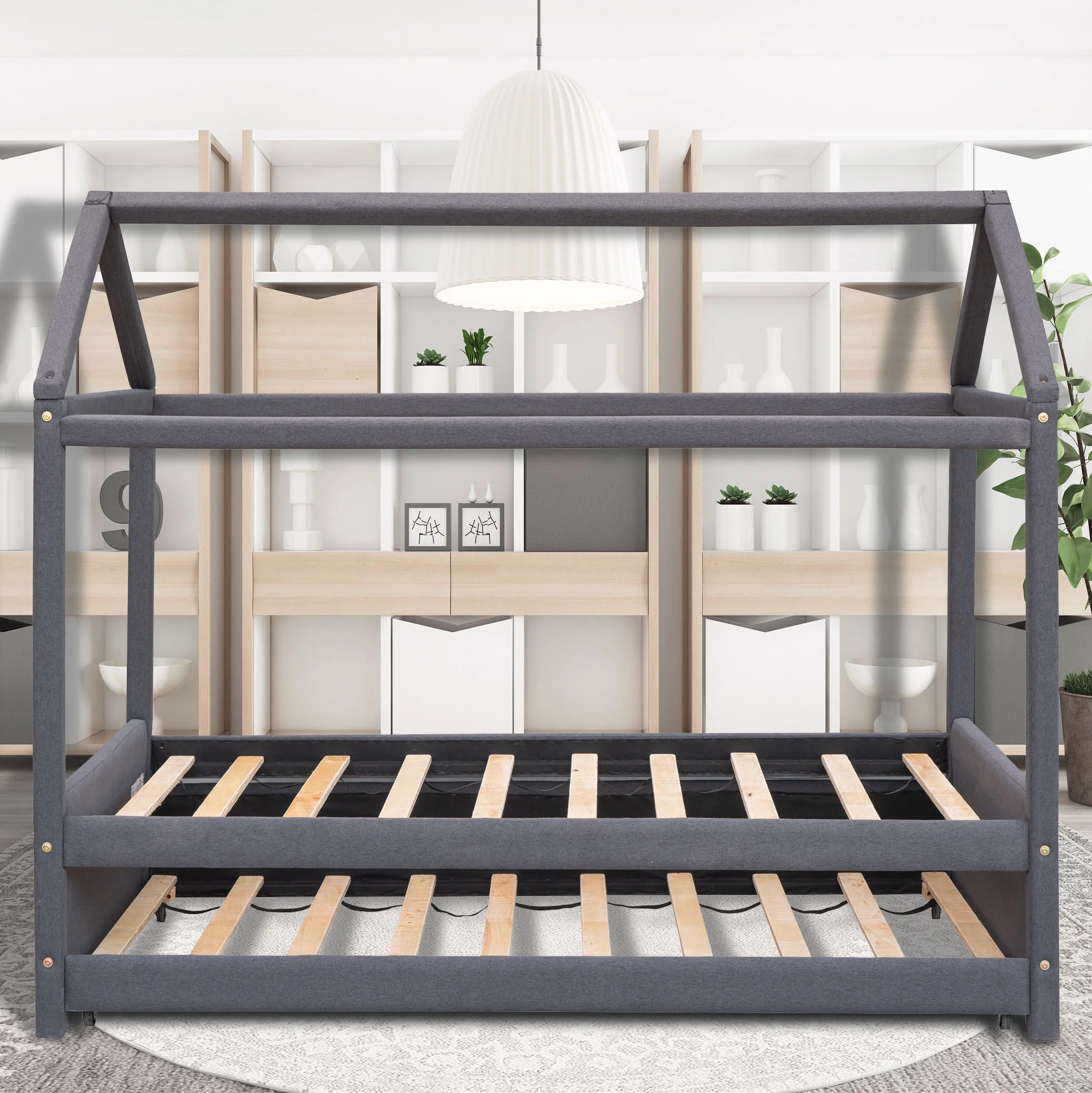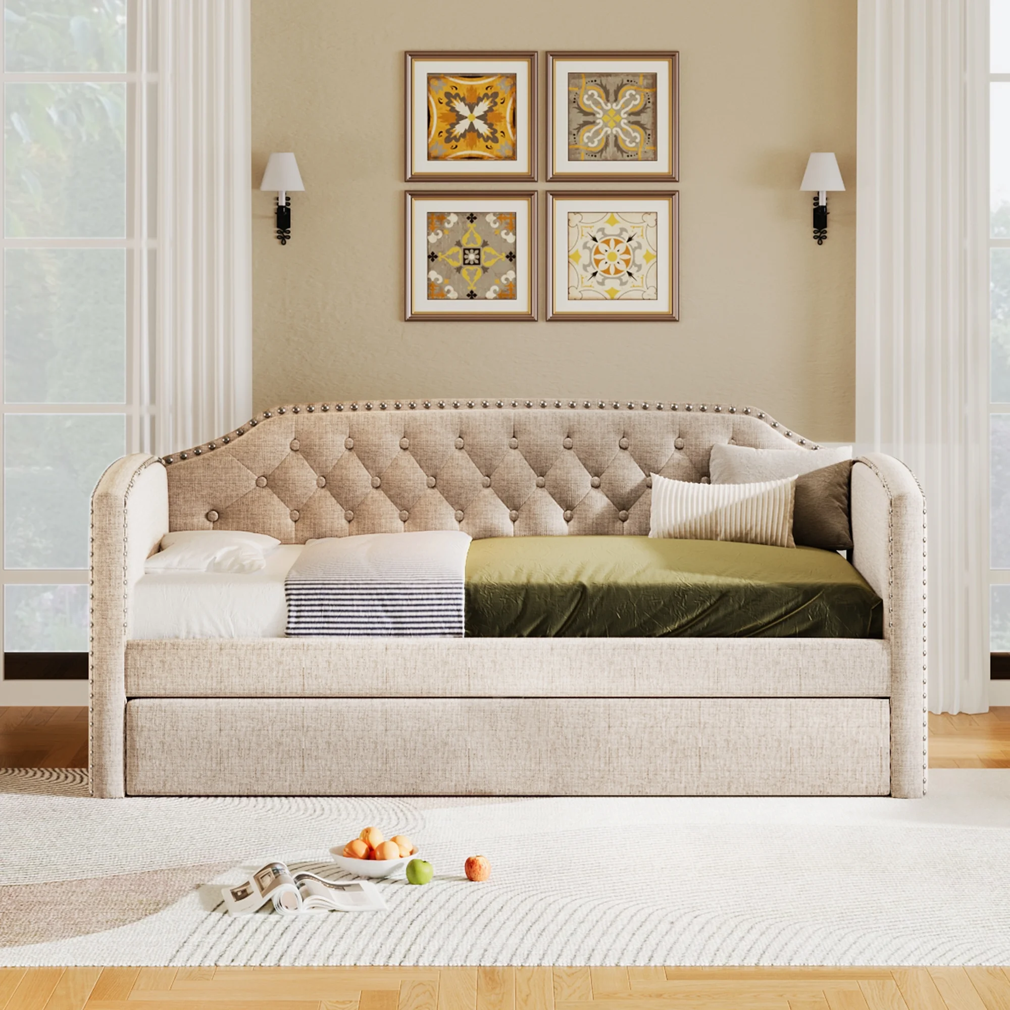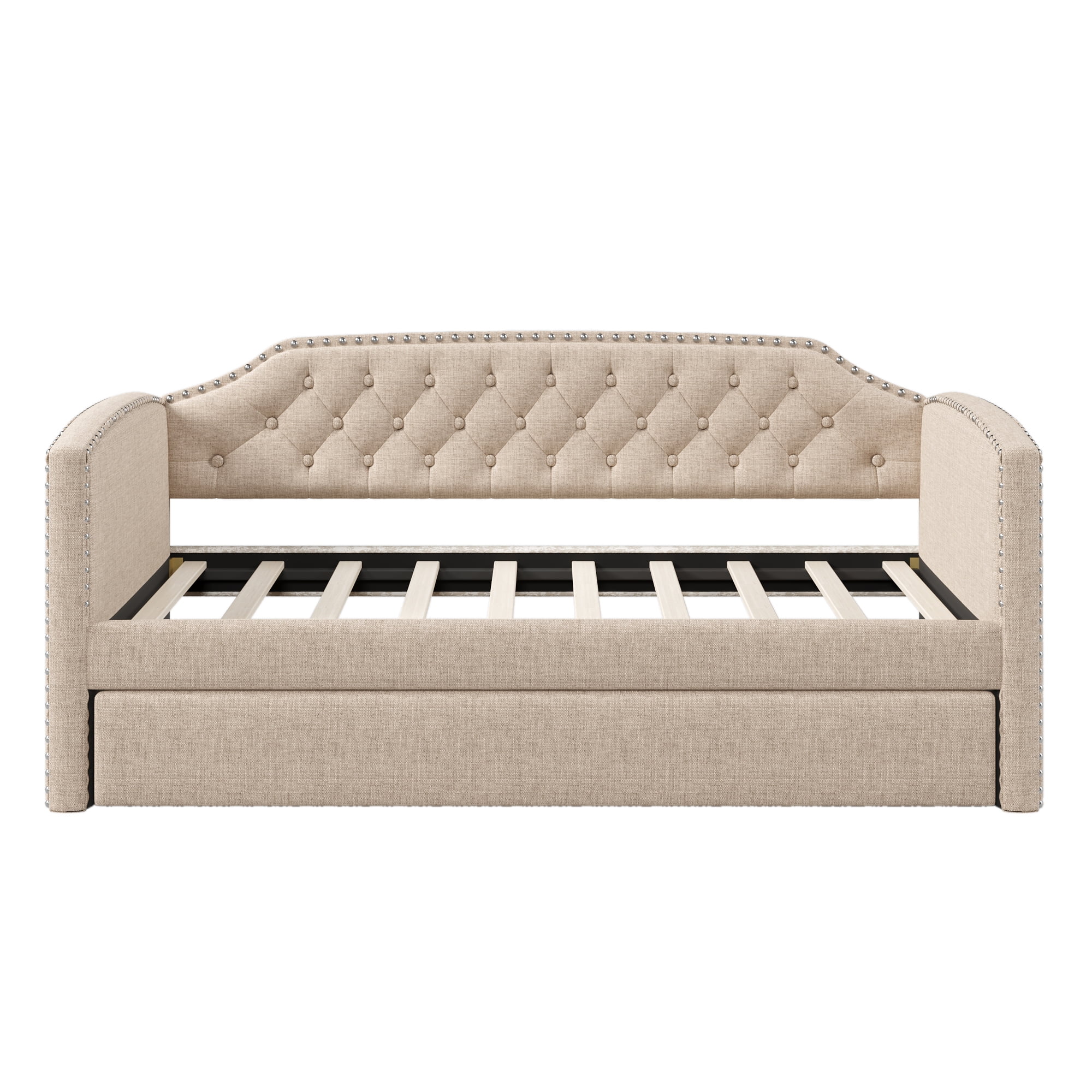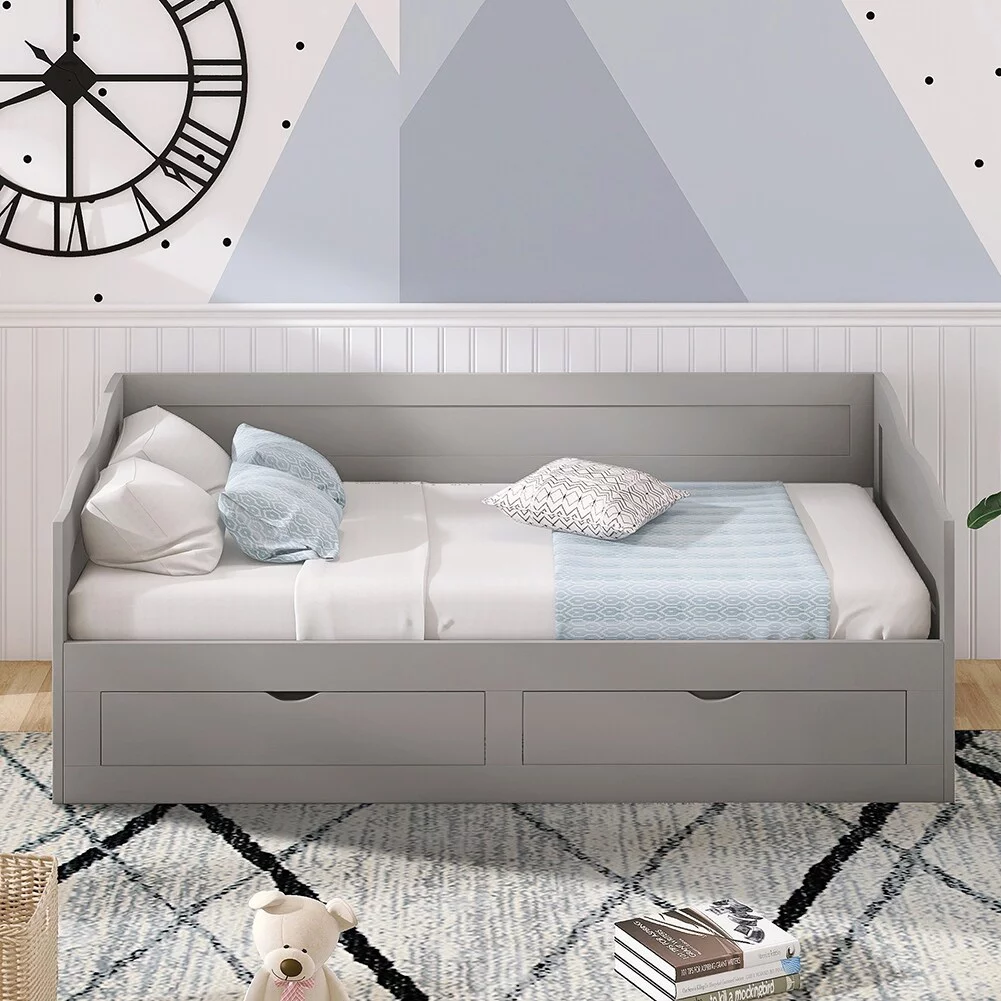 Daybed With Trundle Bed & 2 Storage Drawers, Wooden Extendable Bed, Sofa Bed For Bedroom Living Room,Espresso