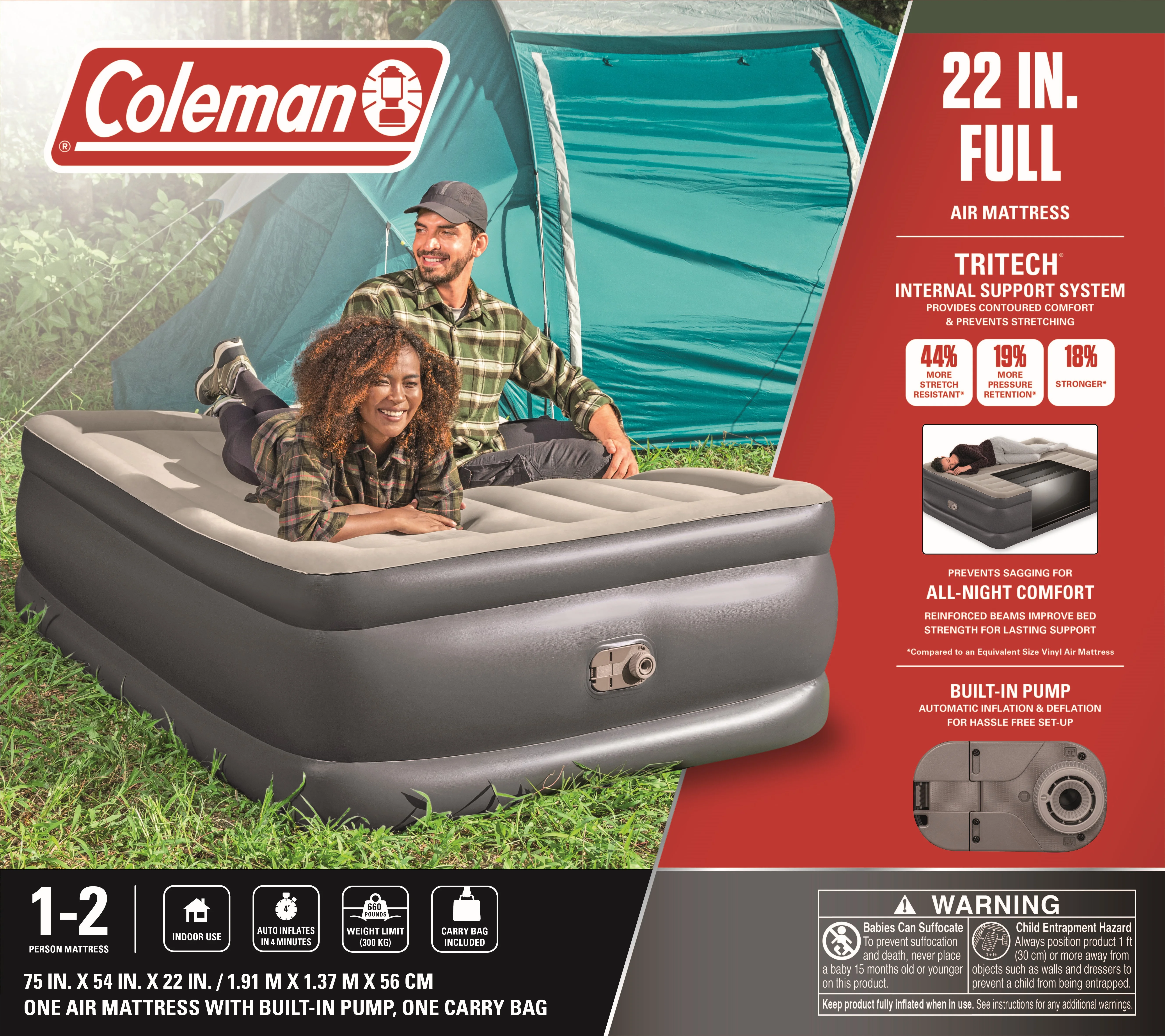 AirBedz AirBedz TAN PPI 501 Full Size 8.0' Long Bed with Built-In Rechargeable Battery Air Pump