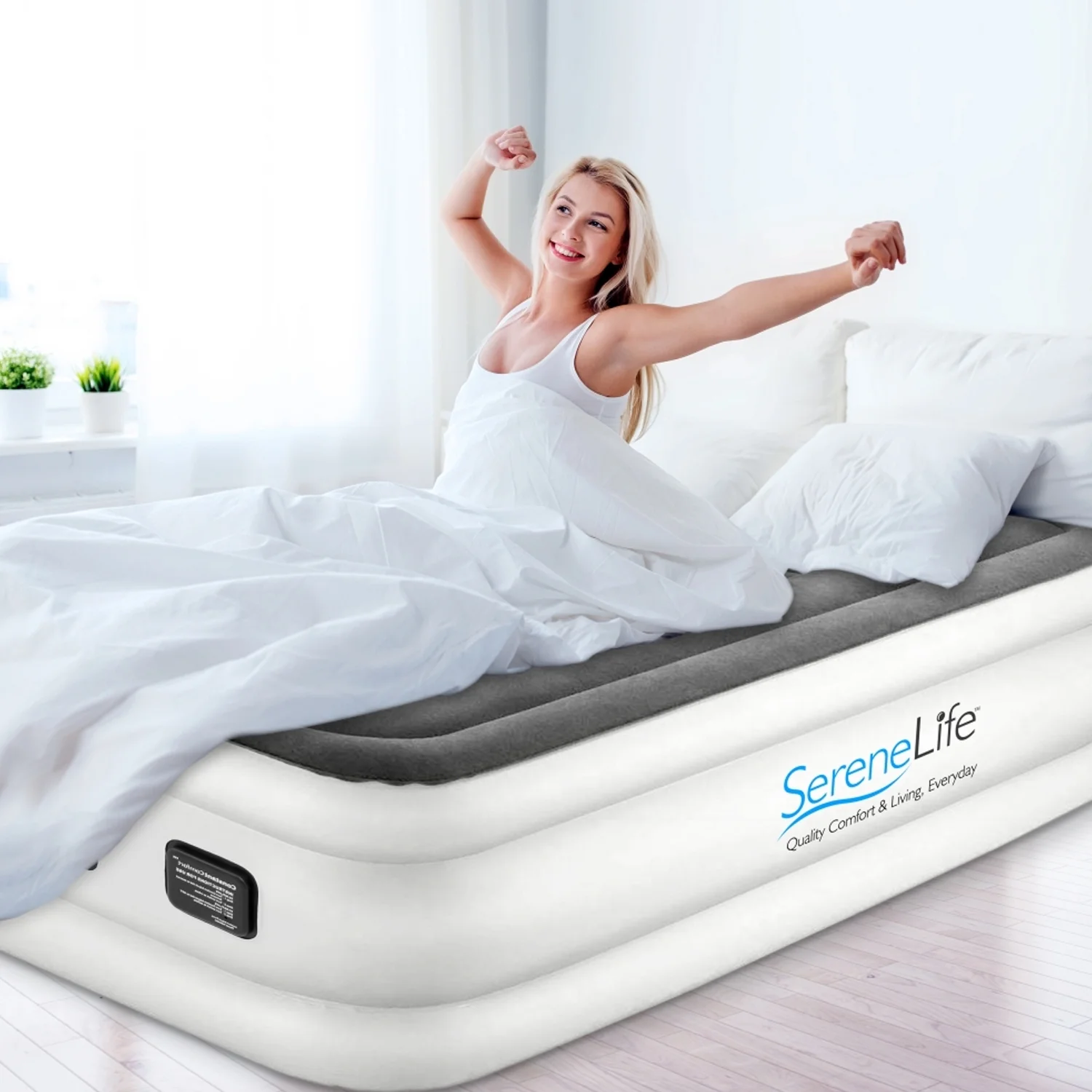 SereneLife Full Size Inflatable Premium Airbed Flocked Mattress w/ Internal Pump