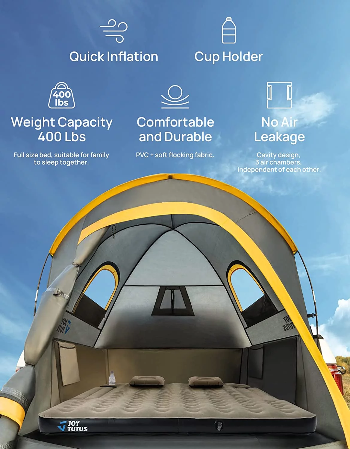 SKYSHALO Truck Bed Air Mattress 5.5-5.8 ft Full-Size Short Bed Inflatable with Pump