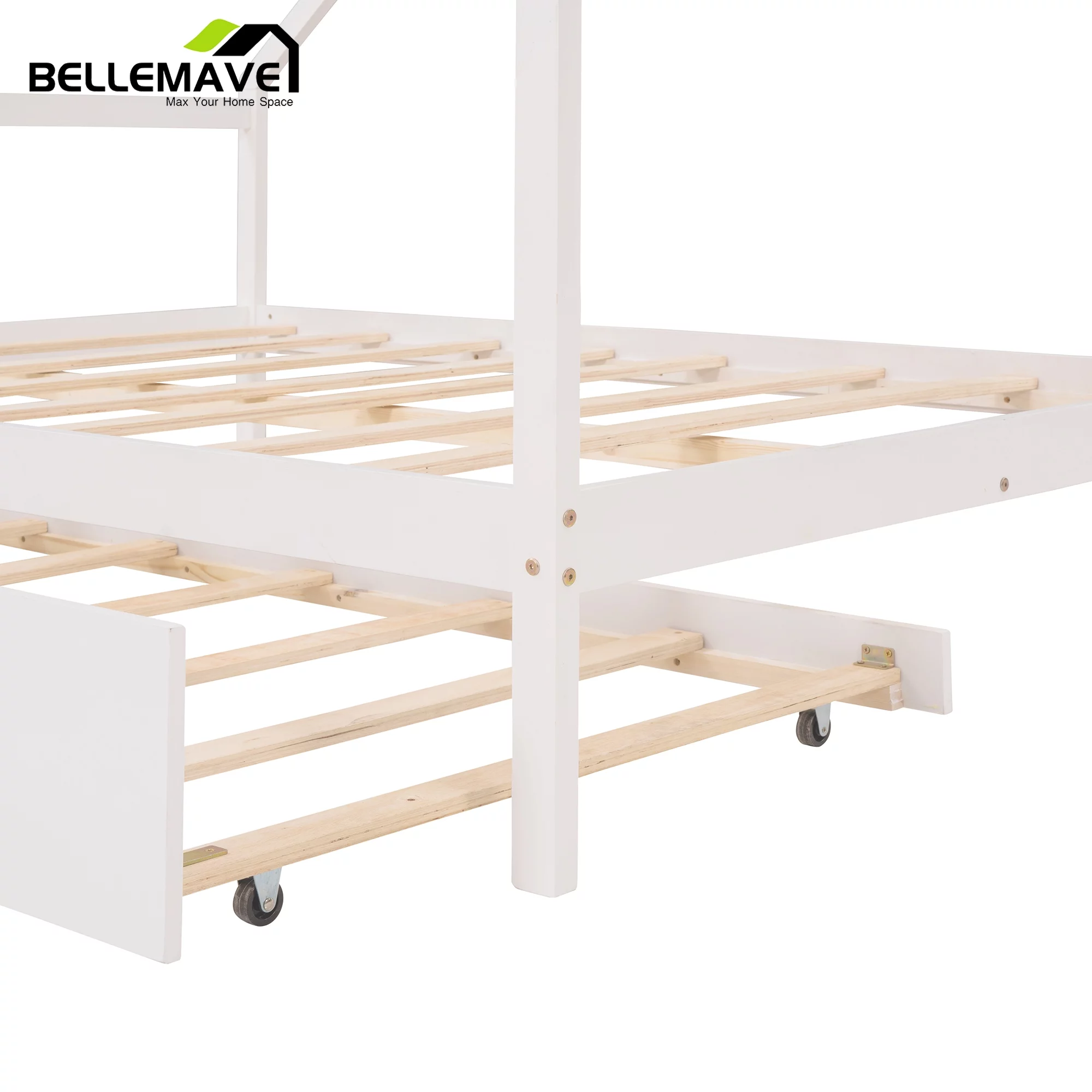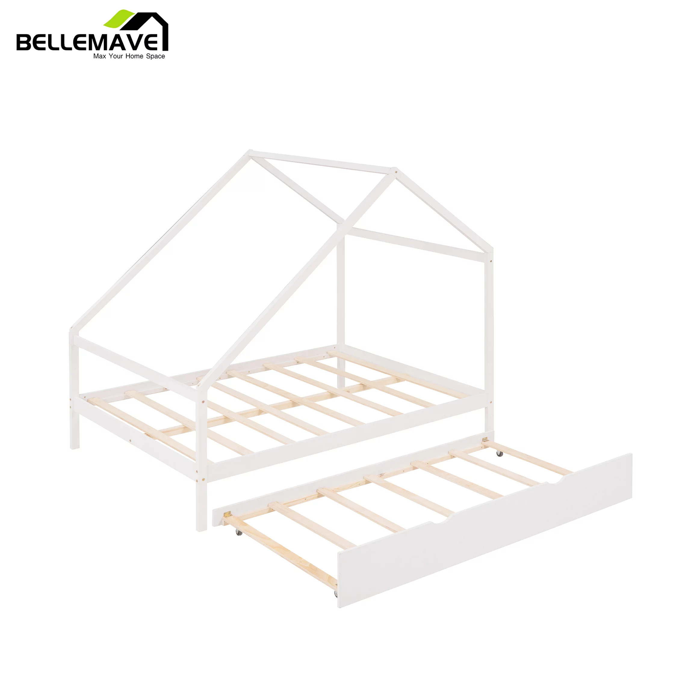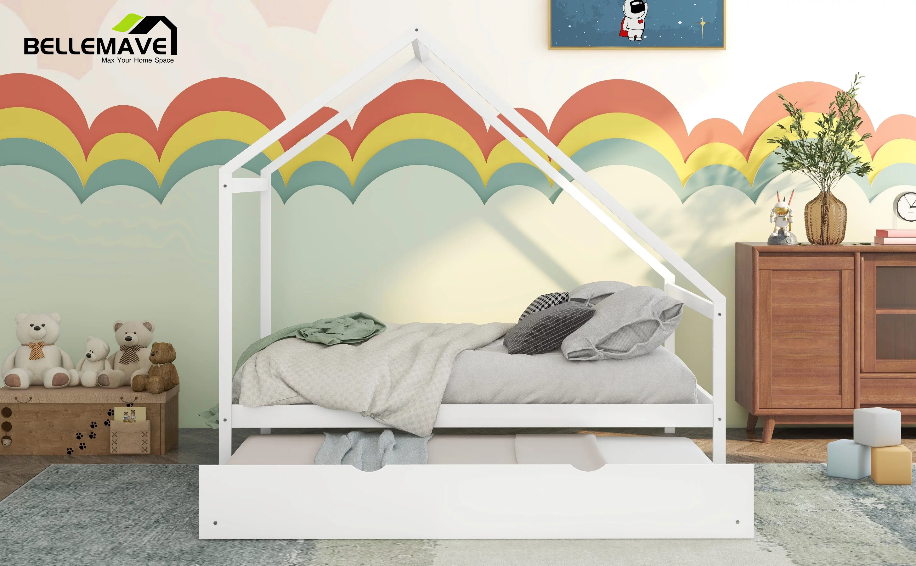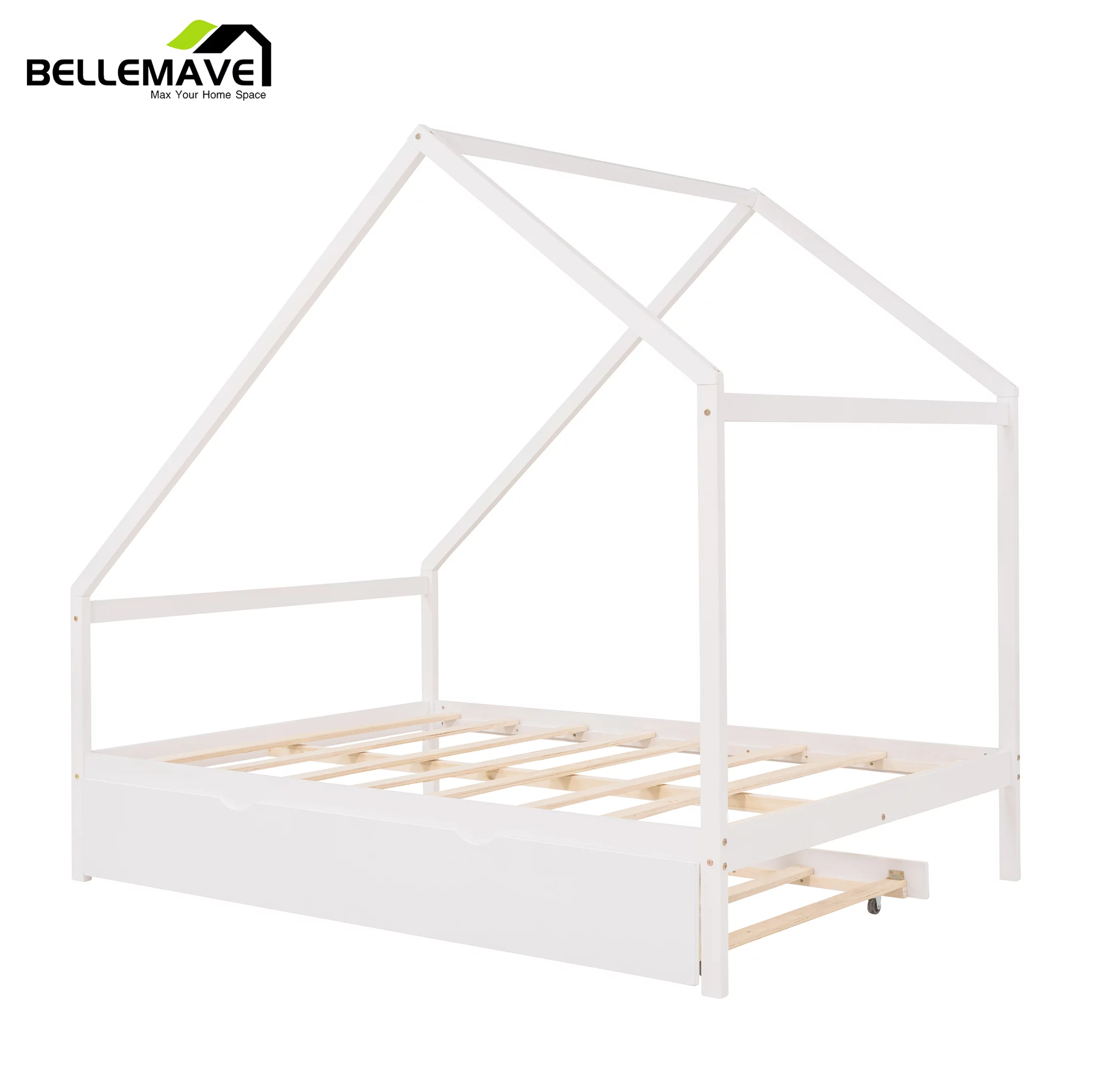 CoSoTower Full Size Wooden House Bed With Trundle And 3 Storage Drawers-White
