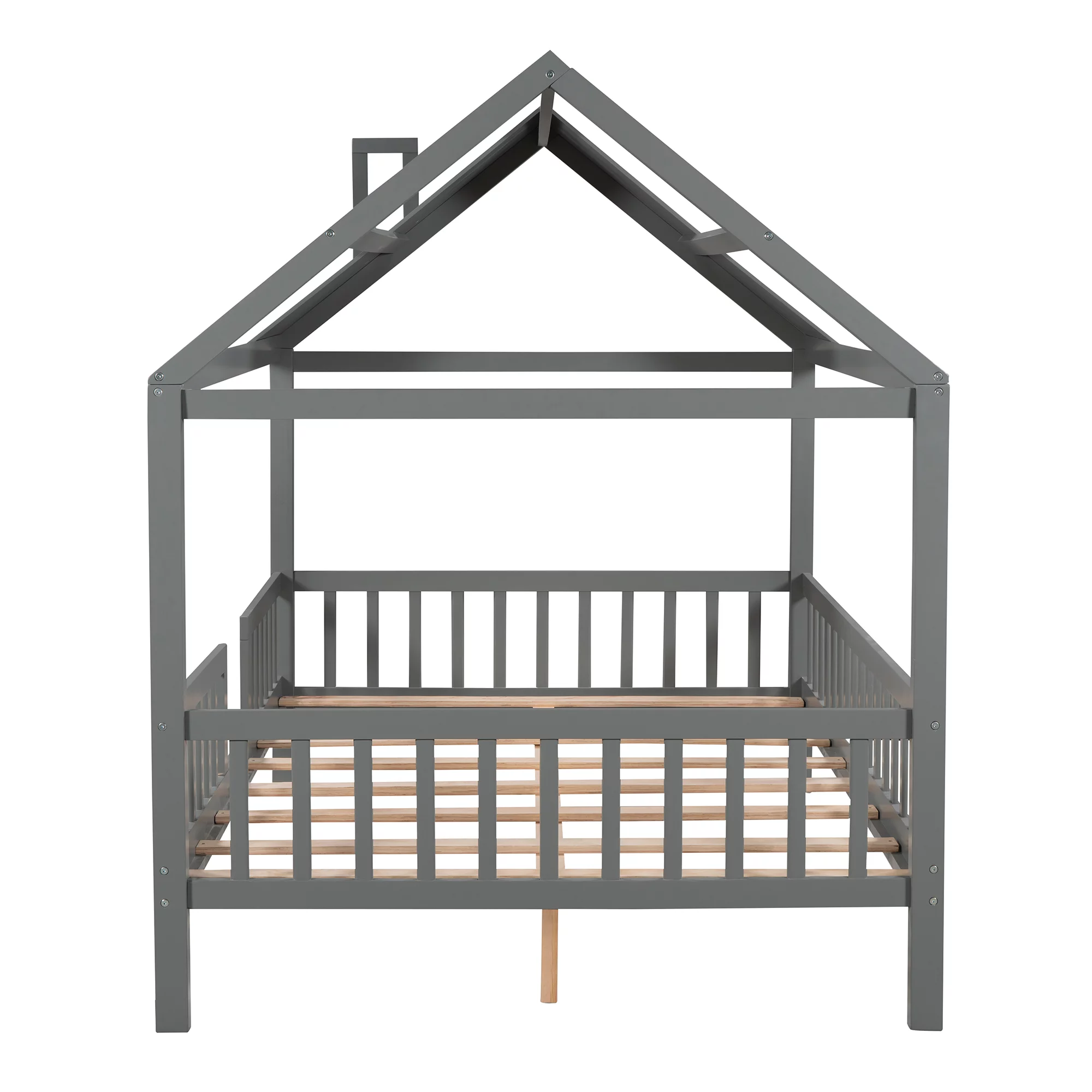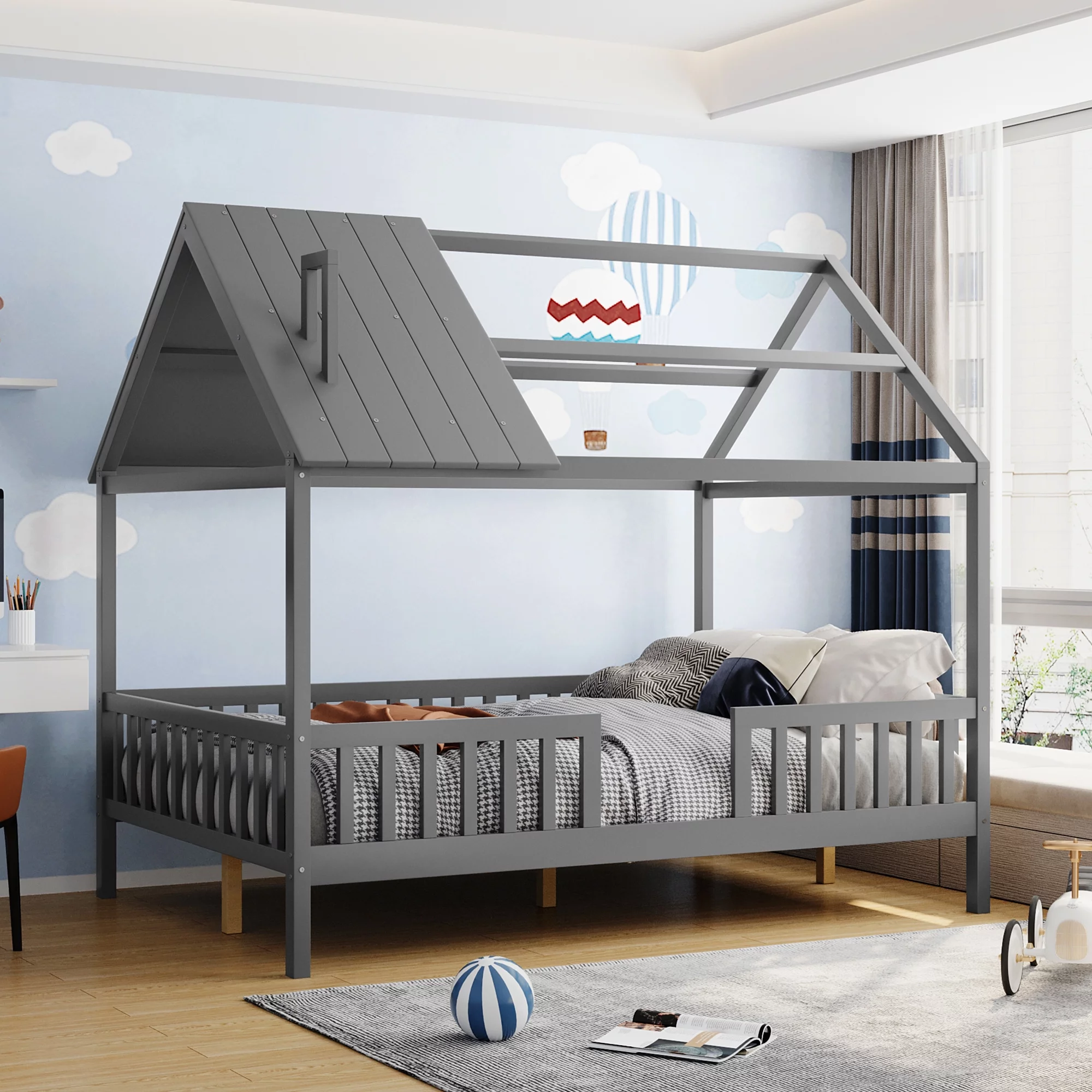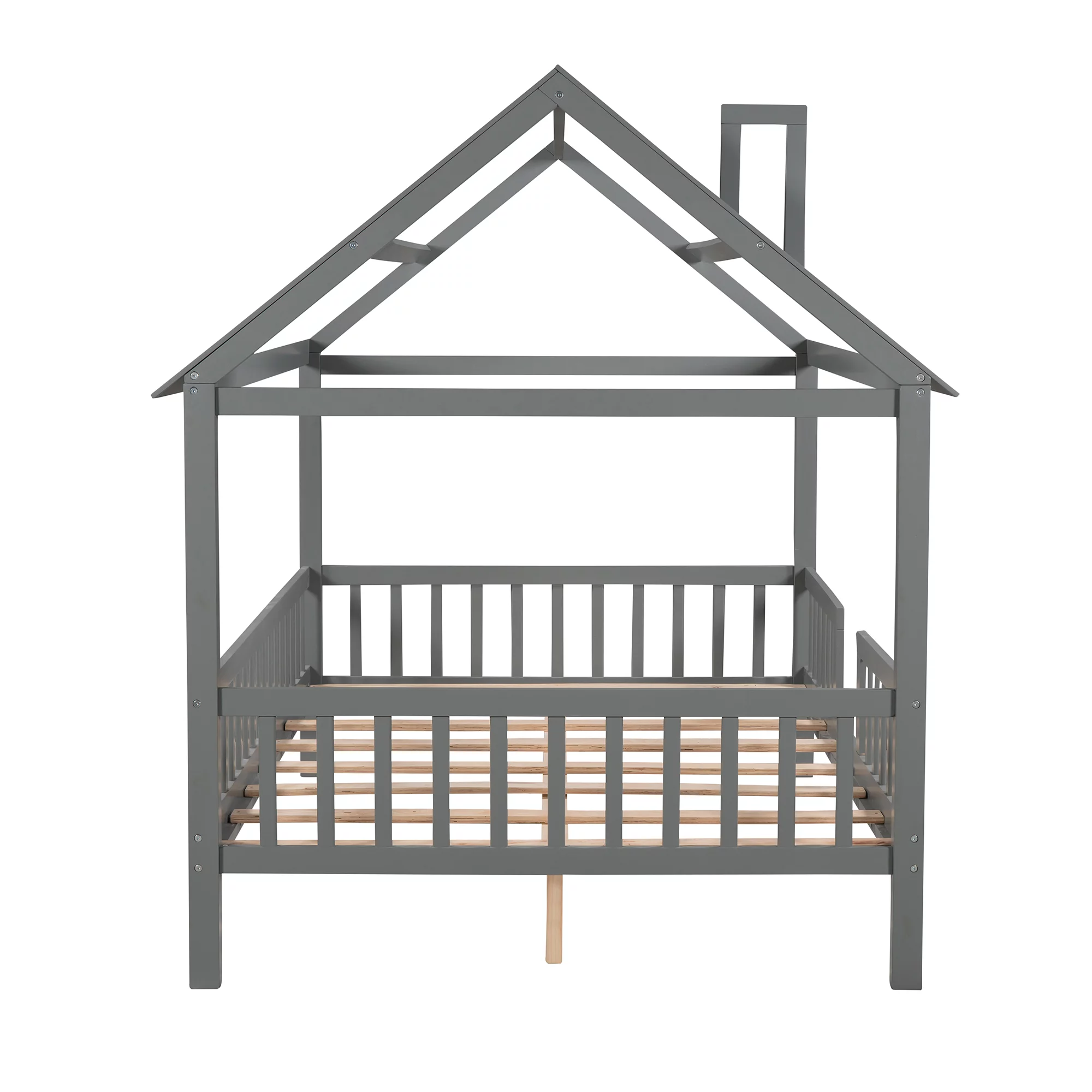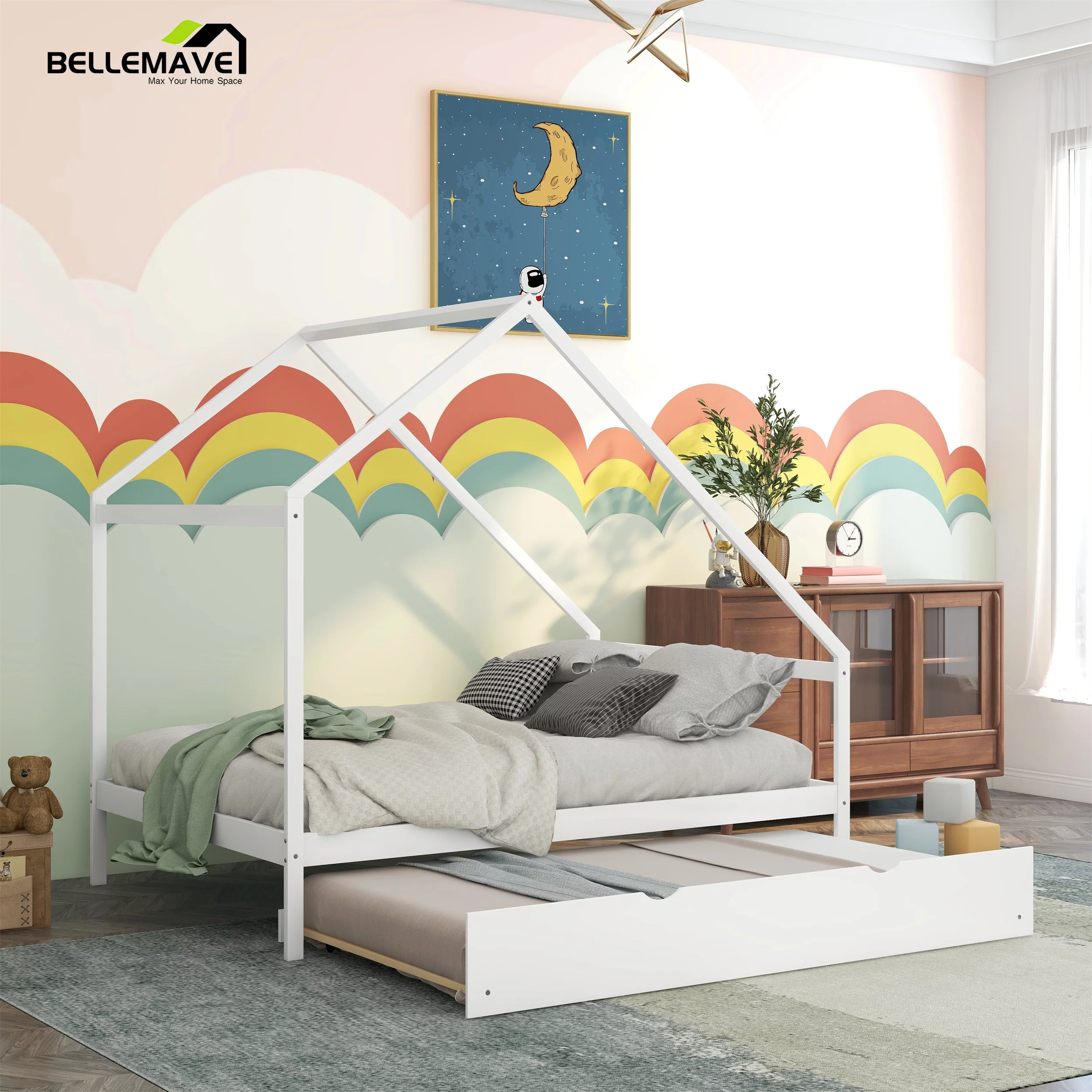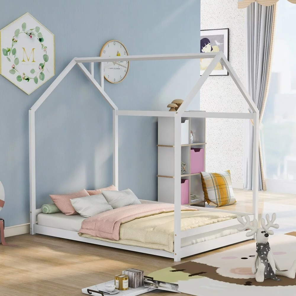 CoSoTower Full Size Wooden House Bed With Trundle And 3 Storage Drawers-White