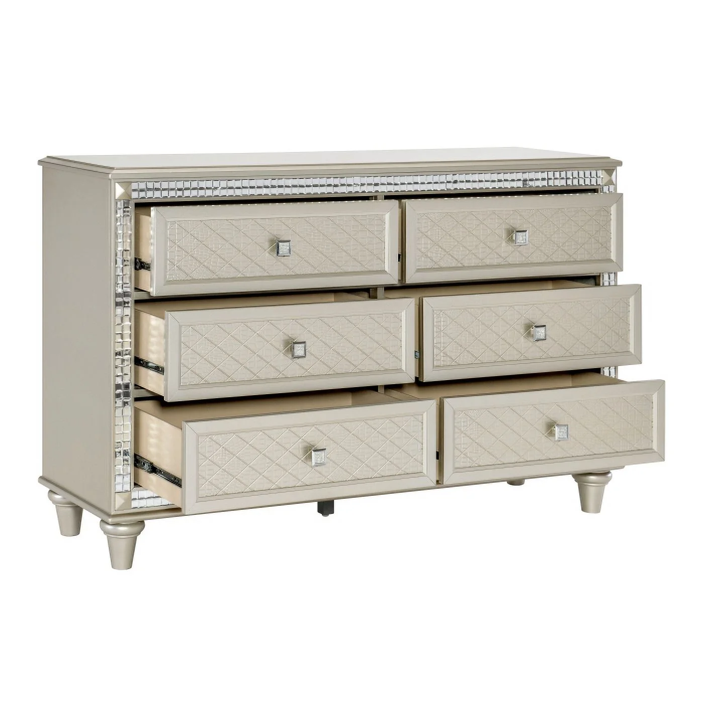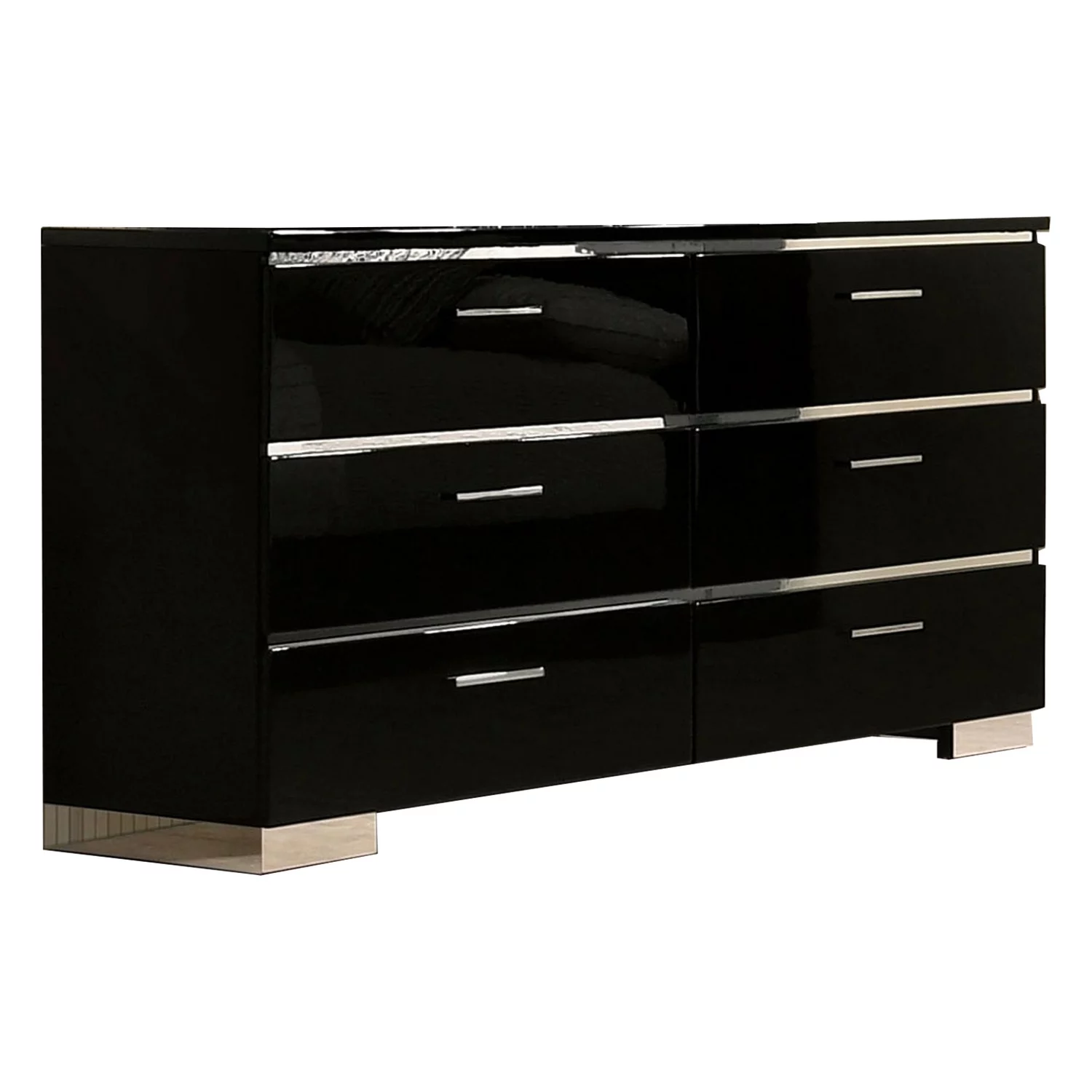 63 in. Reza 6 Drawers Metal Trim Felt Lined Modern Wood Dresser, Black & Chrome