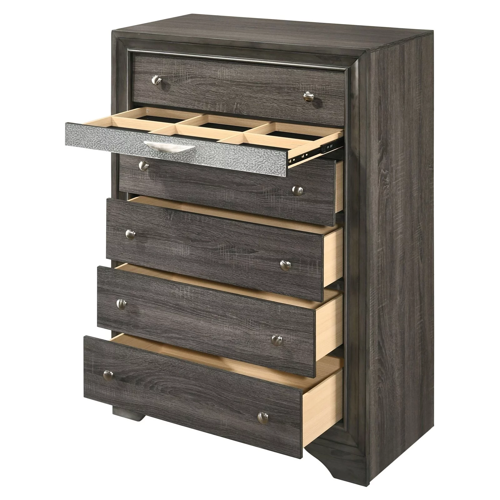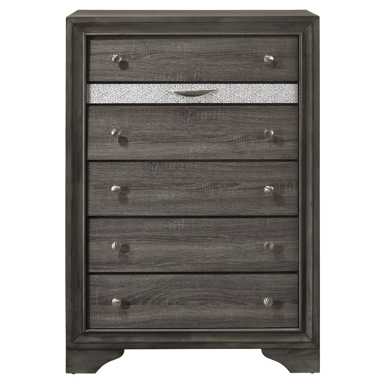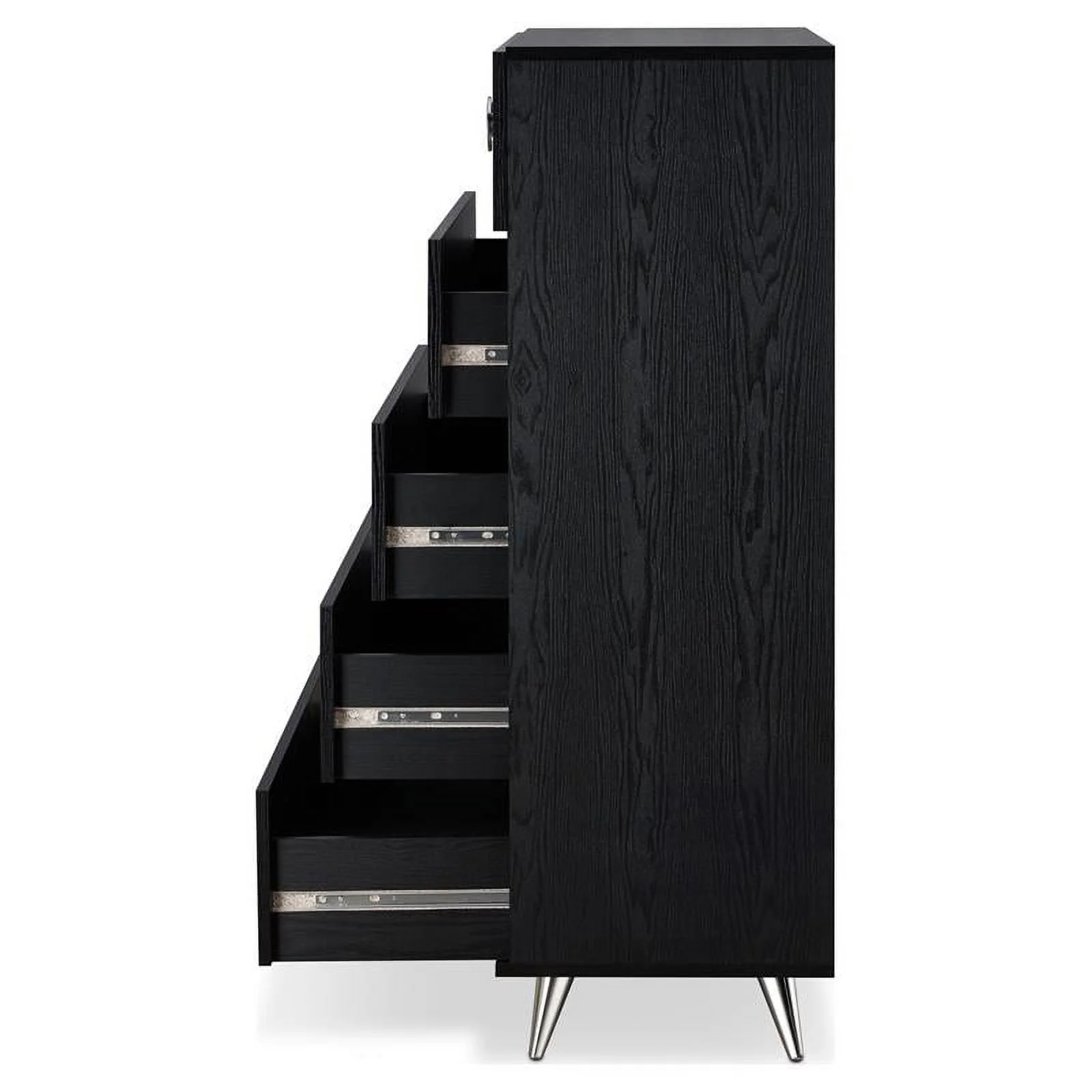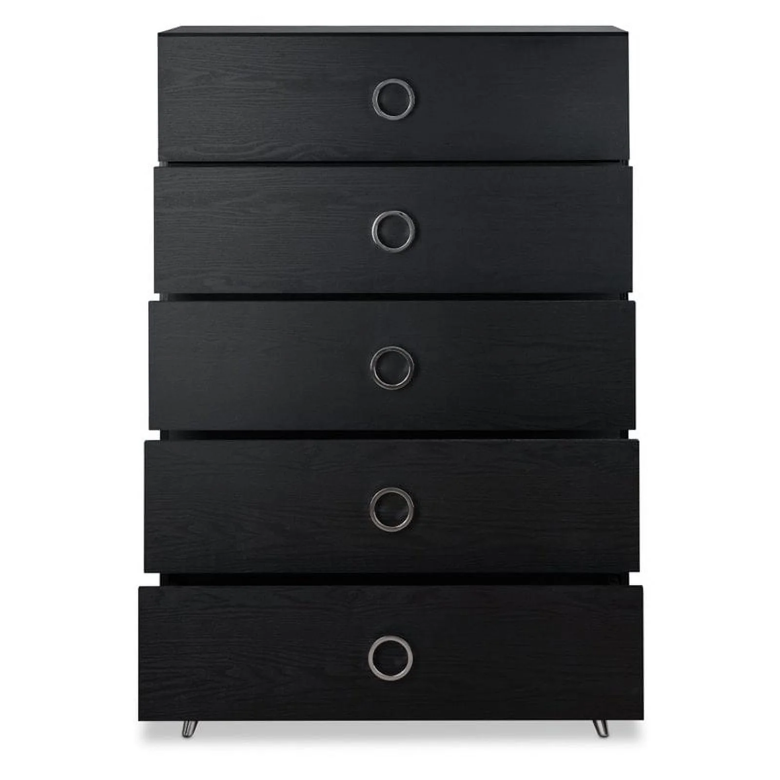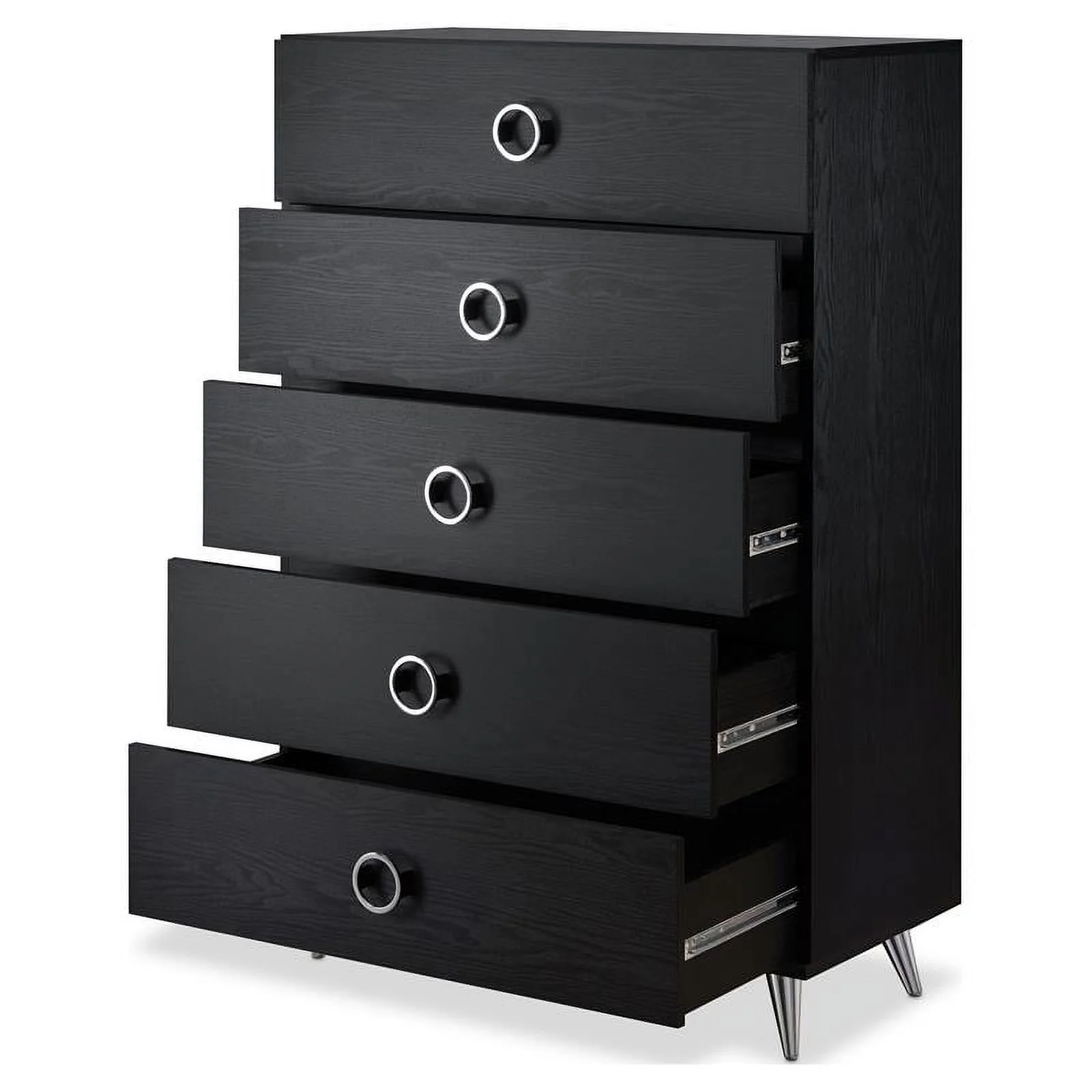 Bowery Hill Wooden Rectangular Chest with 5 Storage Drawers in Black and Chrome