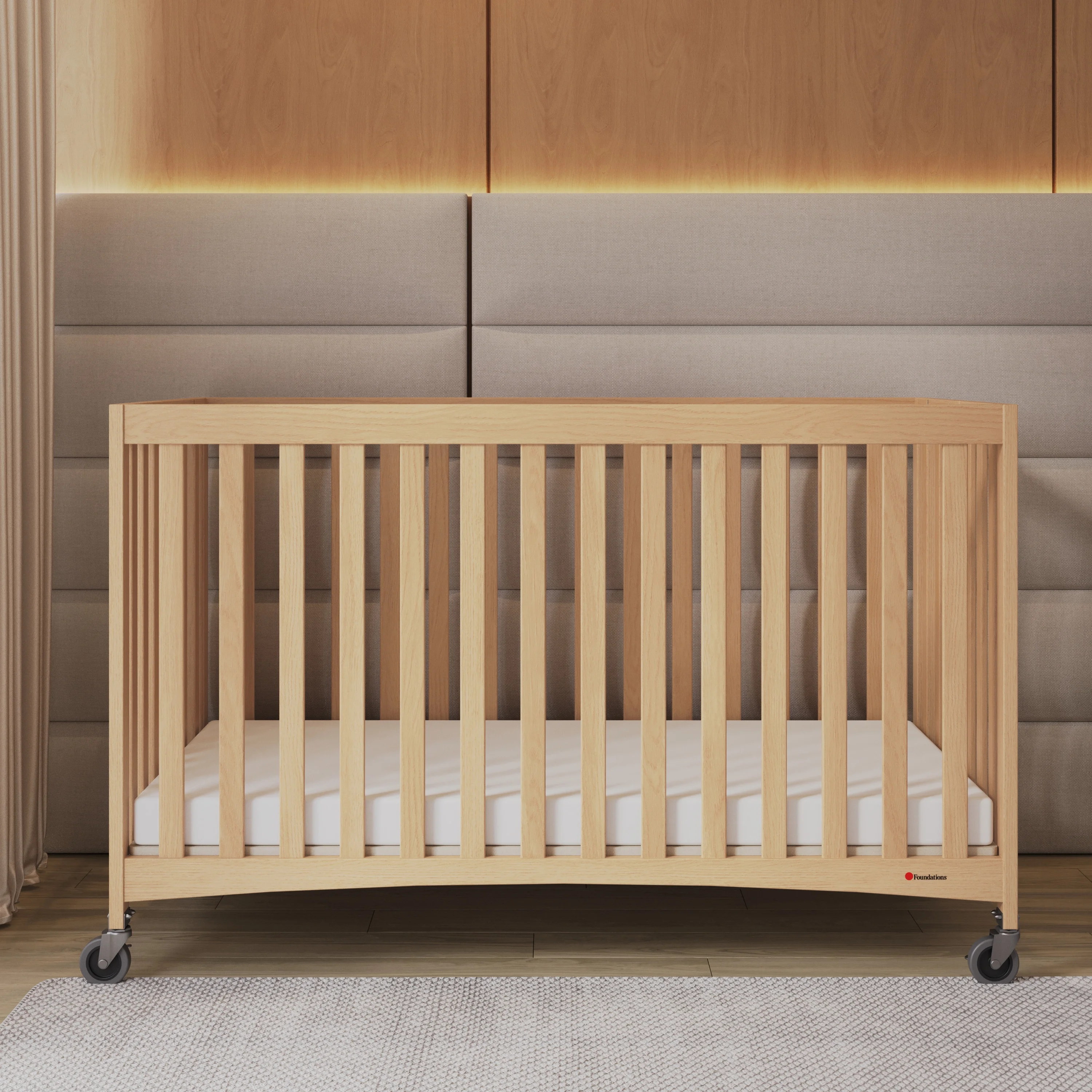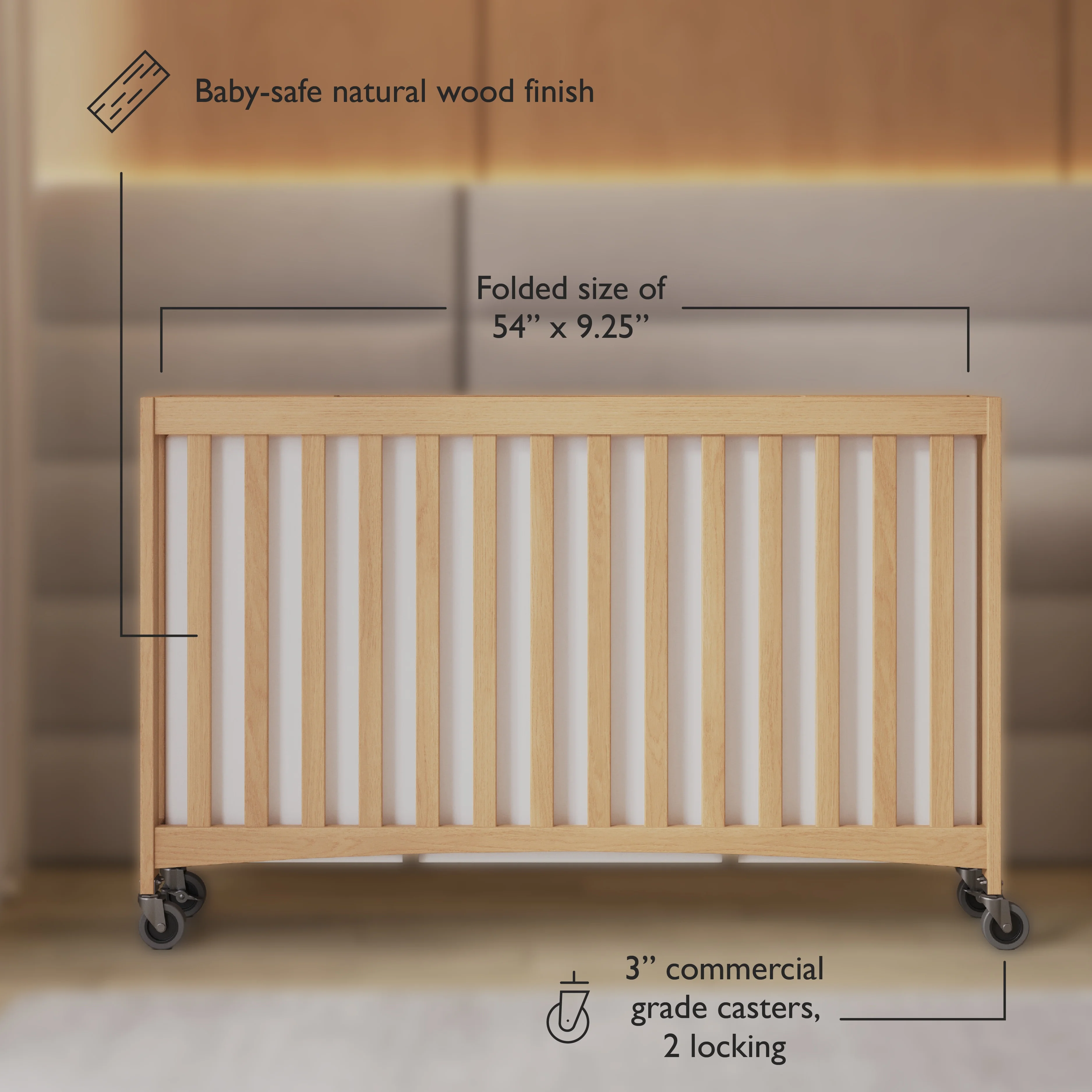 Travel Sleeper® Full-Size Folding Wood Crib w/ 3" Foam Mattress and Oversized Casters, Natural