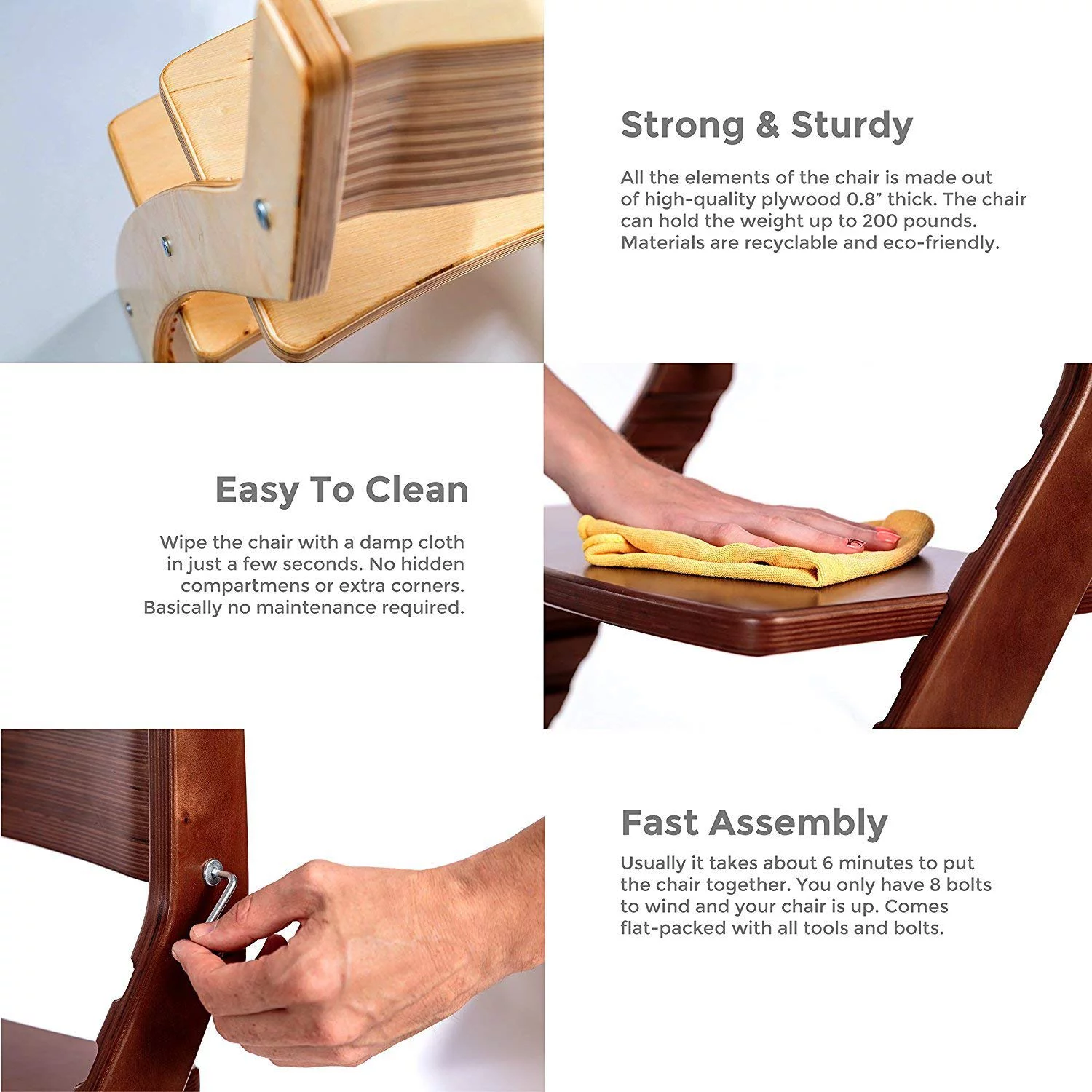 Fornel Heartwood Dark Walnut Adjustable Wooden High Chair for Babies and Toddlers Highchair