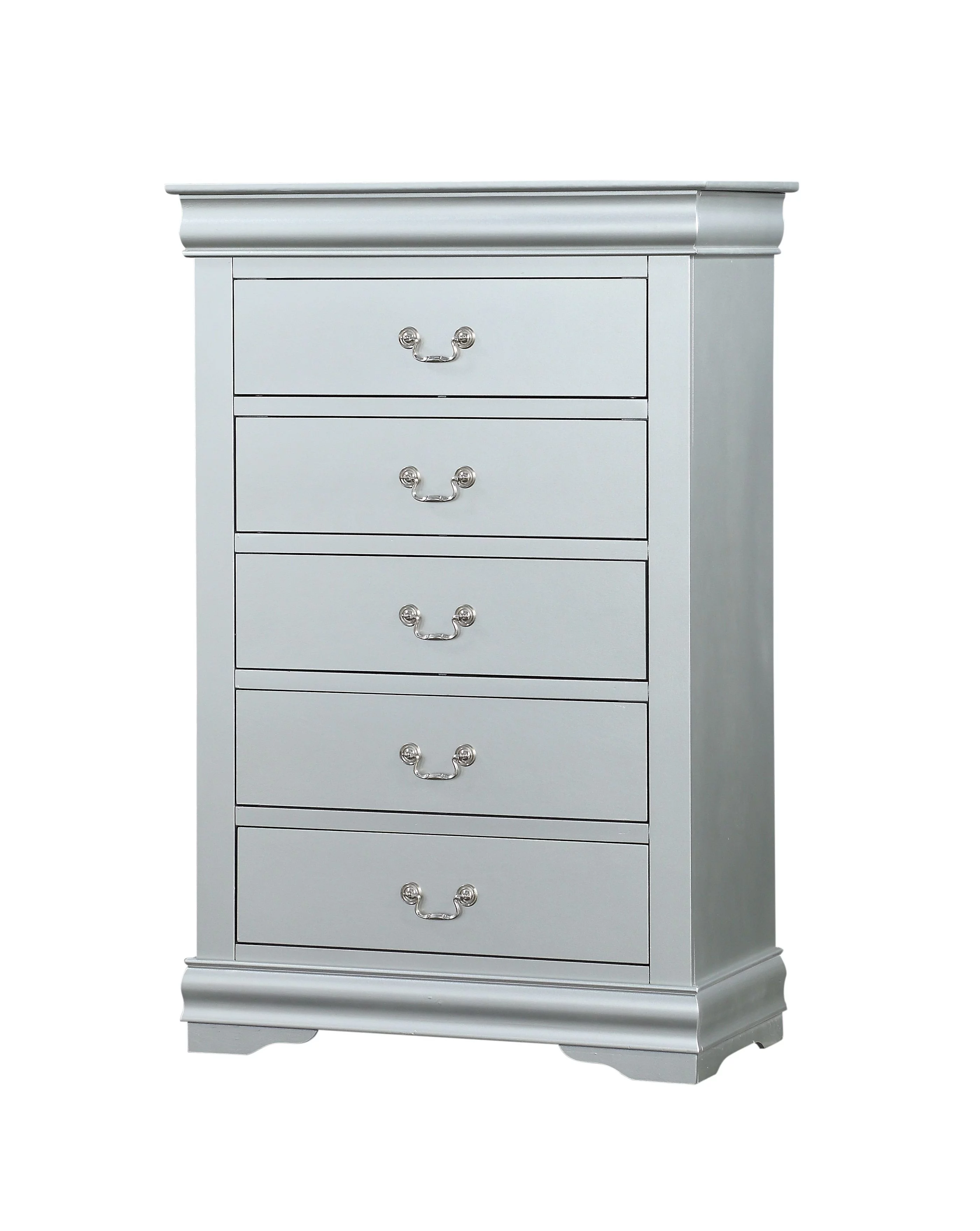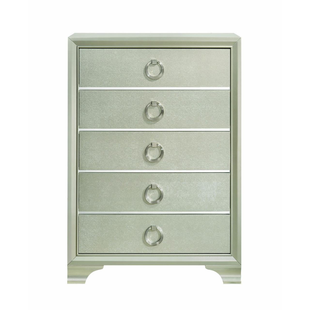 Five Drawer Wooden Chest with Polished Metallic Pulls - Champagne Gold - 47.5 x 16.5 x 33.8 in.